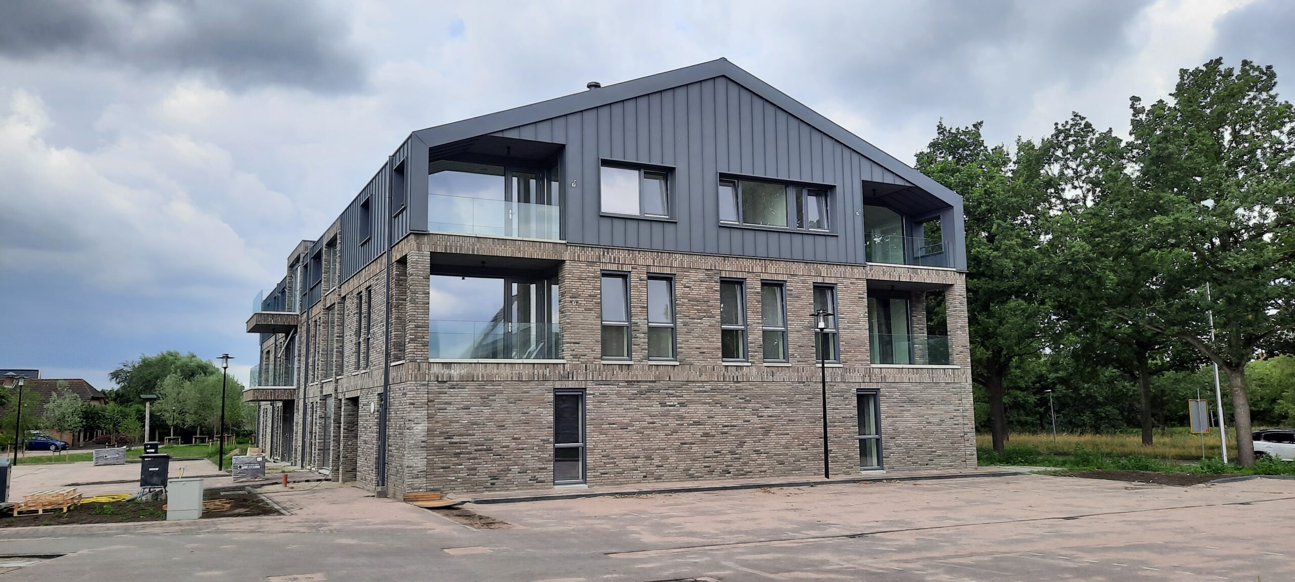 De 19 appartementen die op Het Spaanse Leger in Nijkerk wordt gerealiseerd op het oude perceel van de familie Van de Poll zijn zo goed als klaar. De bouw is momenteel aanbeland in de afbouwfase. De appartementen liggen aan Kroonwerk 6 t/m 42. Het zijn elf stuks 3-kamerappartementen (woonkamer met 2 slaapkamers) en acht stuks 2-kamerappartementen (woonkamer en 1 slaapkamer). Op de begane grond hebben alle vijf appartementen een tuin. De verwachtte oplevering is in het derde of vierde kwartaal. De woningen zijn aangeboden en toegewezen via WoningNet. Foto Kees van den Heuvel