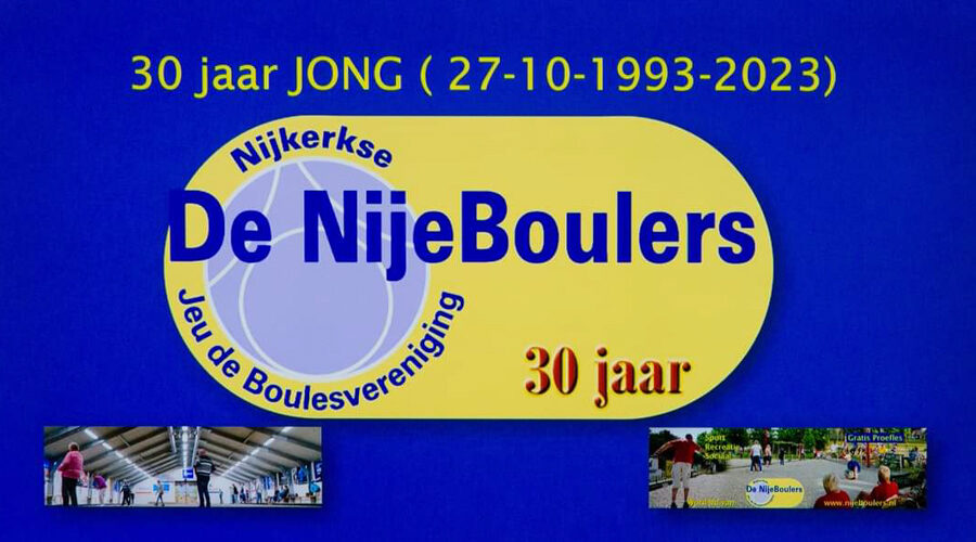 30 jaar geleden werd er in Nijkerk gestart met jeu de boules. De parkeerplaats bij het station was de eerste speelgelegenheid. Via de parkeerplaats van de scoutingclub kwam men uiteindelijk op de huidige plek aan de Watergoorweg. Vrijdag werd dit jubileum gevierd met een vaardigheidscircuit (met petanqueboules). In de pauze kregen de 80 aanwezigen een maaltijd aangeboden van het bestuur. Ook werden 2 leden gehuldigd die vanaf het begin lid waren van de Nijeboulers, namelijk Bep Doppenberg en Eef van Veldhuisen. Namens de jeu de boules bond waren de heren Spiering en Verheul aanwezig. Tekst Richard van Ekdom Foto’s Jac Verheul