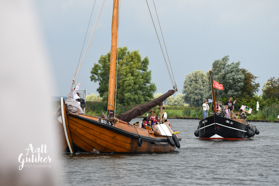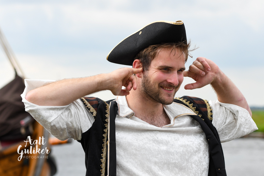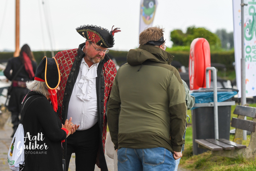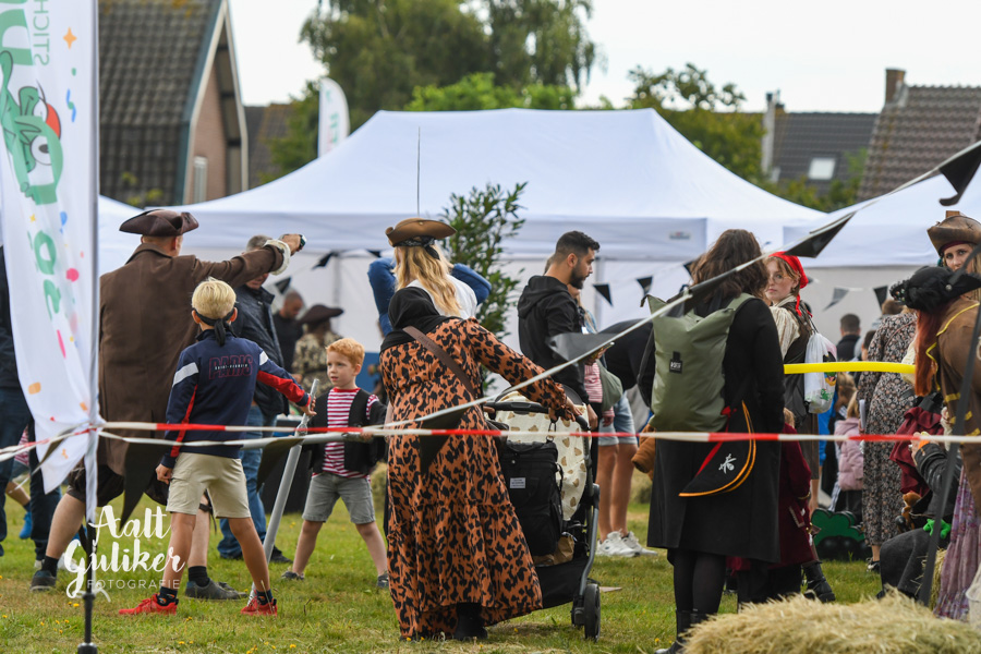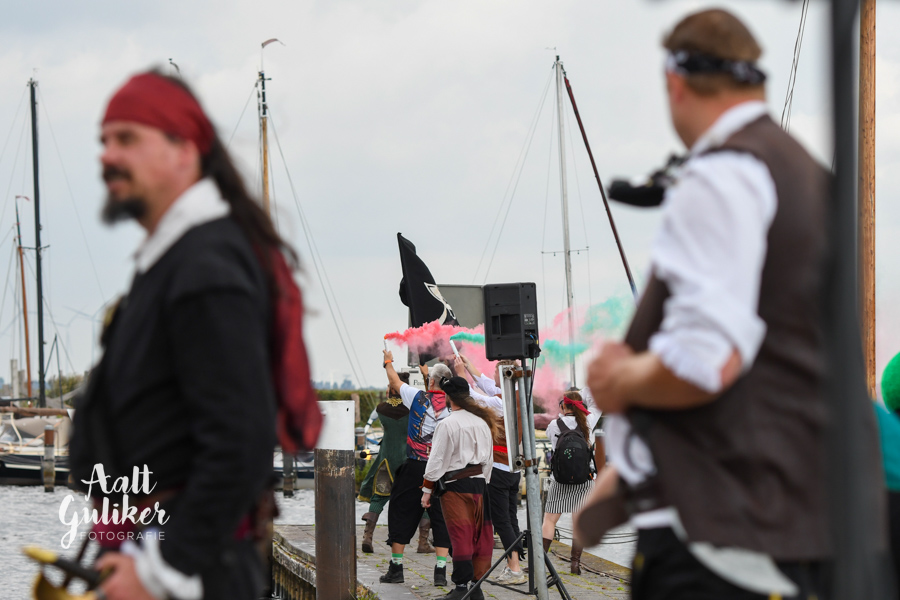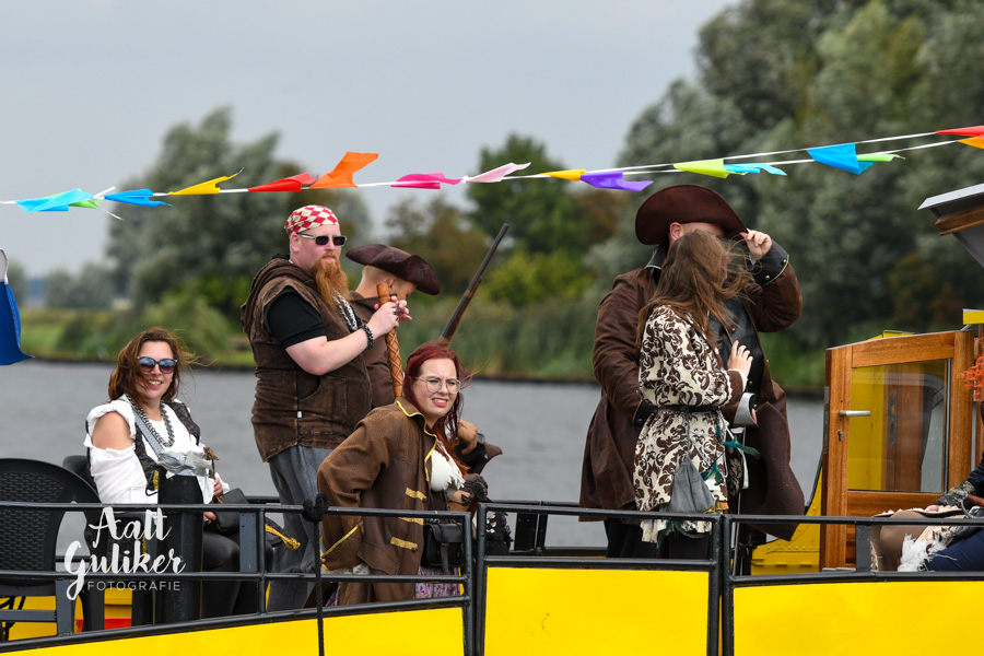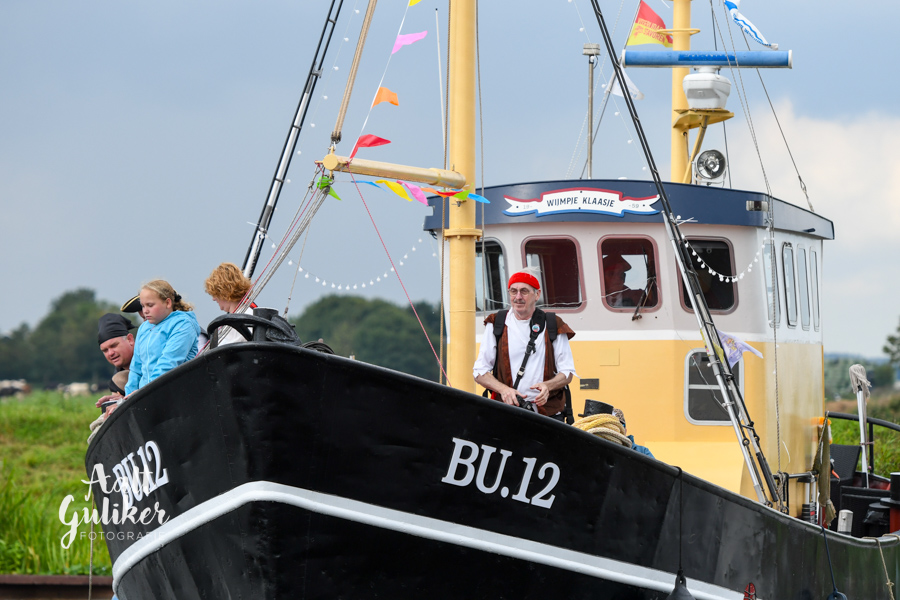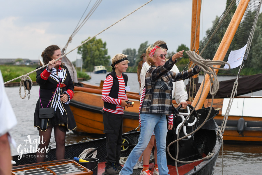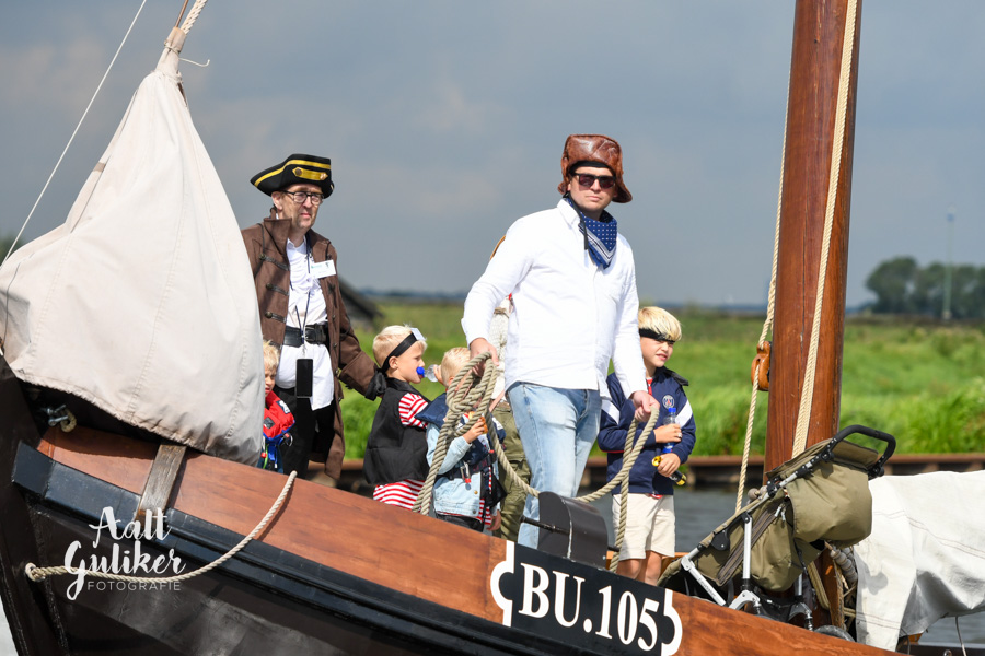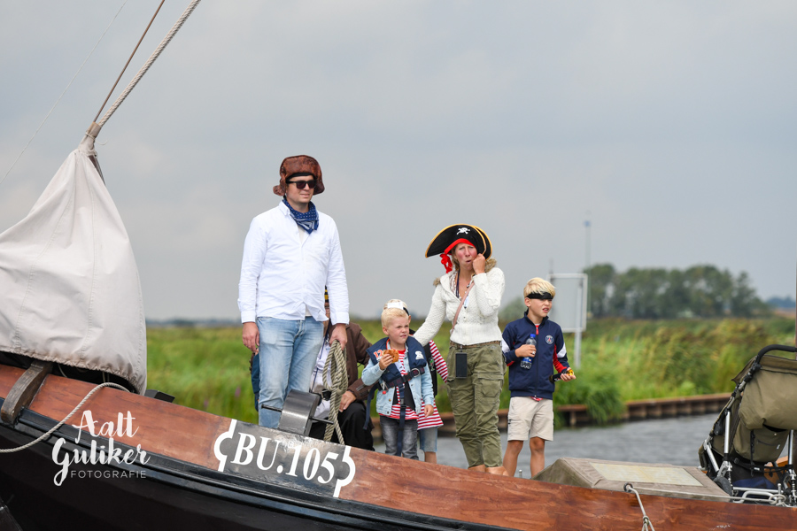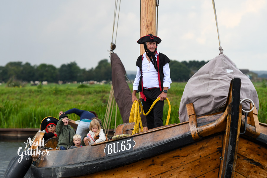 Vervolgens werden alle gezinnen per schip naar Eemsdijk gevaren. Dit was een geweldig gezicht! Al die schepen, van authentieke Botters tot stoere motorboten, helemaal vol met piraatjes met een verwachtingsvolle blik op het gezicht. Eenmaal op het eiland aangekomen, werden ze opgewacht door Kapitein Dolle Dries. Waar de gezinnen op zoek gingen naar de verdwenen dukaten, hun piraten vaardigheden werden getest en luidkeels piraten liederen werden gezongen. De dag werd afgesloten met een barbecue en uiteraard kregen alle piraten een waar piraten diploma. Het was een geweldige dag!