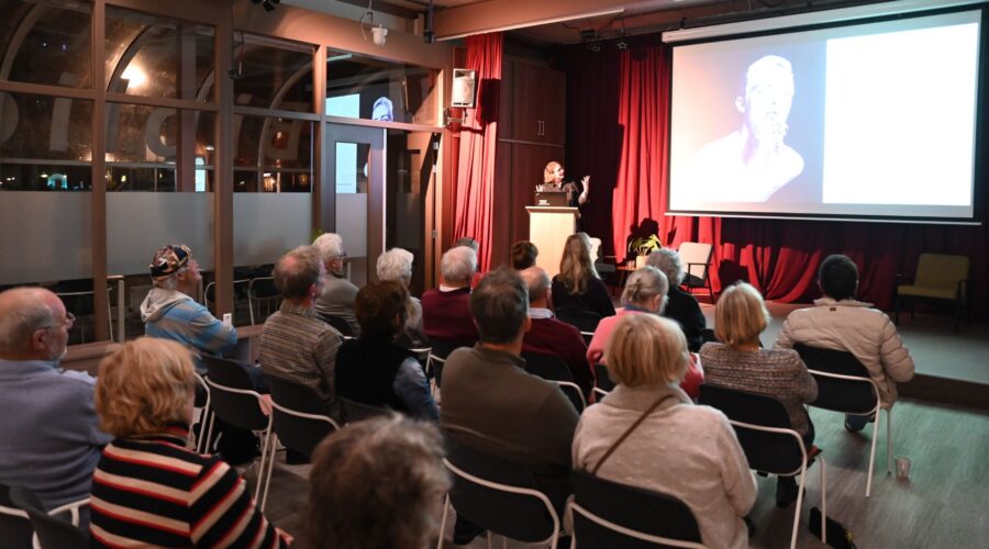 Maandagavond 27 oktober was er een lezing over fotograaf Erwin Olaf in de Bibliotheek Nijkerk. De lezing, getiteld “Erwin Olaf – Meester van beeld en verhaal”, werd georganiseerd door Leren is VUN en werd gegeven door kunsthistorica Diana Kostman. De aanleiding is dat het Stedelijk Museum Amsterdam een bijzondere tentoonstelling heeft georganiseerd over het werk van Erwin Olaf— de eerste grote expositie sinds zijn onverwachte overlijden. Voor het eerst wordt zijn oeuvre in Nederland zo uitgebreid gepresenteerd. Foto Kees van den Heuvel