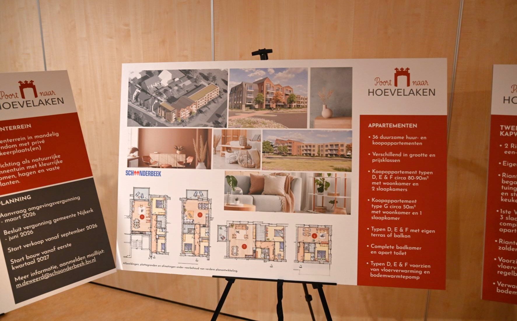 Woensdagavond 28 januari was de presentatie van de aangepaste bouwplannen van Poort naar Hoevelaken, op de hoek van de Koninginneweg met de Westerdorpsstraat. De aanwezigen waren behoorlijk positief over de nieuwe versie van het plan dat behoorlijk lager is dan het oorspronkelijke ontwerp. Bouwbedrijf Schoonderbeek is voornemens om op deze locatie 9 grondgebonden woningen en 36 appartementen te realiseren. Na een klacht vanuit de buurt is door Schoonderbeek een aangepast bouwplan ingediend met een lagere bouwhoogte en een gewijzigde architectuur. De maximale hoogte is verlaagd naar ongeveer 15 meter (voorheen 20 meter) en het geheel is speelser vormgegeven, met variatie in lijnen en vormen. In maart wordt de bouwaanvraag ingediend en de goedkeuring hiervan wordt in juniĀ verwacht. Daarna volgt in september de verkoop. Naar verwachting in 2027 gaat de eerste schop de grond in. Foto Kees van den Heuvel