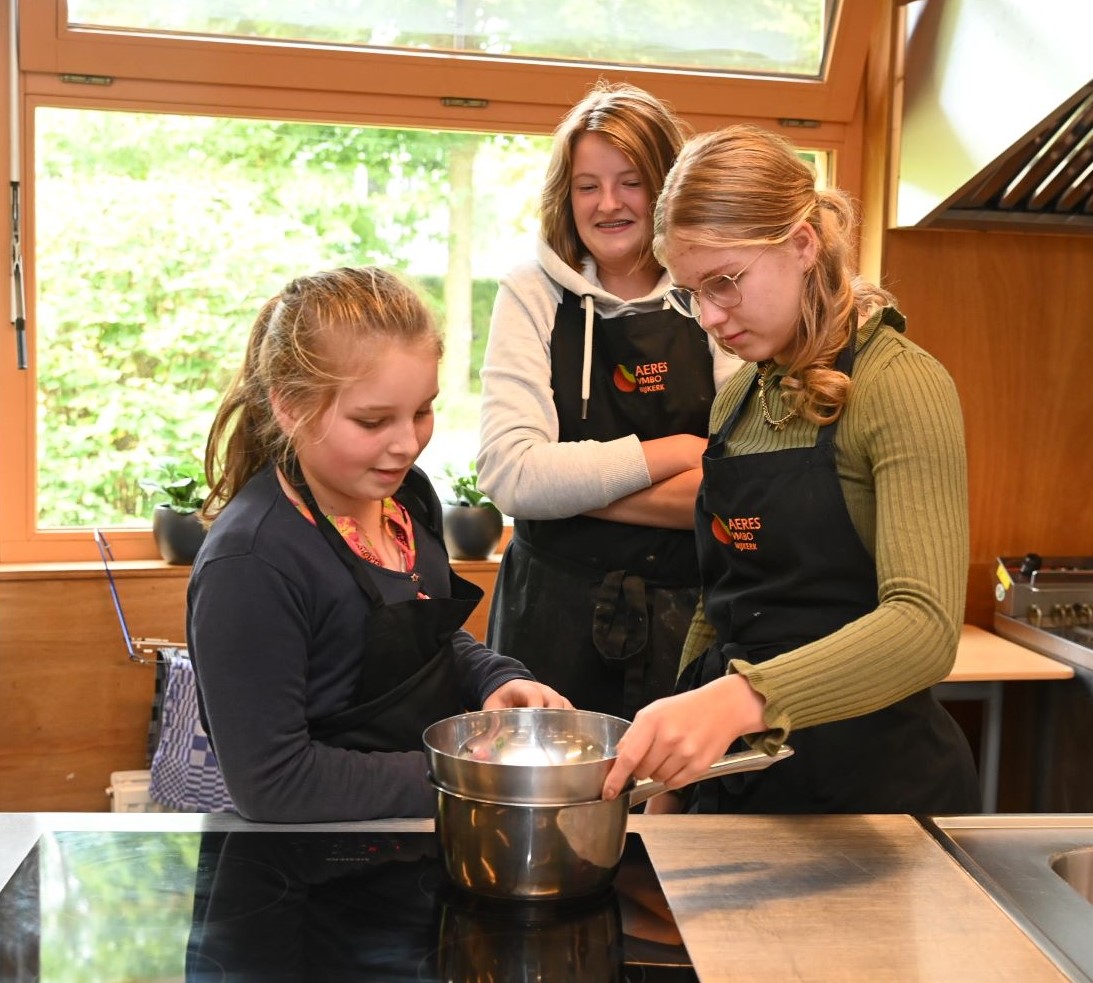 Vrijdagmiddag 6 oktober gingen vier groepen leerlingen, allen vierdejaars met keuzevak Voeding, een product ontwikkelen van bierborstel. Dit restproduct van bier dat boordevol eiwitten en vezels zit was samen met oud fruit de basis om circulair aan de slag te gaan. Zij deden dit in het kader van de Dutch Food Week die plaatsvindt van 7-14 oktober. Het is dus een mooie uitdaging om van deze lokale restproducten mooie producten te maken. De leerlingen gingen hun kennis delen met leerlingen van groep 8 van de Rehobothschool uit Nijkerk. Door het samen bakken en koken gebruikten ze de kennis gelijk om praktisch aan de gang te gaan. Op deze manier wordt weer een nieuwe generatie geleerd om duurzaam te leven. Het bierborstel kwam van Burg Bieren Bierwinkel uit Ermelo en het oude fruit van Fruithal Smits uit Zeewolde. Foto Kees van den Heuvel