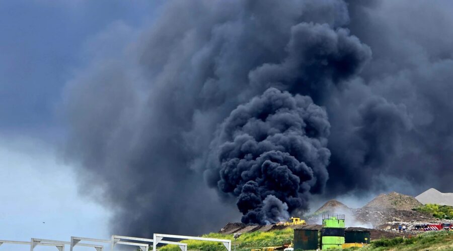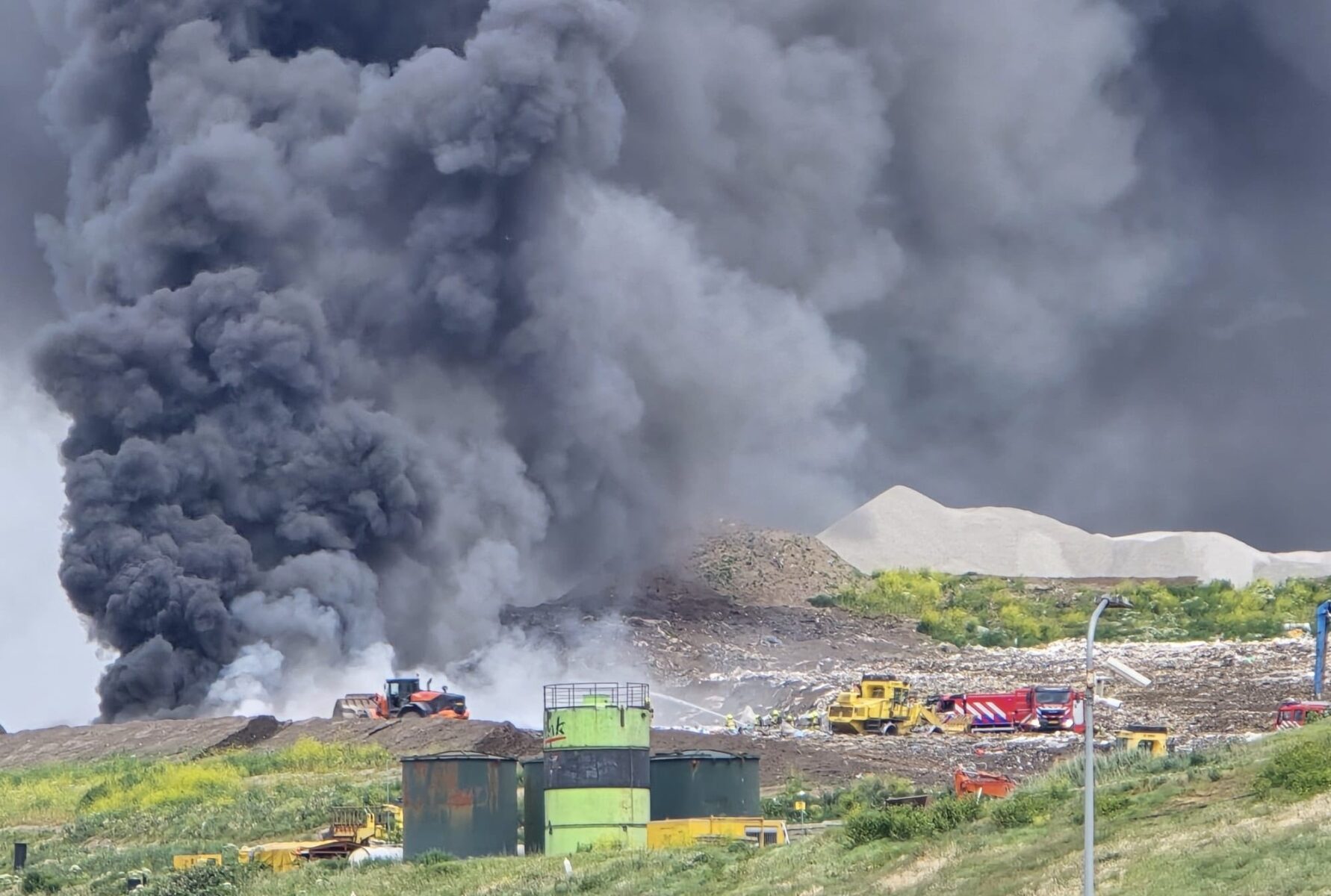 Een deel van de afvalberg van vuilverwerker Vink aan de Wencopperweg in Barneveld, heeft zaterdagmiddag 14 juni enige tijd in brand gestaan. De brand brak rond 14.30 uur uit. Door het vuur ontstonden grote zwarte rookwolken die in de wijde omgeving van Barneveld te zien waren, onder meer ook vanaf de rijksweg A1 bij Hoevelaken. Meerdere brandweervoertuigen waren ingezet bij de bestrijding van de brand. De brand is inmiddels onder controle. Foto WH Fotografie