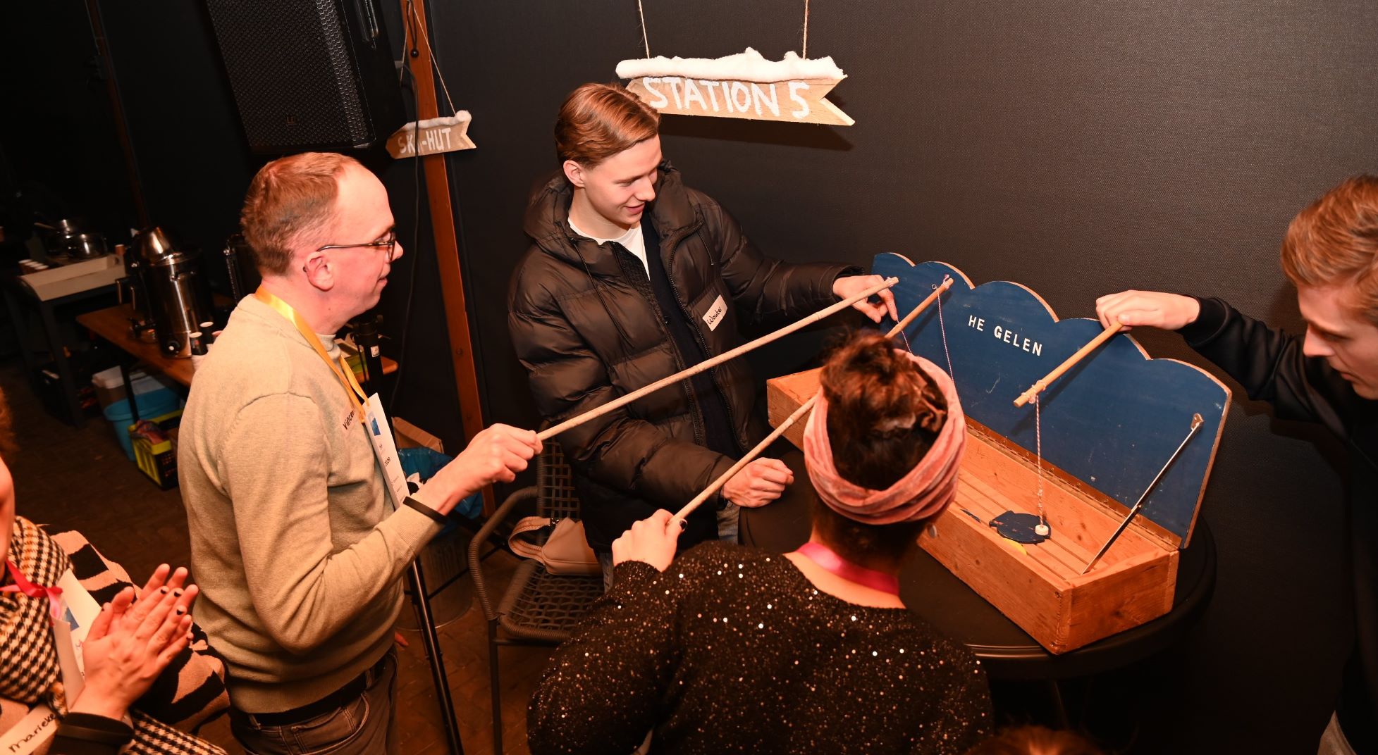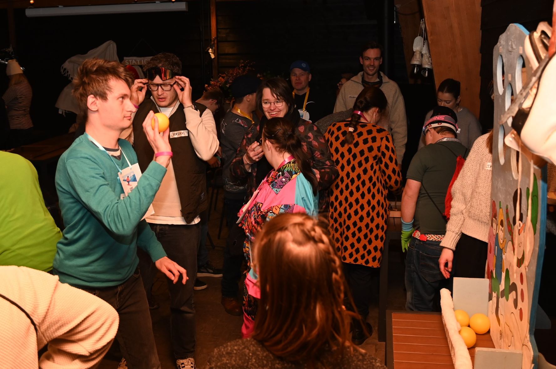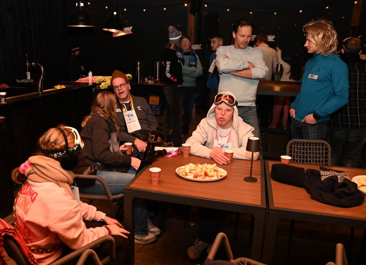 Muts op en skibril op de neus. Hello You, de club voor mensen met een verstandelijke beperking, organiseerde op donderdag 5 februari een après-ski-avond in Nijkerk. De avond stond in het teken van samen plezier maken, muziek en spel. Het feest op landgoed Groot Hennekeler begon aanvankelijk met allerlei spellen en daarna was er een disco. Foto Kees van den Heuvel