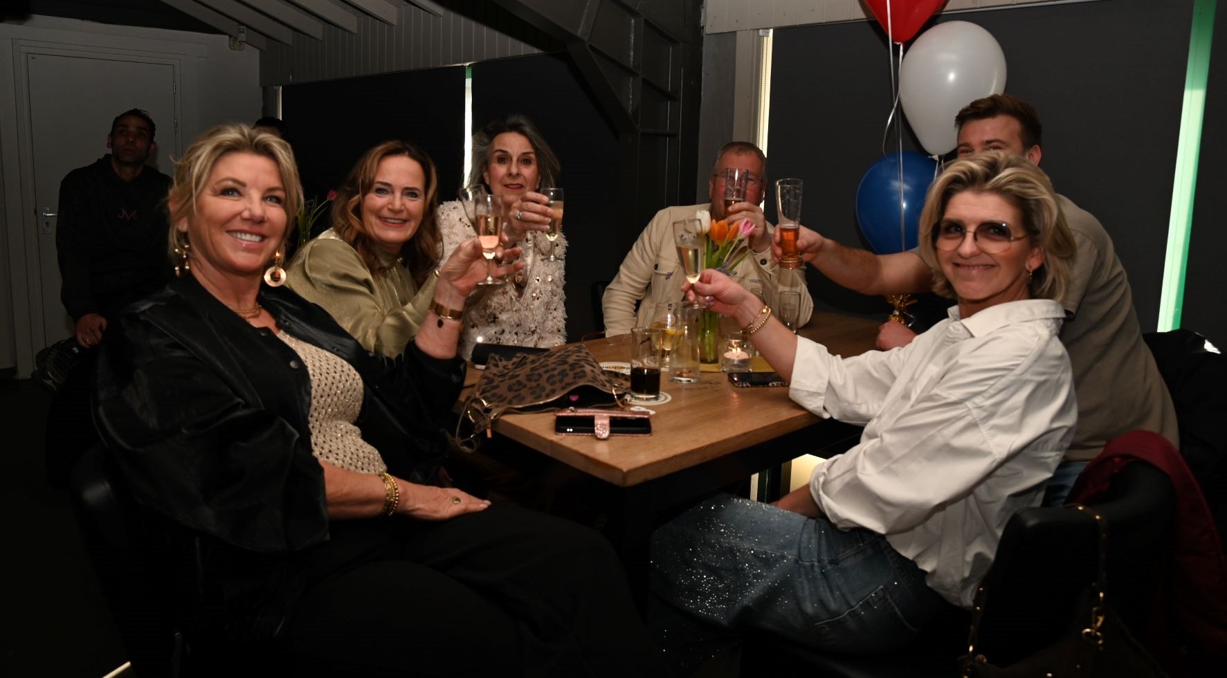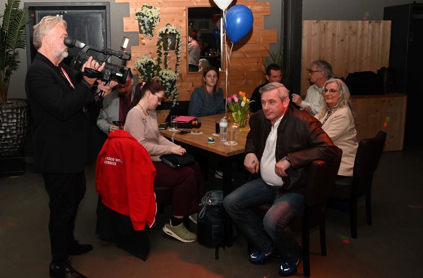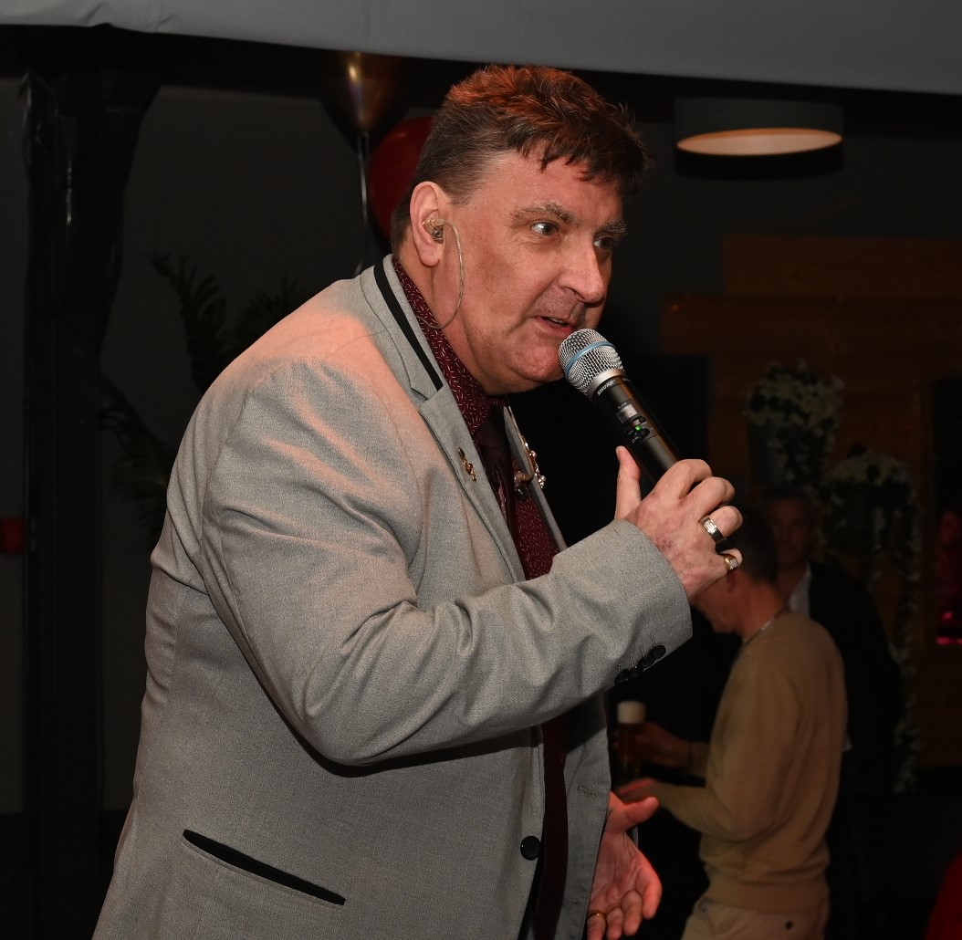 Het Nijkerkse platen- en artiestenlabel RoodHitBlauw is het nieuwe jaar muzikaal begonnen. Veel artiesten uit de stal van Ronald Visch kwamen zondag 8 februari bijeen op een gezellige bijeenkomst en lieten om de beurt hun talent zien op het podium. Dat leidde uiteraard tot feestelijke taferelen dat uitmondde in polonaises. Gastheer was Jan Paparazzi. Eigenlijk had de receptie in de eerste week van januari moeten plaatsvinden maar toen kon het vanwege de gladheid en sneeuw niet doorgaan. Foto Kees van den Heuvel