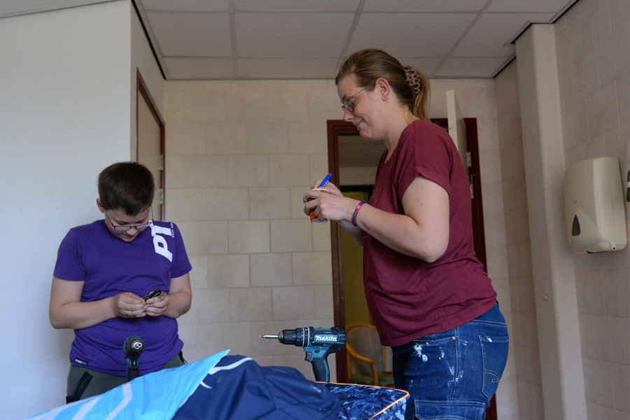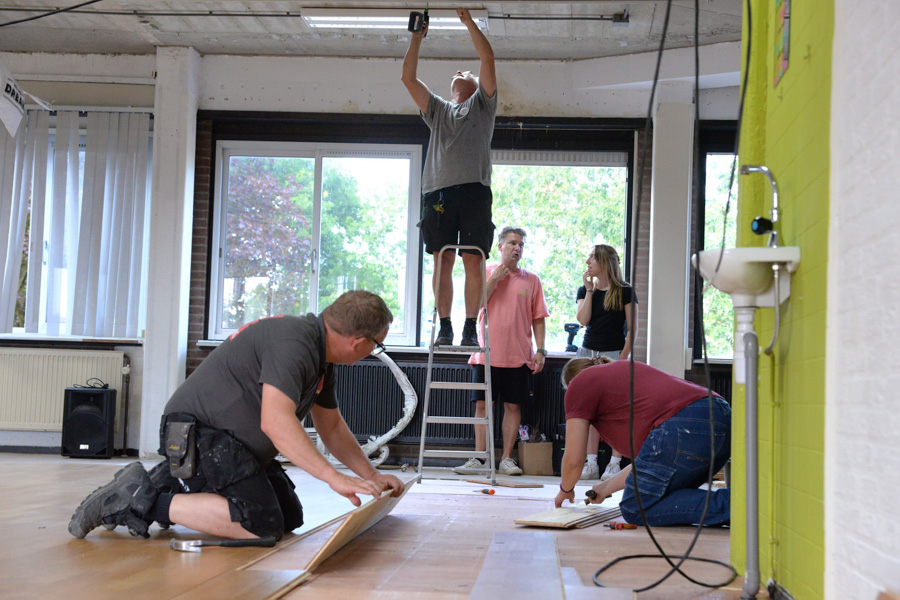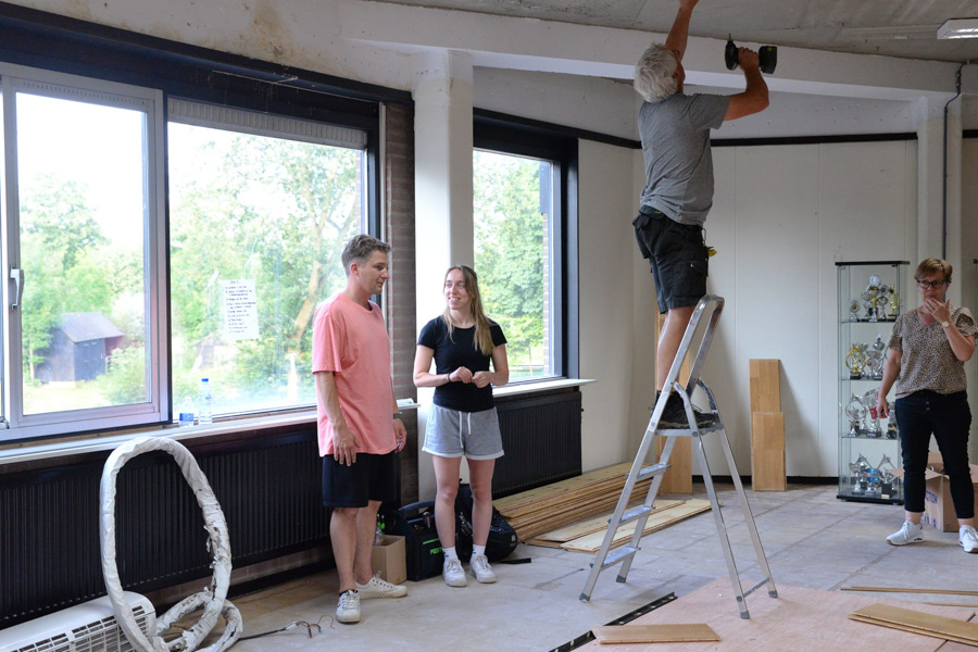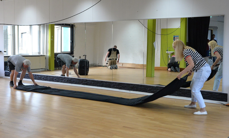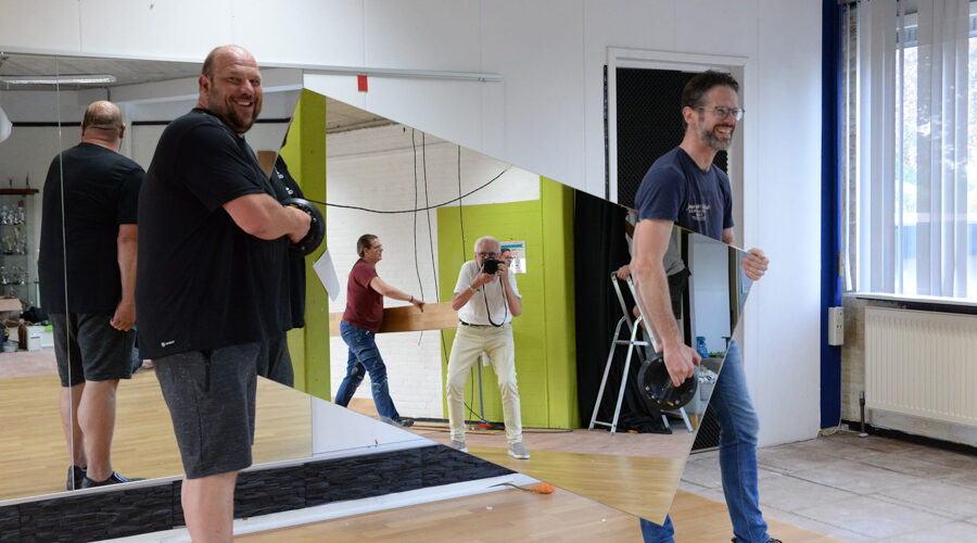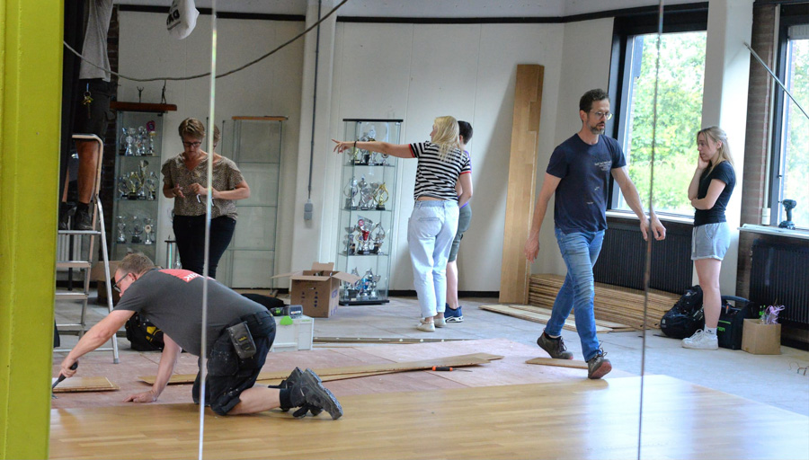 Vrijdagavond 28 juni zijn Jarno en Jantina Klompenhouwer samen met een tiental vrijwilligers begonnen met de werkzaamheden bij de oude locatie aan de Barneveldseweg. Het zijn leden en ouders van leden die zich spontaan opgegeven hadden om mee te helpen. Alle spiegels- parket en ondervloer- alle losse attributen enz, enz moest naar beneden gesjouwd worden. Wat een klus zeg. Tot laat in de avond zijn ze bezig geweest. Zaterdagmorgen moet alles in een vrachtwagen geladen worden en naar de nieuwe lokatie gebracht worden en natuurlijk ook weer uitladen. Jantina; ‘We zijn zo trots op alle hulp die we krijgen. Niet normaal’. Bron en Foto’s: Harry Koelewijn