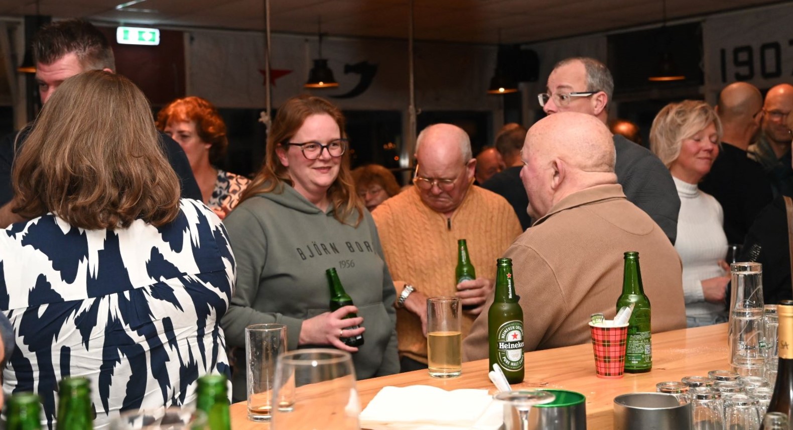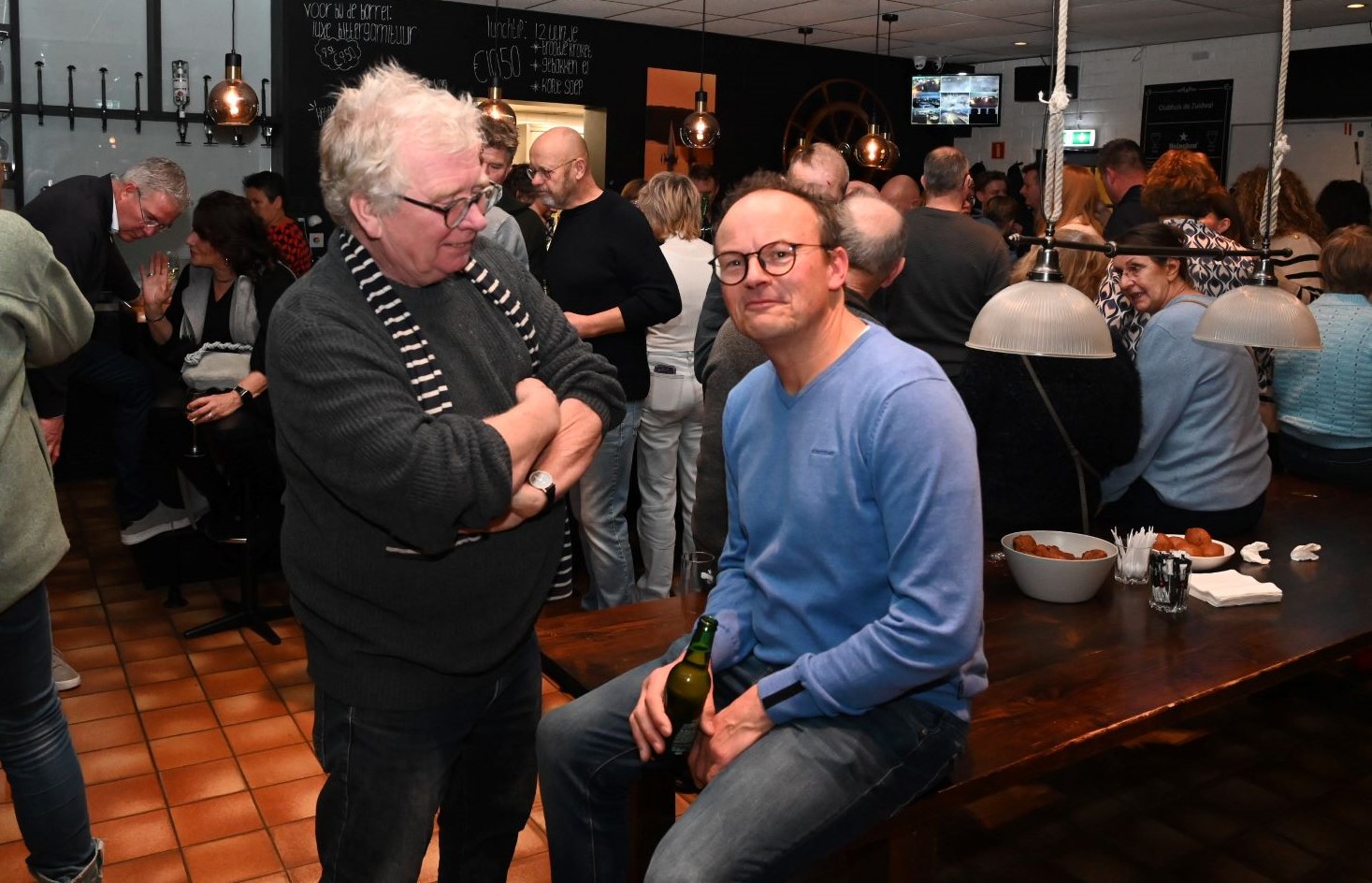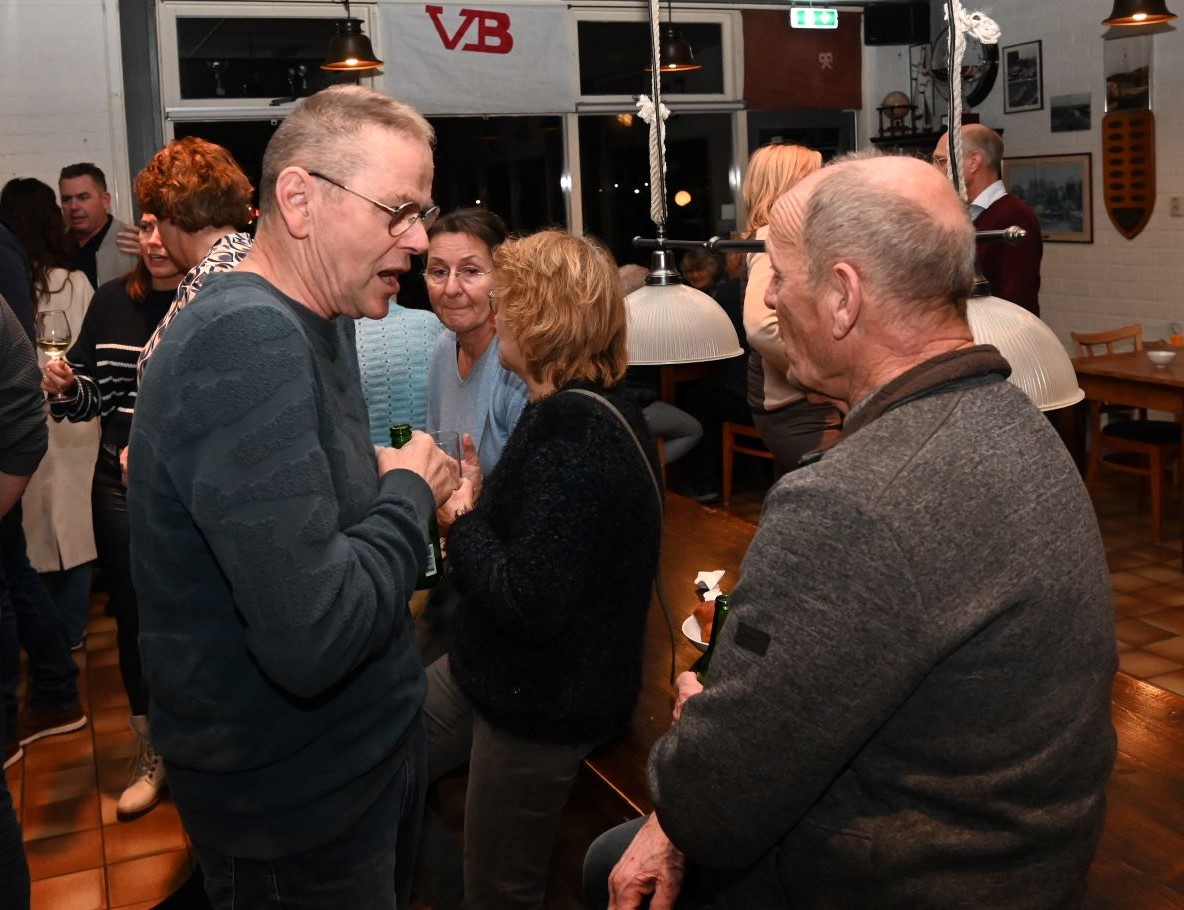 In het clubgebouw van zeil- en motorbootvereniging De Zuidwal vond zaterdag 11 januari de nieuwjaarsreceptie plaats. Een ieder kon elkaar het beste wensen voor het komende jaar. De drankjes werden van lieverlede door de penningmeester bediend, want het is na het vertrek van het echtpaar Van den Hoogen nog niet gelukt om een pachter te vinden voor het horecadeel van de vereniging. Foto Kees van den Heuvel