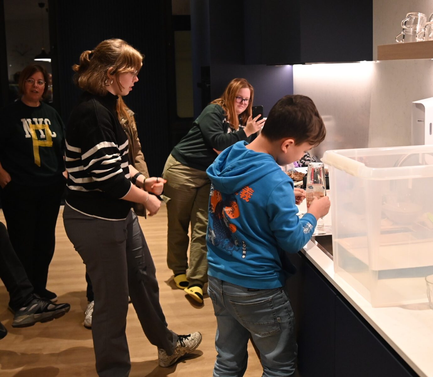De organisatiegraad is reeds hoog bij het nieuwe tiny house complex van Wonen bij Jaap in Nijkerk. In het paviljoen werd door de bewoners vrijdagavond 21 november de Alleskunner georganiseerd. Allerlei uitdagingen werden aangegaan en de uiteindelijke winnaar bleek Amy. De avond werd gesponsord door New York Pizza. Iedereen ging de deur uit met een prijsje, een cheque voor een pizza. Zondag is een bakfestijn in het paviljoen. Foto Kees van den Heuvel