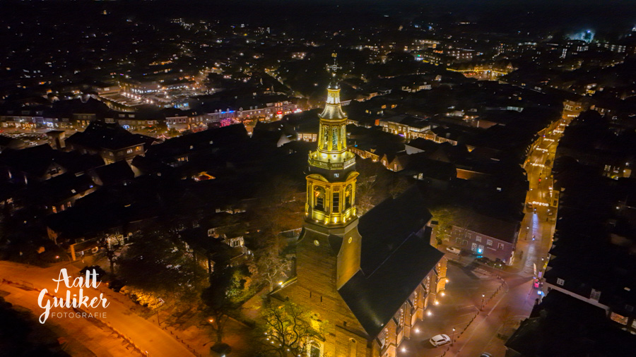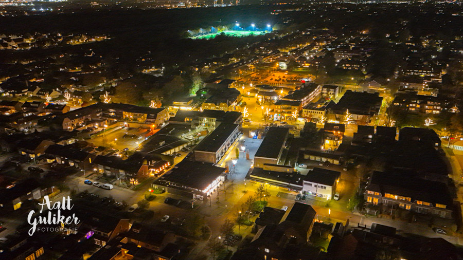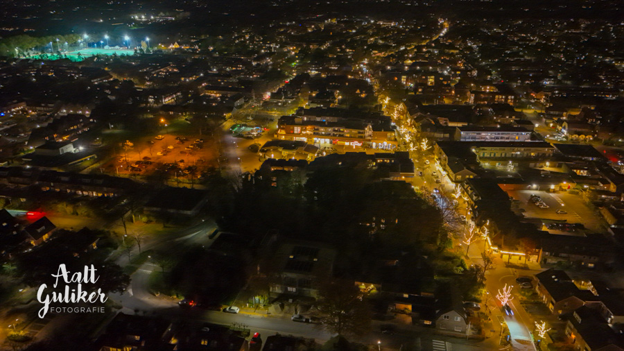 Deze week is onze fotograaf met de drone op pad geweest boven de gemeente Nijkerk, op zoek naar plekken die in het donker een heel eigen karakter krijgen. Zodra de schemer viel, veranderde het landschap onder hem in een spel van lijnen, schaduwen en kleine lichtaccenten.