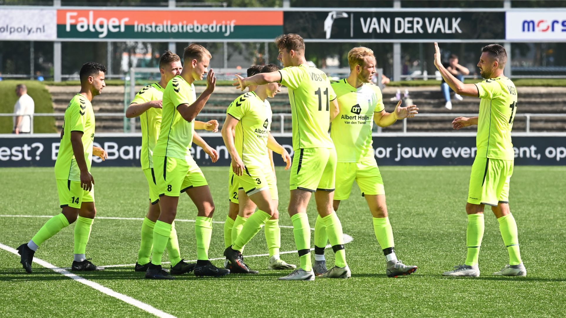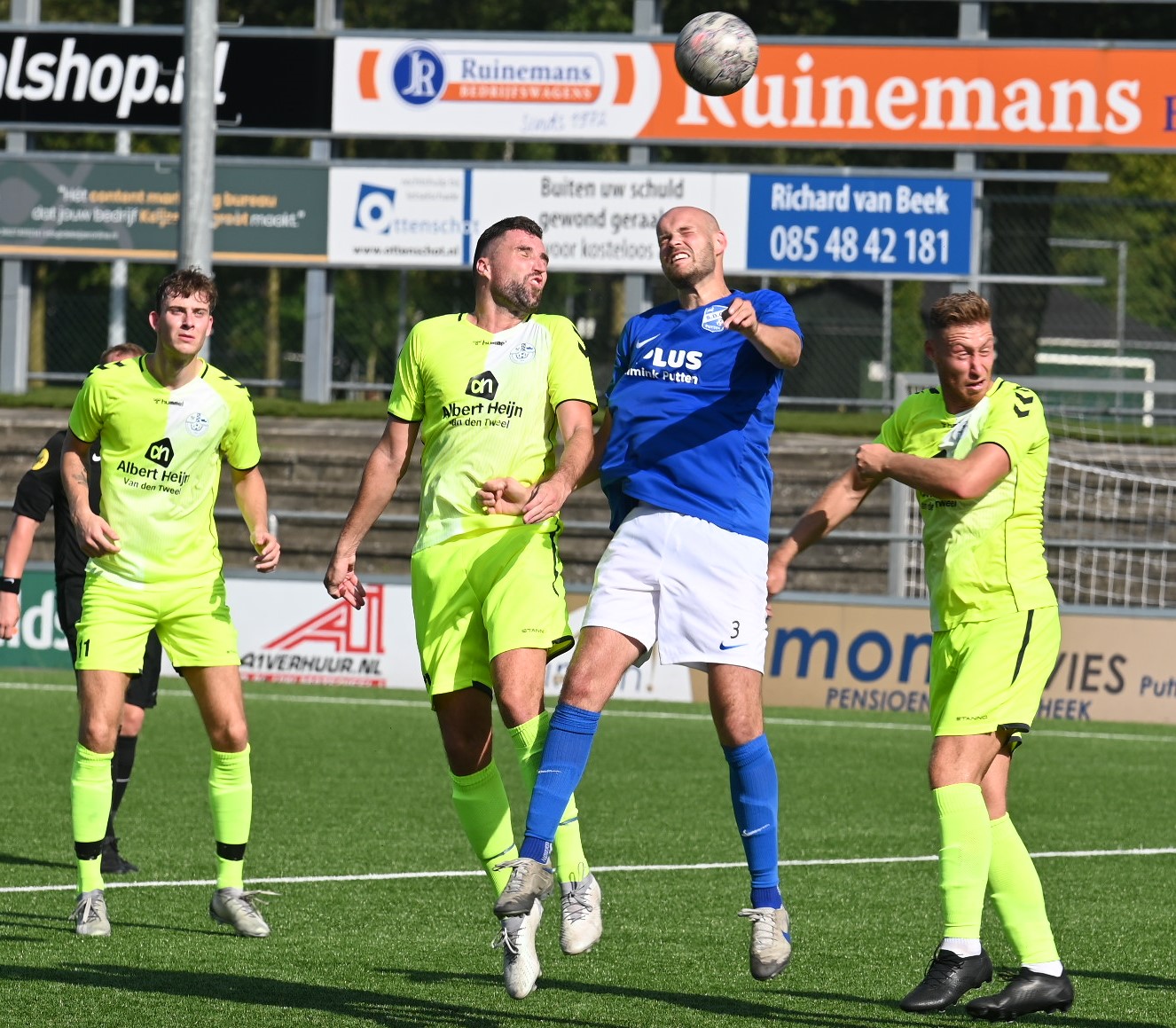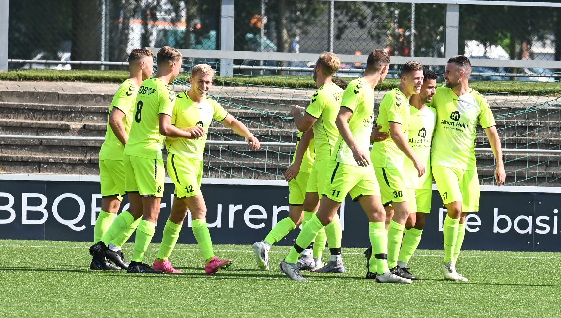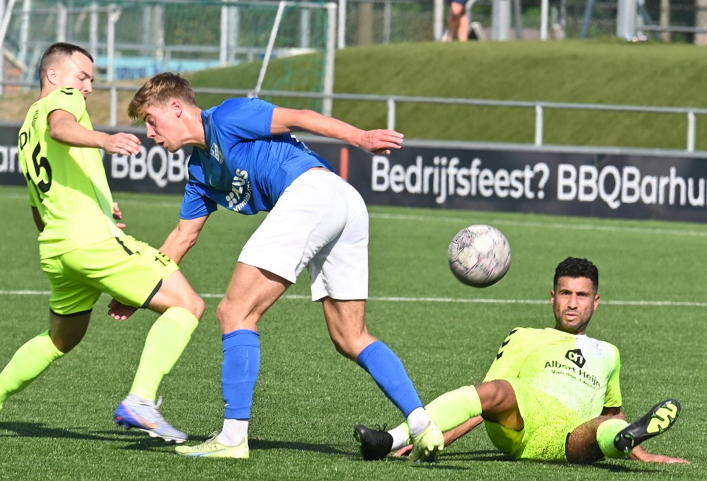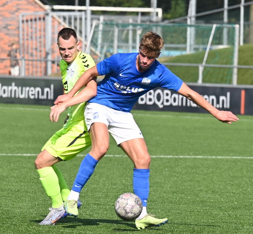 Op het hete kunstgras van sportpark Puttereng dreigde aanvankelijk een complete afgang voor SDC Putten. Veensche Boys kwam binnen een half uur op een comfortabele 0-3 voorsprong, mede doordat de verdediging van Putten door het pressievoetbal van de Blauwe Helden helemaal murw werd gespeeld. De eerste goal werd namens de Boys gemaakt door Julian Buitenhuis die een simpel zijwaarts geleverd schot in de goal zag hobbelen. Doelman Theodorie Velanas had de bal zeker kunnen tegenhouden, maar leek helemaal gedesorienteerd. De tweede goal was een kopbal van Levi Haringsma na een voorzet van Nico van den Brom. Meestal is Levi altijd al een lachebek, ook al staat Veensche Boys met 0-7 achter, maar toen hij een goal maakte was hij helemaal in zijn nopjes getuige de vreugde-explosie op het veld. Even later werd het zelfs 0-3: Julian Buitenhuis zette de bal voor richting Nico van den Brom en die had vrij spel voor de keeper. Ondertussen had Corné Parol ook nog kunnen scoren, maar de bal belandde dusdanig keihard op de keeper, dat hij er zaterdagavond nog last van zal hebben. Wessel Bosman, de invalkeeper van Veensche Boys, had eigenlijk weinig te doen. Hij werkte een bal van Putten nog wel katachtig uit zijn goalgebied. Wat er daarna in de rust is gebeurd, is alleen maar gissen. SDC Putten kwam als herboren uit de kleedkamers en overrompelde Veensche Boys en binnen een kwartier tijd was de stand weer terug gebracht naar 3-3. De eerste goal viel al in de eerste minuut van de tweede helft: Roelf Oosterhoff scoort uit een voorzet van Saber Charif. Twee minuten kon Sabir Akachaou Achefay vrij inschieten, maar de bal kreeg hij niet onder controle en hij schoot hoog over. Nog geen minuut daarna werkte Achefay de bal alsnog binnen. Nog in de zestigste minuut maakte Buter de 3-3 in de korte hoek. Het was wachten op de volgende goal van Putten en die kwam er ook via Saber Charif. Julian Buitenhuis maakte in de tweede helft ook nog een goal maar die werd wegens buitenspel afgekeurd. Volgende week is de laatste bekerwedstrijd tegen FC Horst. Foto Kees van den Heuvel