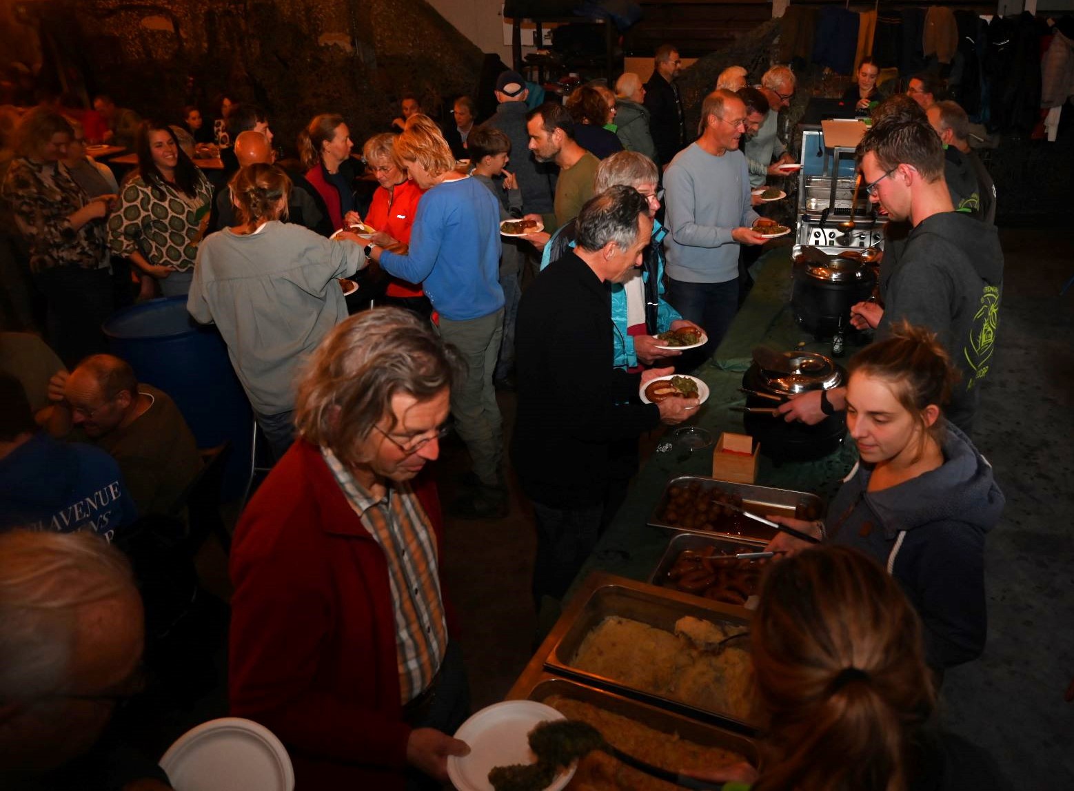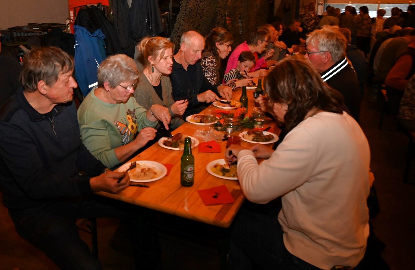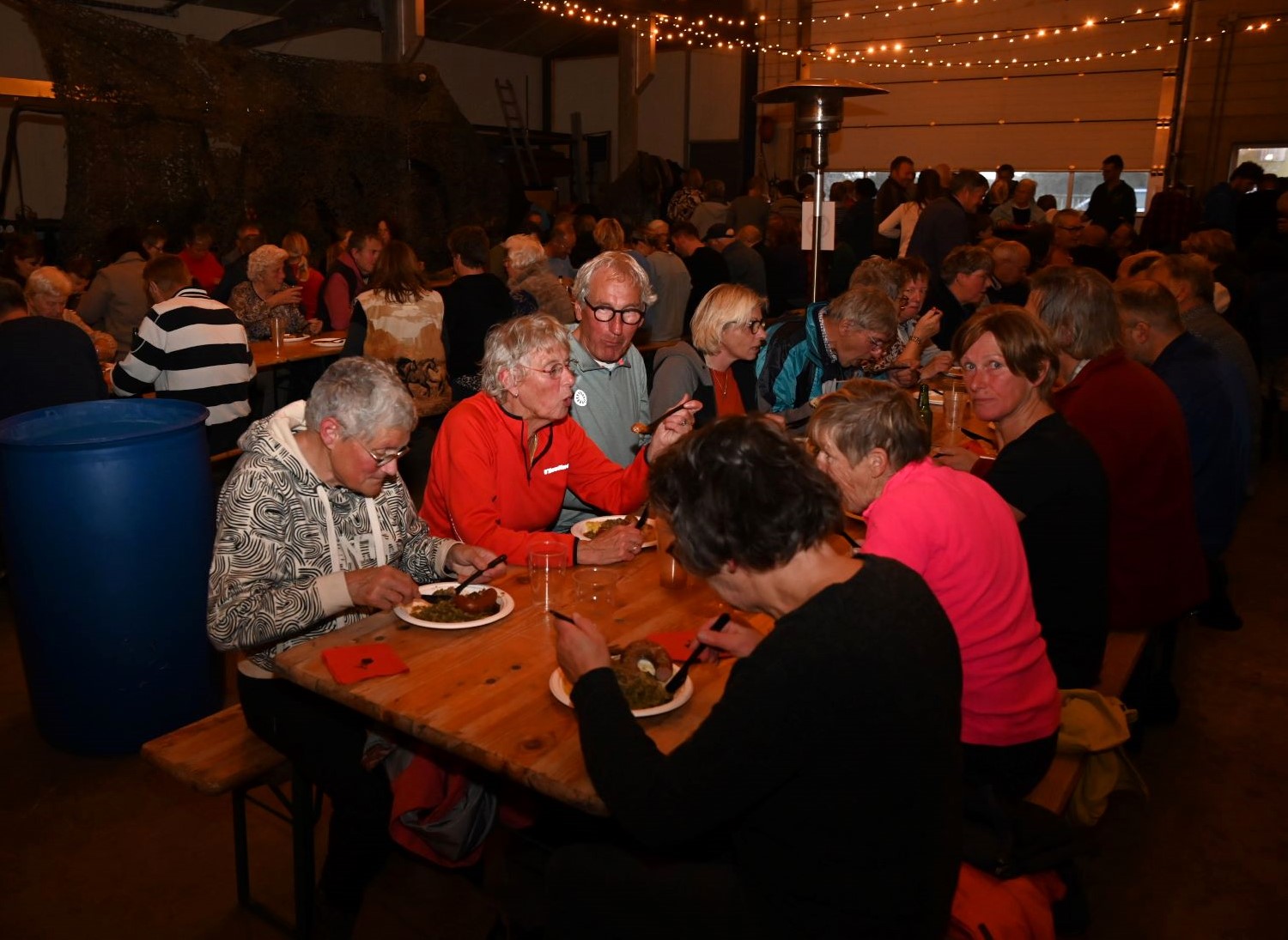 Op 25 oktober vond een wandel- en oogstfeest genaamd “Struinen door Appel” plaats in Nijkerk, georganiseerd door de buurtvereniging Appel-Driedorp. Het evenement, dat bekend staat om de gezelligheid en herfstactiviteiten, bood een 5 en 10 kilometer wandelroute door de modderige weilanden. Er werd gestart vanaf de Slichtenhorsterweg bij de familie Timmer en het rustpunt was bij de wijngaard “Aan de Breede Beek”. Daarna keerde de groep van circa 350 personen terug naar de boerderij van Timmer, alwaar 230 personen genoten van boerenkool met worst. Foto Kees van den Heuvel