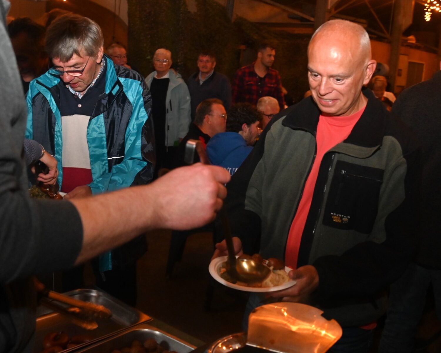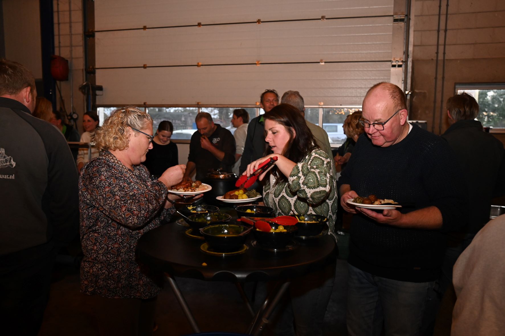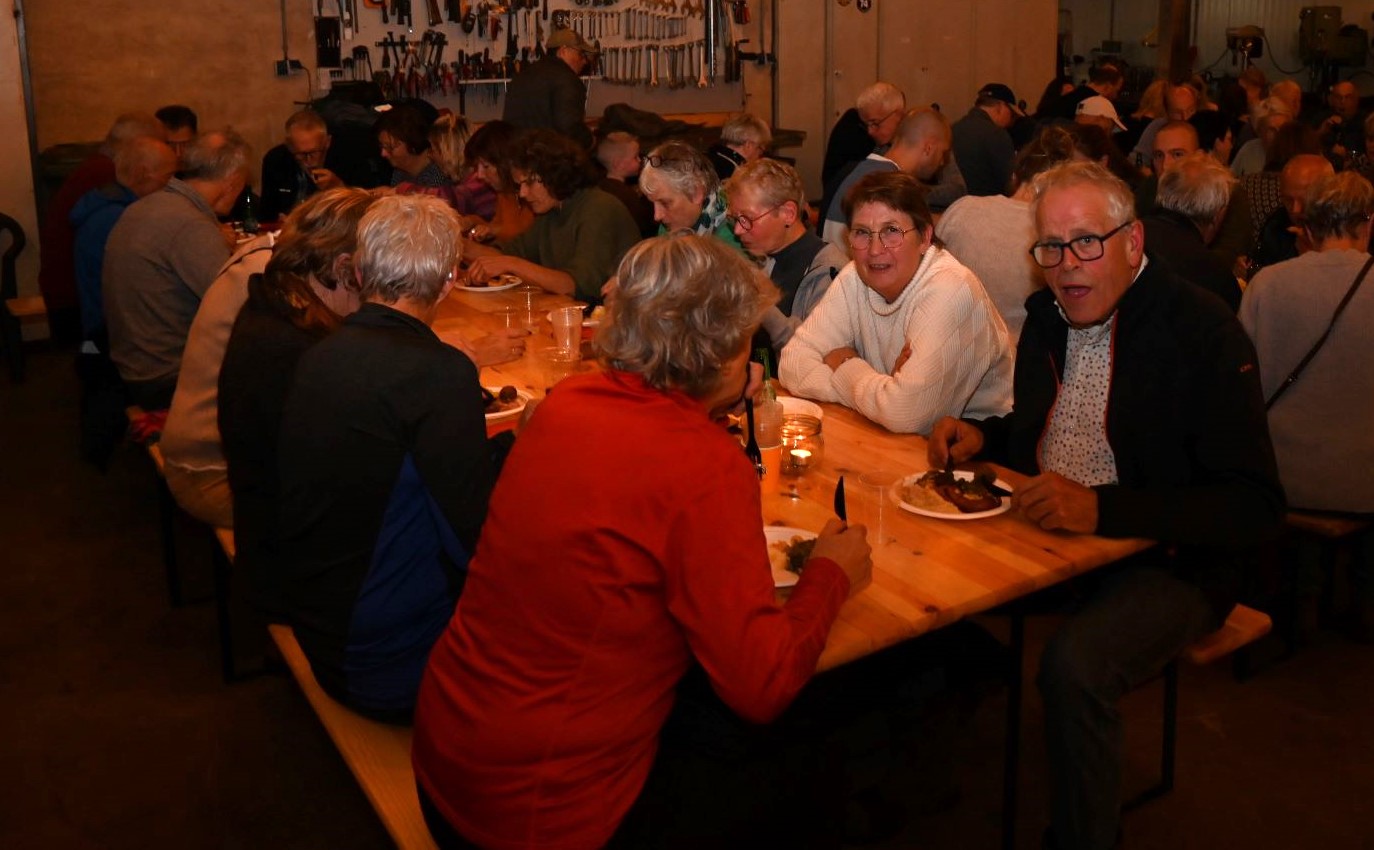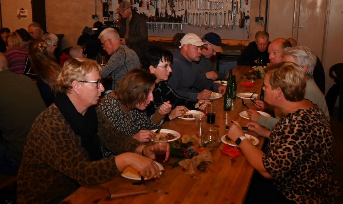 Op 25 oktober vond een wandel- en oogstfeest genaamd “Struinen door Appel” plaats in Nijkerk, georganiseerd door de buurtvereniging Appel-Driedorp. Het evenement, dat bekend staat om de gezelligheid en herfstactiviteiten, bood een 5 en 10 kilometer wandelroute door de modderige weilanden. Er werd gestart vanaf de Slichtenhorsterweg bij de familie Timmer en het rustpunt was bij de wijngaard “Aan de Breede Beek”. Daarna keerde de groep van circa 350 personen terug naar de boerderij van Timmer, alwaar 230 personen genoten van boerenkool met worst. Foto Kees van den Heuvel
