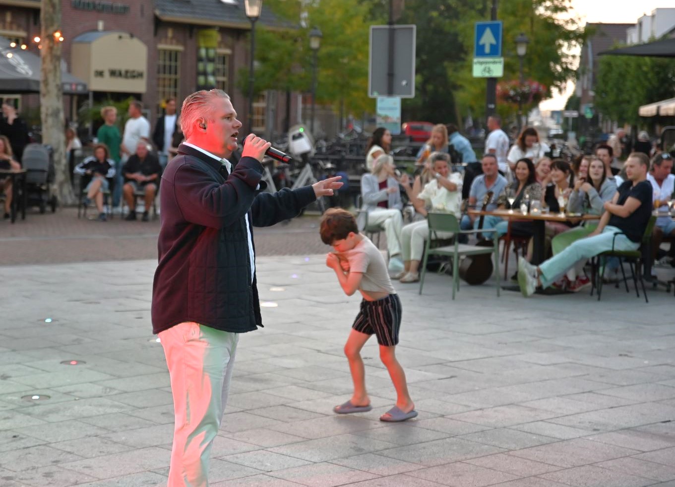Vrijdag 8 augustus was alweer de vierde editie van het supergezellige Nijkerk Live, dat werd georganiseerd op het Plein in Nijkerk. Drie artiesten traden op: Dat begon met Ricardo Kamp die Hollandse Meezingers zong, gevolgd door Frans Zeilmakers met Hollandse FeestHits. Er werd afgesloten met Ruud Zwaan die Hollandse FeestHits zong. Deejay Robby zorgde voor de muzikale omlijsting voor de rest van de avond. De terrassen op het Plein zaten bomvol en fungeerde tevens als dansvloer. Dat smaakt uiteraard naar meer. Foto Kees van den Heuvel