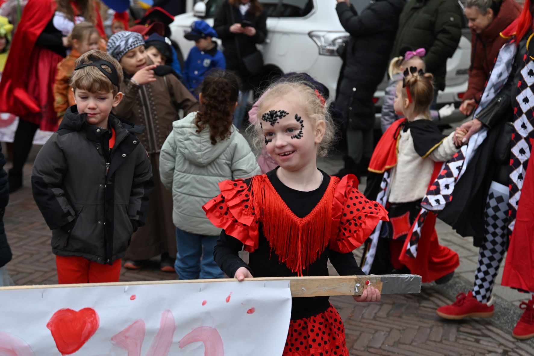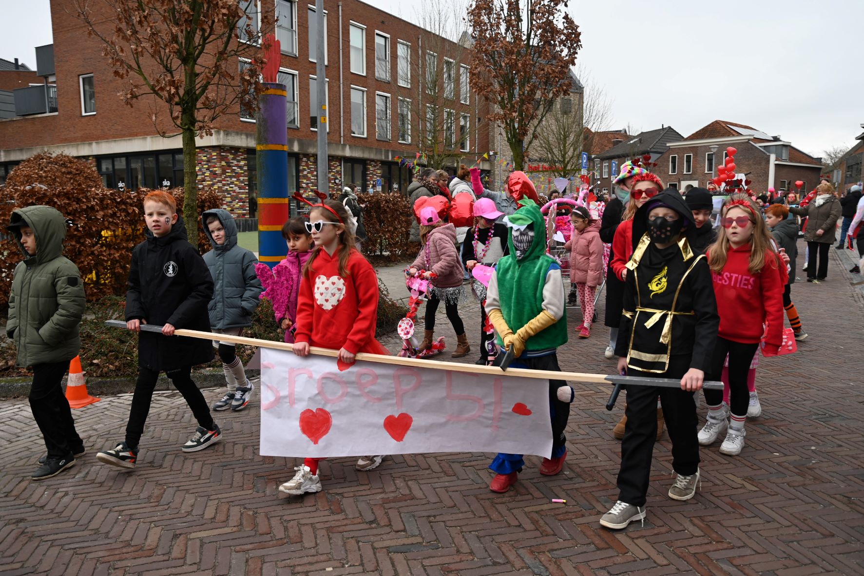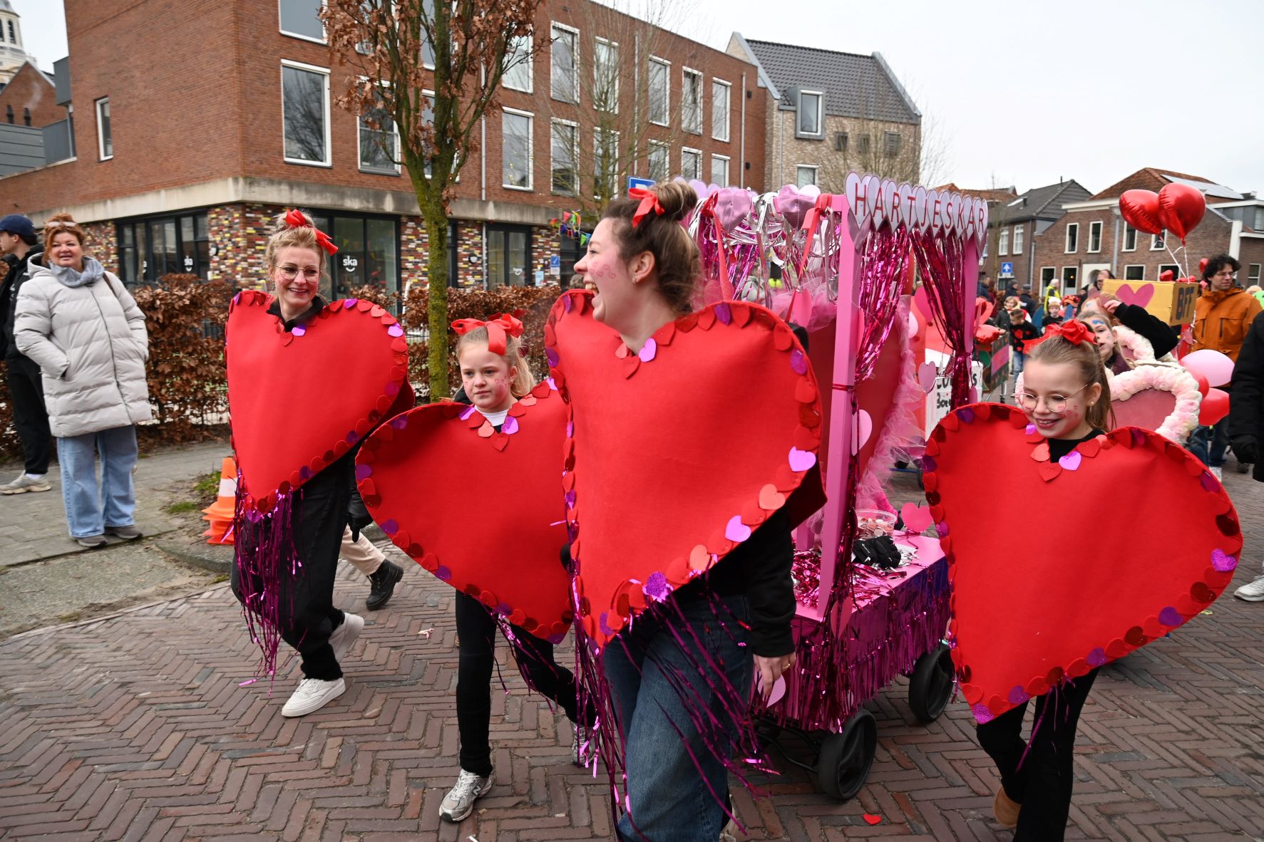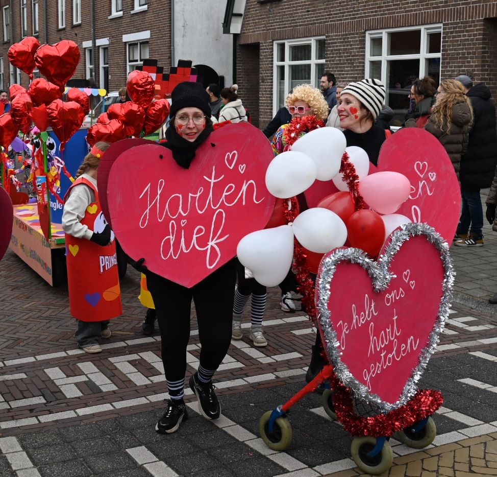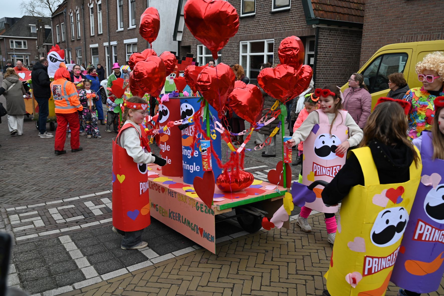 Basisschool Het Baken vierd vrijdag 13 februari carnaval. Het thema dit jaar ws: ‘Carnaval op Het Baken, is liefde op het eerste gezicht!’ Veel kinderen waren verkleed als de kleur van de liefde. De leerlingen hadden de afgelopen weken hard gewerkt aan mooie carnavalswagens. Zo was er een brandweerwagen, maar ook een legervoertuig en drie worstenbroodjes. De kinderen begonnen de dag feestelijk in de klas, waarna alle klassen zich gingen opstellen in de Groenestraat voor de optocht door de stad. De stoet werd vergezeld door de Nijkerkse carnavalsvereniging De Doordouwers. Zij hadden een wagen met een rat aan het spit. Er werd alvast een klein voorproefje gegund van de wagen die aan de grote carnavalsoptocht in Hoogland gaat meedoen. Foto Kees van den Heuvel / Dayn van de Pol