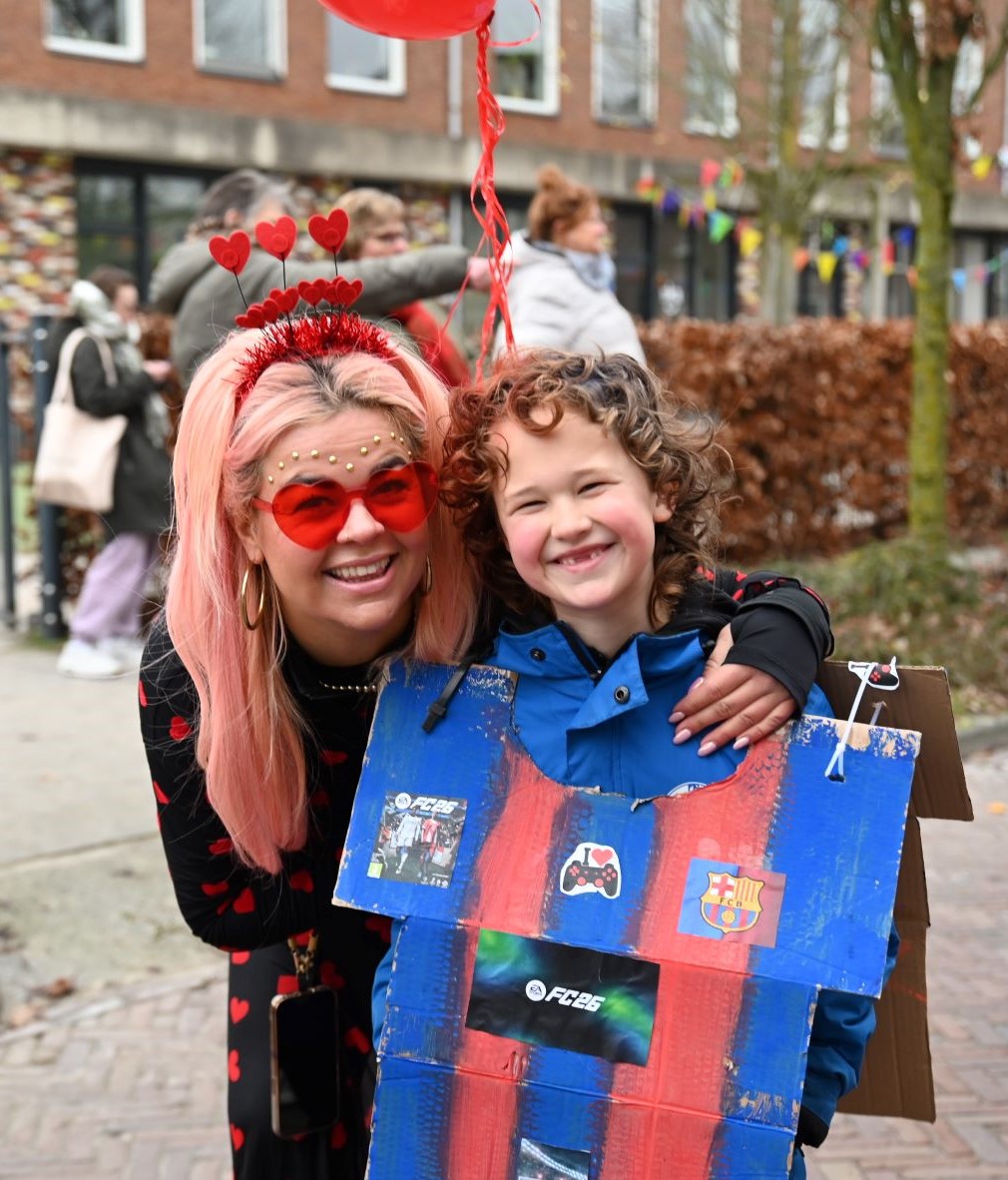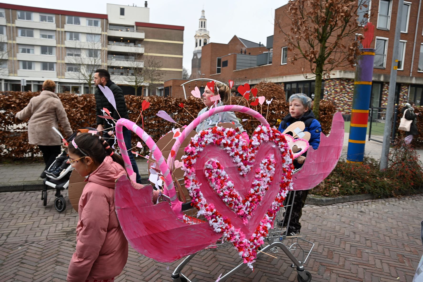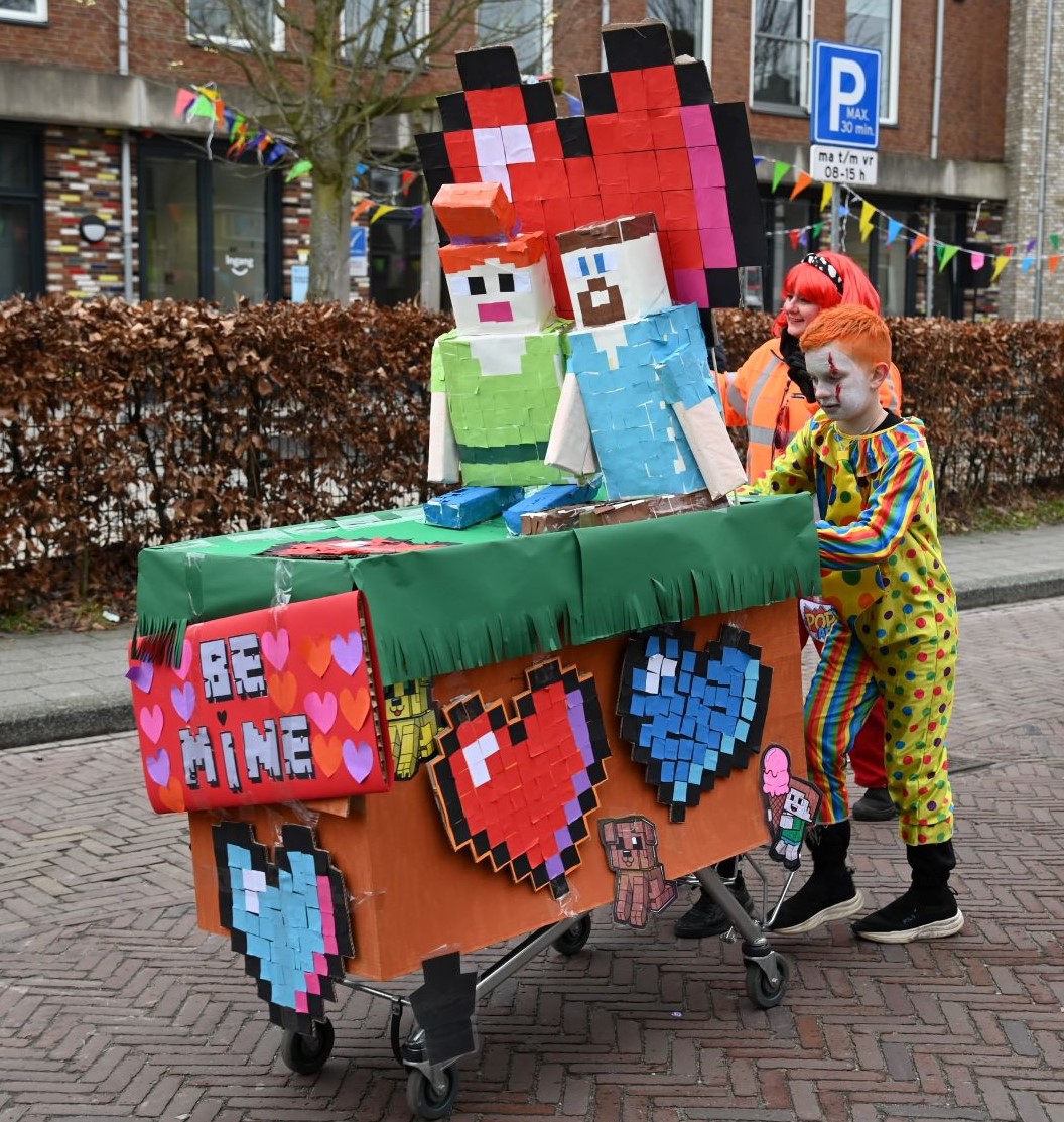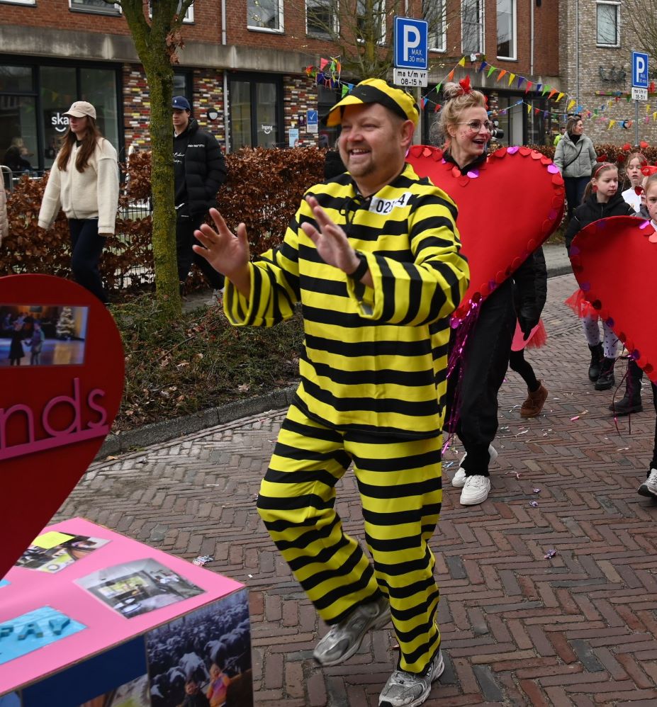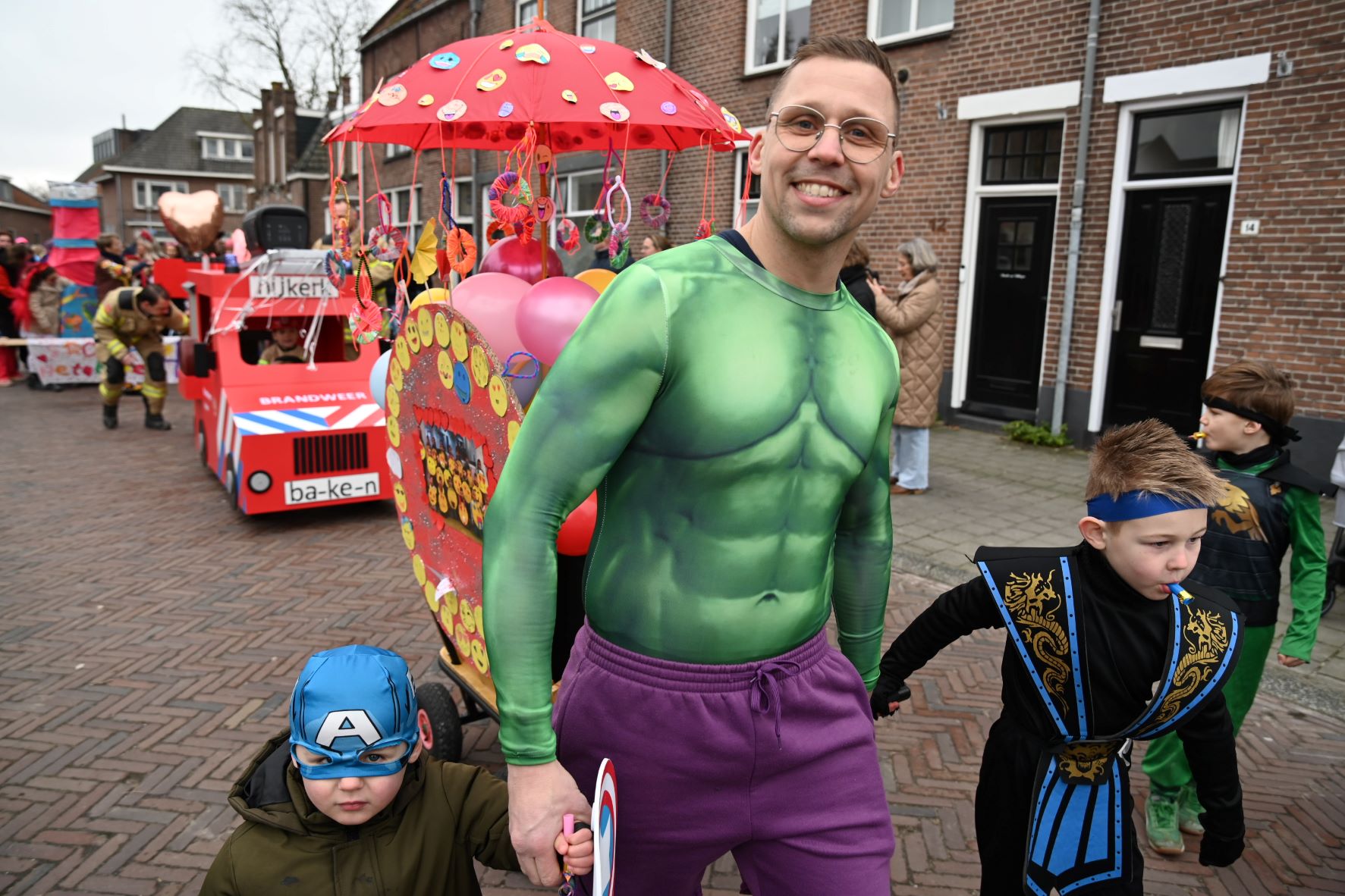Basisschool Het Baken vierd vrijdag 13 februari carnaval. Het thema dit jaar ws: ‘Carnaval op Het Baken, is liefde op het eerste gezicht!’ Veel kinderen waren verkleed als de kleur van de liefde. De leerlingen hadden de afgelopen weken hard gewerkt aan mooie carnavalswagens. Zo was er een brandweerwagen, maar ook een legervoertuig en drie worstenbroodjes. De kinderen begonnen de dag feestelijk in de klas, waarna alle klassen zich gingen opstellen in de Groenestraat voor de optocht door de stad. De stoet werd vergezeld door de Nijkerkse carnavalsvereniging De Doordouwers. Zij hadden een wagen met een rat aan het spit. Er werd alvast een klein voorproefje gegund van de wagen die aan de grote carnavalsoptocht in Hoogland gaat meedoen. Foto Kees van den Heuvel / Dayn van de Pol