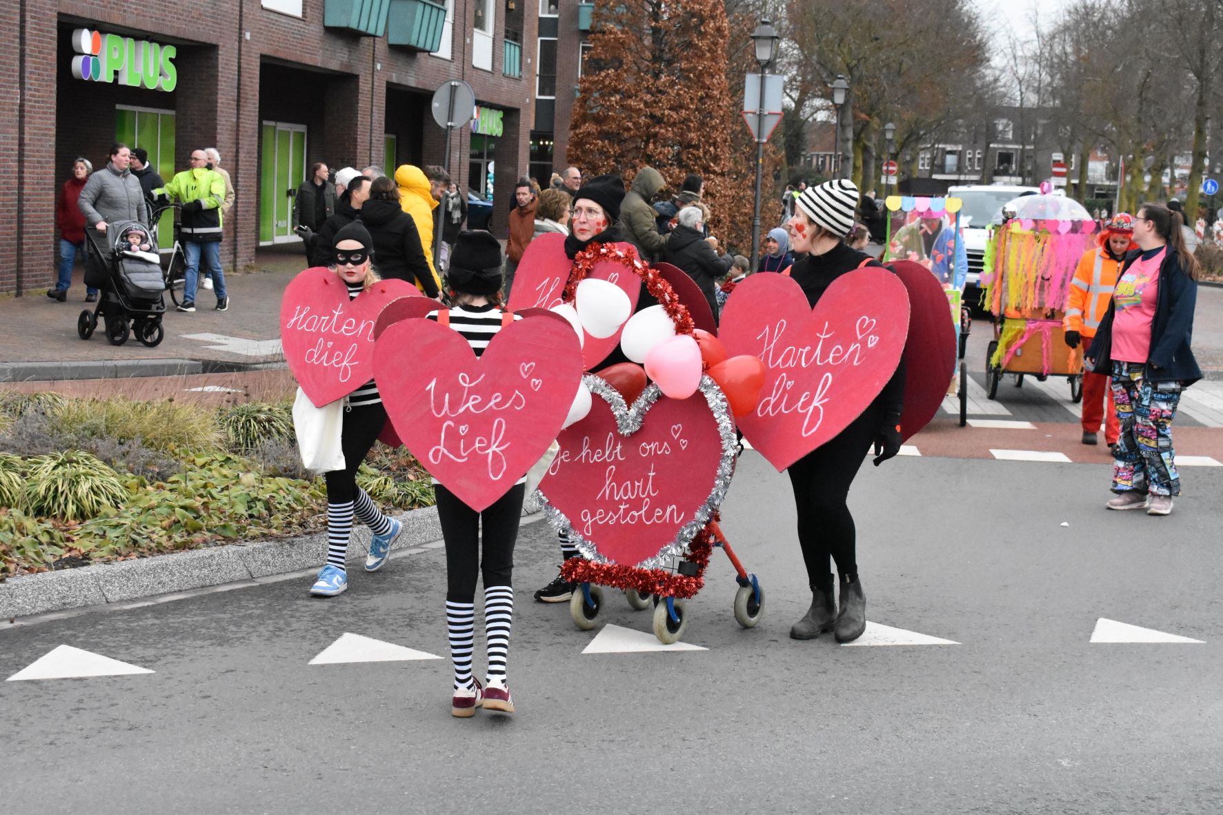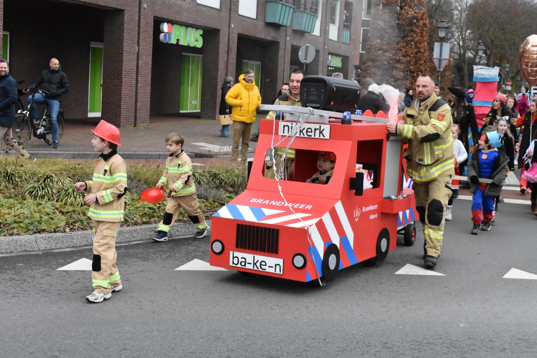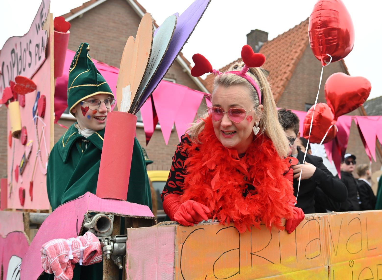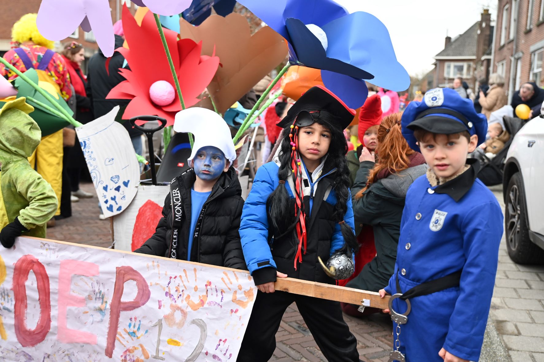 Basisschool Het Baken vierd vrijdag 13 februari carnaval. Het thema dit jaar ws: ‘Carnaval op Het Baken, is liefde op het eerste gezicht!’ Veel kinderen waren verkleed als de kleur van de liefde. De leerlingen hadden de afgelopen weken hard gewerkt aan mooie carnavalswagens. Zo was er een brandweerwagen, maar ook een legervoertuig en drie worstenbroodjes. De kinderen begonnen de dag feestelijk in de klas, waarna alle klassen zich gingen opstellen in de Groenestraat voor de optocht door de stad. De stoet werd vergezeld door de Nijkerkse carnavalsvereniging De Doordouwers. Zij hadden een wagen met een rat aan het spit. Er werd alvast een klein voorproefje gegund van de wagen die aan de grote carnavalsoptocht in Hoogland gaat meedoen. Foto Kees van den Heuvel / Dayn van de Pol