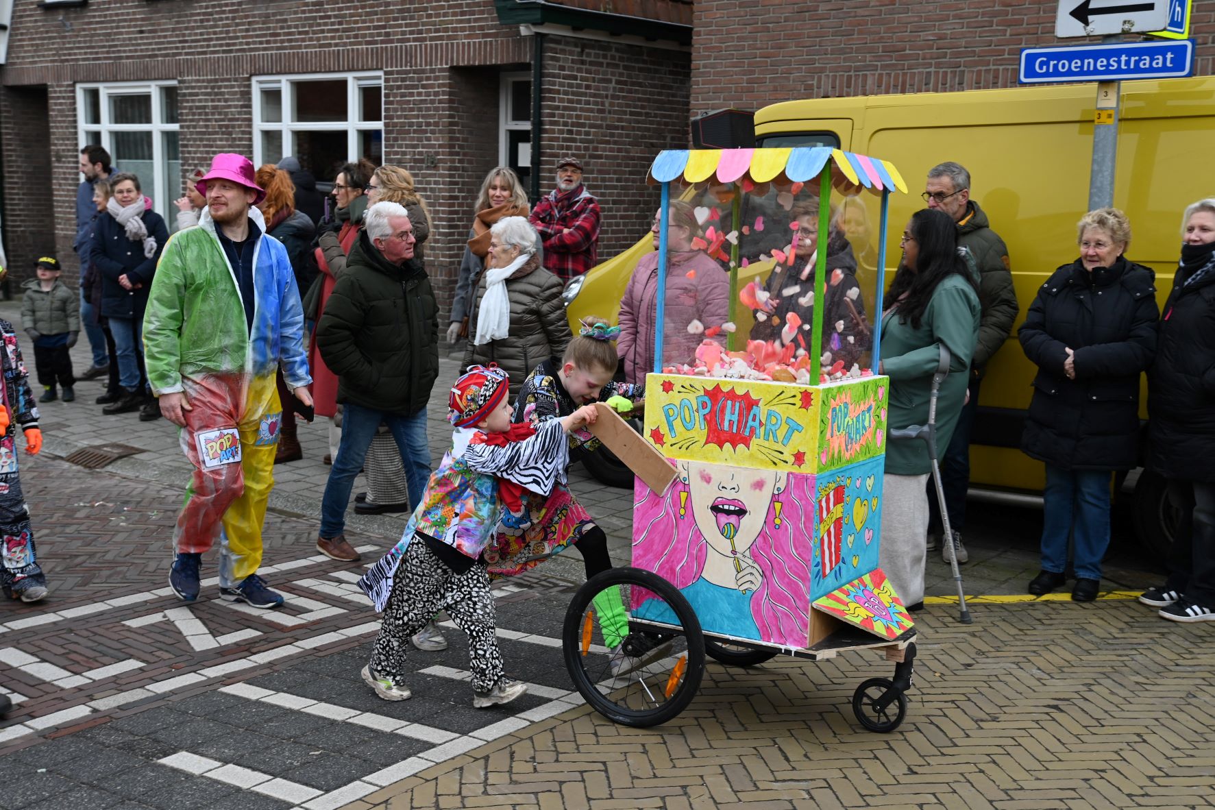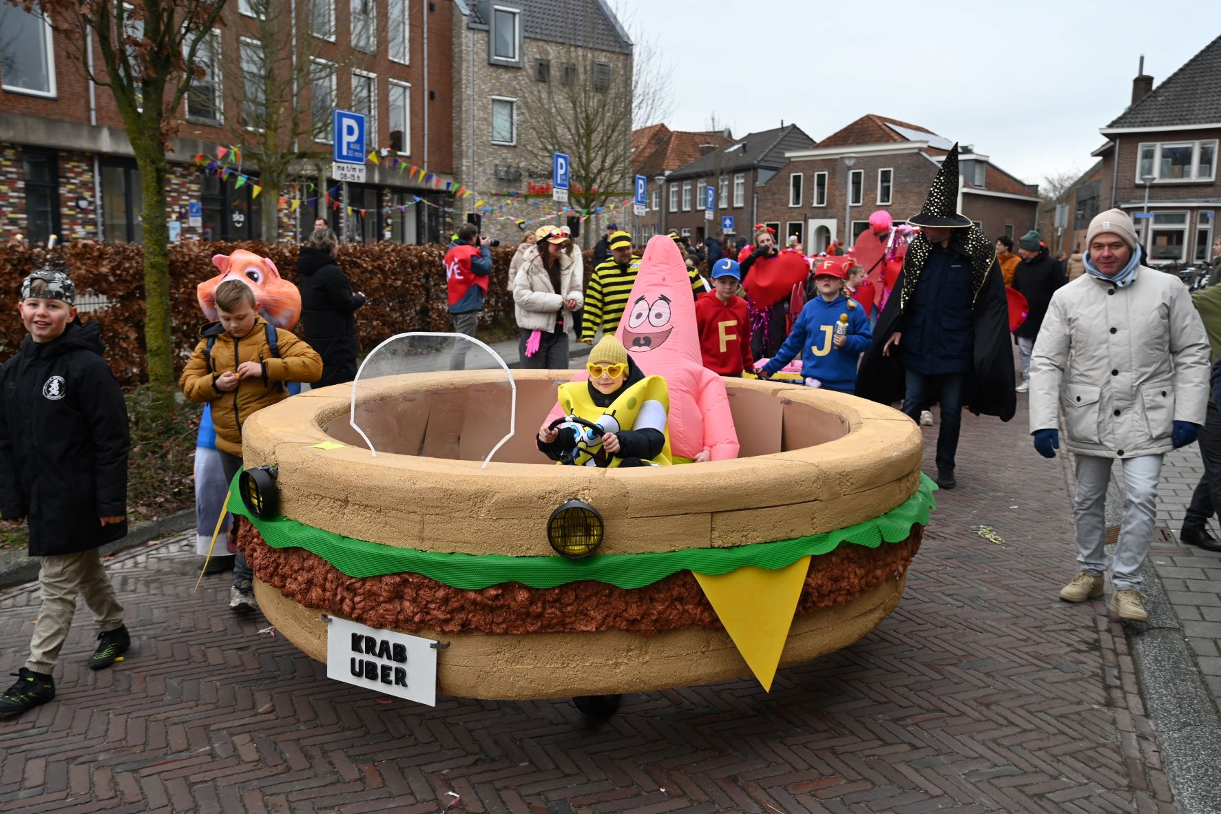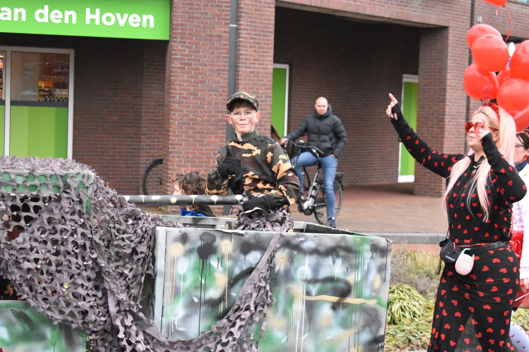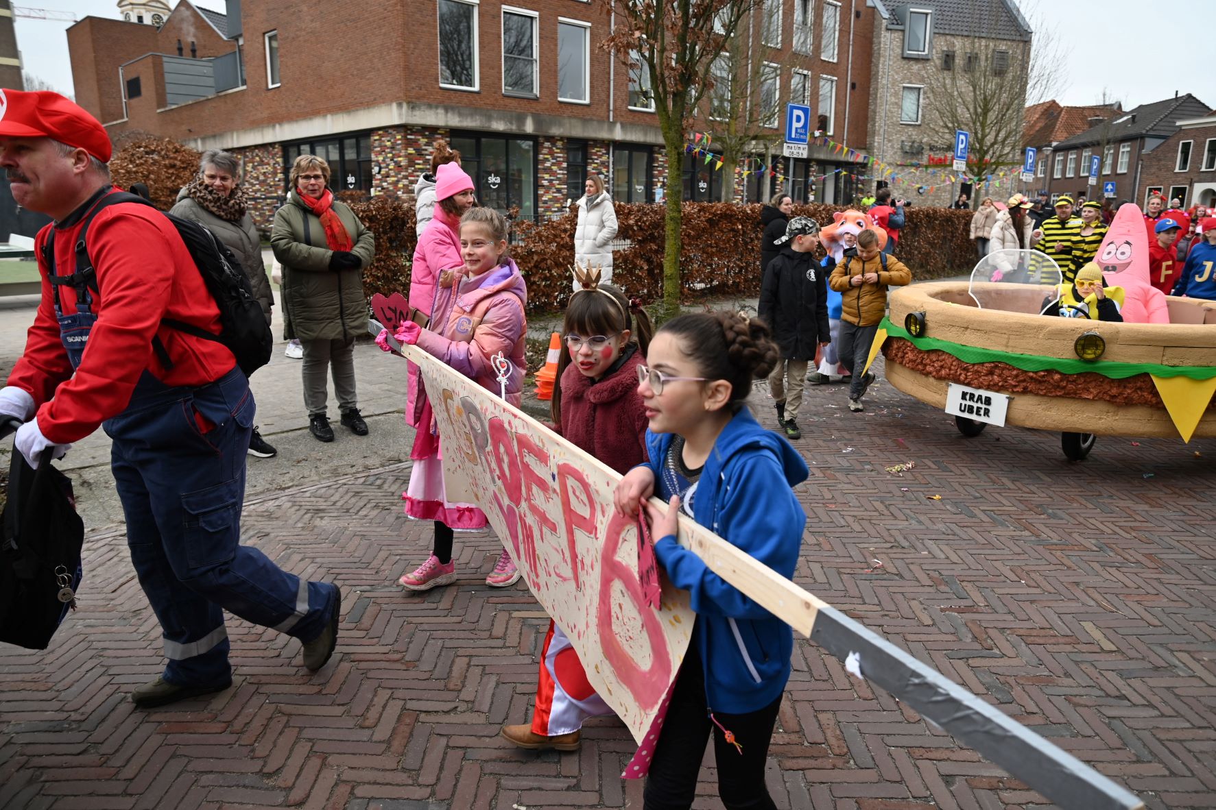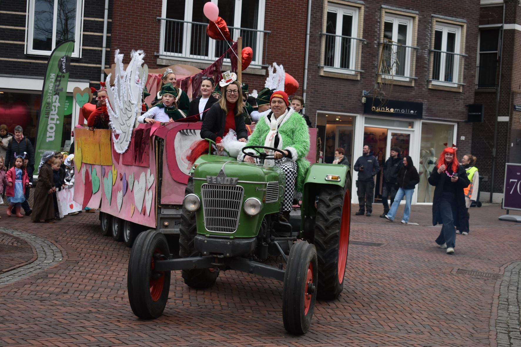 Basisschool Het Baken vierd vrijdag 13 februari carnaval. Het thema dit jaar ws: ‘Carnaval op Het Baken, is liefde op het eerste gezicht!’ Veel kinderen waren verkleed als de kleur van de liefde. De leerlingen hadden de afgelopen weken hard gewerkt aan mooie carnavalswagens. Zo was er een brandweerwagen, maar ook een legervoertuig en drie worstenbroodjes. De kinderen begonnen de dag feestelijk in de klas, waarna alle klassen zich gingen opstellen in de Groenestraat voor de optocht door de stad. De stoet werd vergezeld door de Nijkerkse carnavalsvereniging De Doordouwers. Zij hadden een wagen met een rat aan het spit. Er werd alvast een klein voorproefje gegund van de wagen die aan de grote carnavalsoptocht in Hoogland gaat meedoen. Foto Kees van den Heuvel / Dayn van de Pol