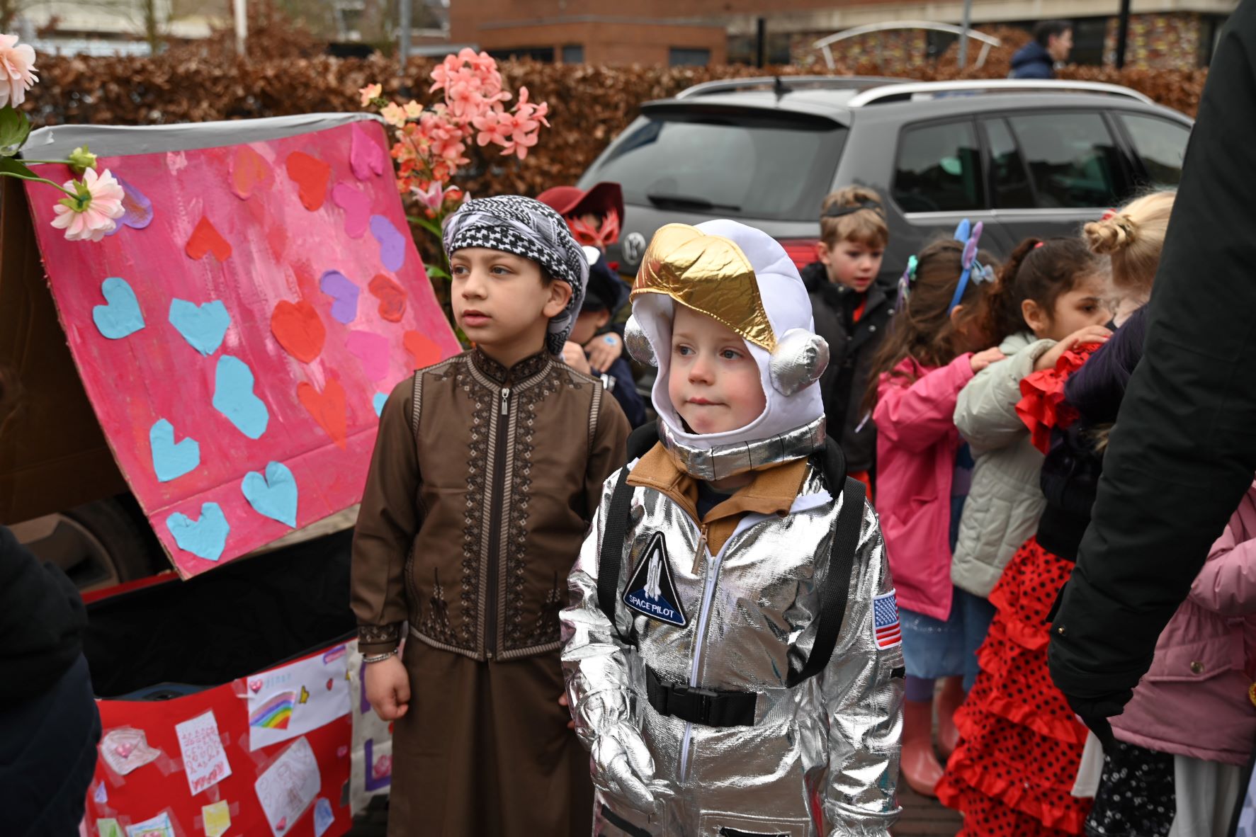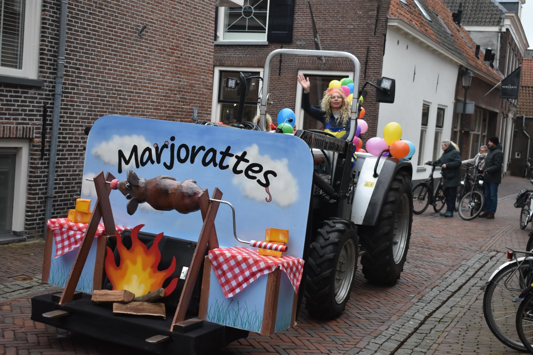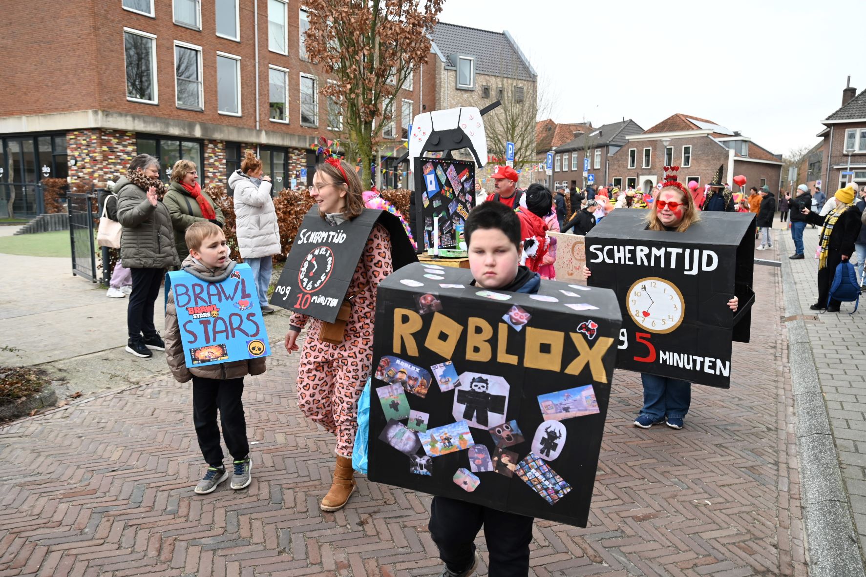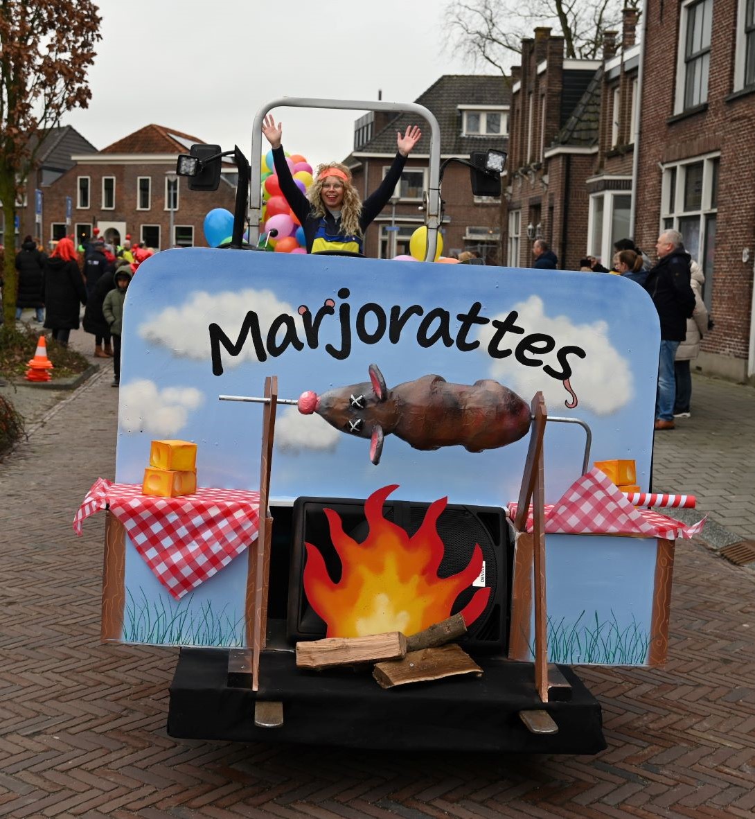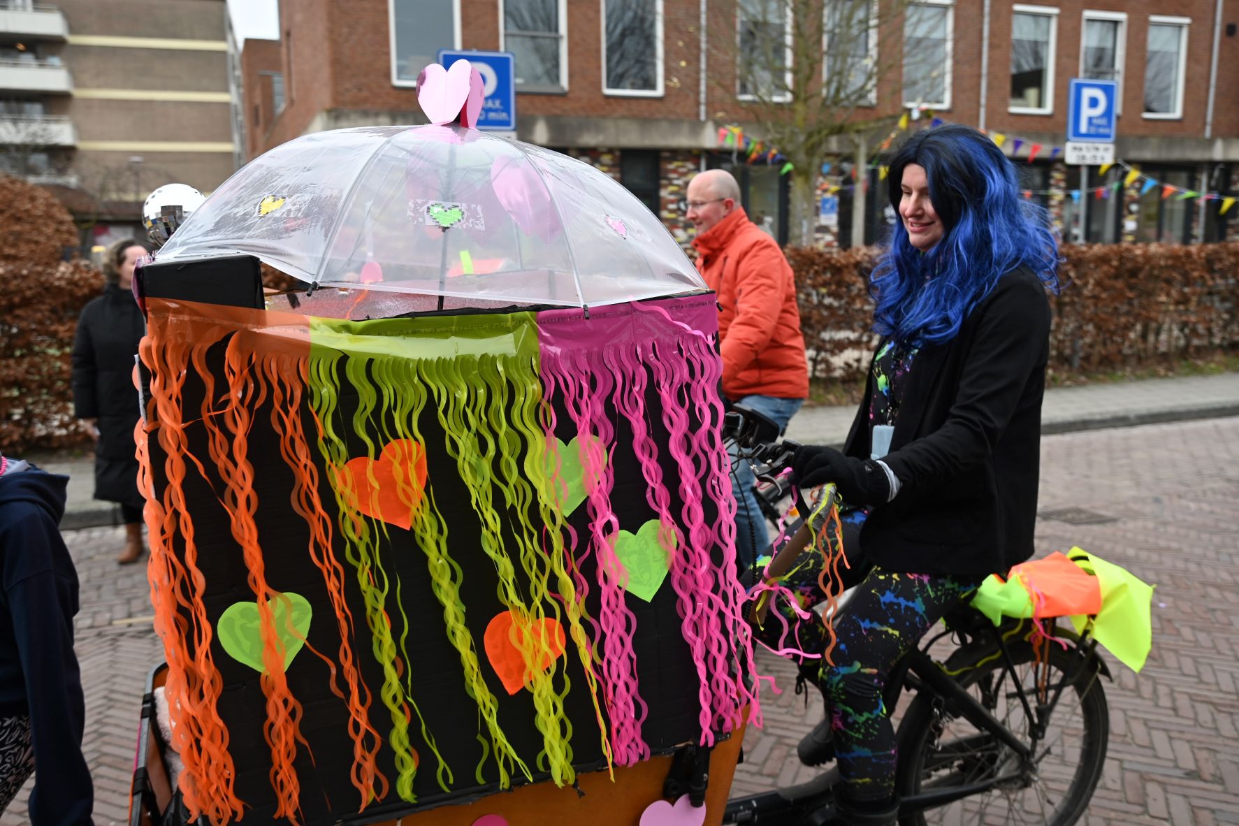 Basisschool Het Baken vierd vrijdag 13 februari carnaval. Het thema dit jaar ws: ‘Carnaval op Het Baken, is liefde op het eerste gezicht!’ Veel kinderen waren verkleed als de kleur van de liefde. De leerlingen hadden de afgelopen weken hard gewerkt aan mooie carnavalswagens. Zo was er een brandweerwagen, maar ook een legervoertuig en drie worstenbroodjes. De kinderen begonnen de dag feestelijk in de klas, waarna alle klassen zich gingen opstellen in de Groenestraat voor de optocht door de stad. De stoet werd vergezeld door de Nijkerkse carnavalsvereniging De Doordouwers. Zij hadden een wagen met een rat aan het spit. Er werd alvast een klein voorproefje gegund van de wagen die aan de grote carnavalsoptocht in Hoogland gaat meedoen. Foto Kees van den Heuvel / Dayn van de Pol