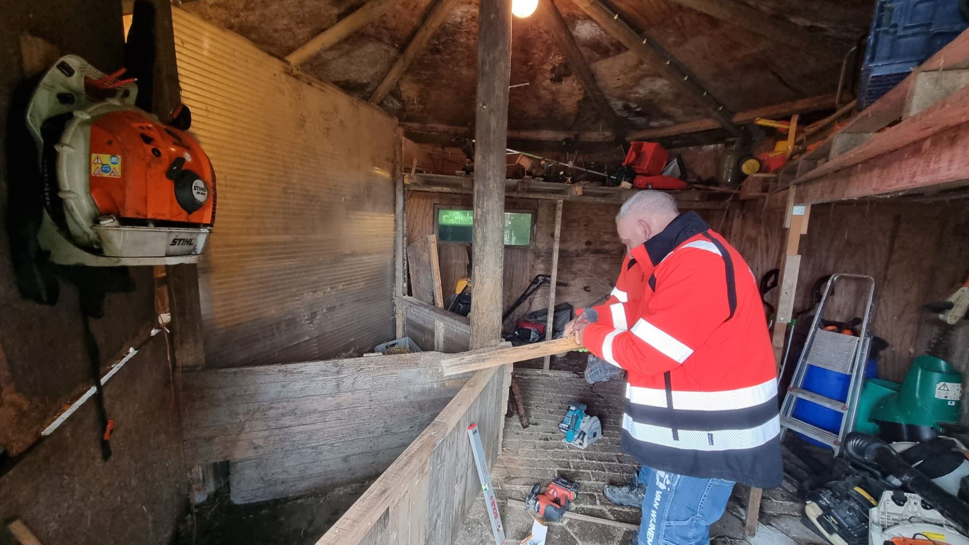 Terwijl zij dagelijks bouwen aan de toekomst van Nijkerk bij het woningbouwproject “Wonen bij de Toren” aan de Torenstraat, verruilde een delegatie van Van Wijnen Harderwijk-Zwolle de bouwplaats afgelopen vrijdag voor de tuin en werkplaats van De Veensche Kas in Nijkerkerveen. In het kader van NLdoet hielp het bouwteam de dagbesteding met een flinke lijst klussen die al lange tijd bleven liggen. De Veensche Kas, een geliefde dagbestedingslocatie van zorgorganisatie ’s Heeren Loo, ontving het team met open armen. De “helpende handjes” van de vakmensen uit Harderwijk en Zwolle bleken goud waard. Met grote voortvarendheid en een flinke dosis enthousiasme werden diverse onderhoudswerkzaamheden aangepakt, waardoor de locatie er weer piekfijn bij staat voor de cliënten en bezoekers.