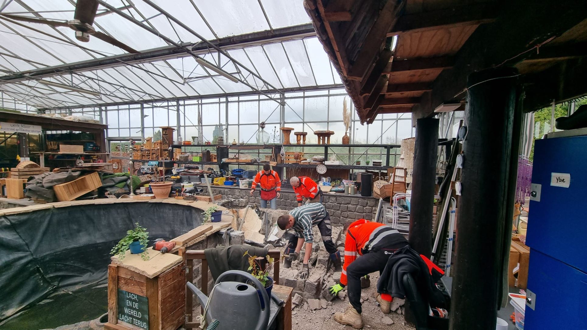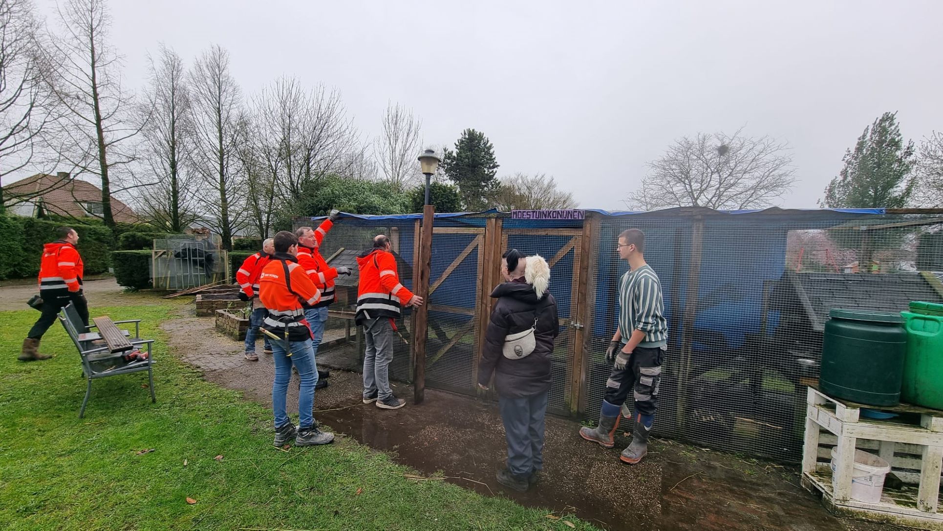 Terwijl zij dagelijks bouwen aan de toekomst van Nijkerk bij het woningbouwproject “Wonen bij de Toren” aan de Torenstraat, verruilde een delegatie van Van Wijnen Harderwijk-Zwolle de bouwplaats afgelopen vrijdag voor de tuin en werkplaats van De Veensche Kas in Nijkerkerveen. In het kader van NLdoet hielp het bouwteam de dagbesteding met een flinke lijst klussen die al lange tijd bleven liggen. De Veensche Kas, een geliefde dagbestedingslocatie van zorgorganisatie ’s Heeren Loo, ontving het team met open armen. De “helpende handjes” van de vakmensen uit Harderwijk en Zwolle bleken goud waard. Met grote voortvarendheid en een flinke dosis enthousiasme werden diverse onderhoudswerkzaamheden aangepakt, waardoor de locatie er weer piekfijn bij staat voor de cliënten en bezoekers.