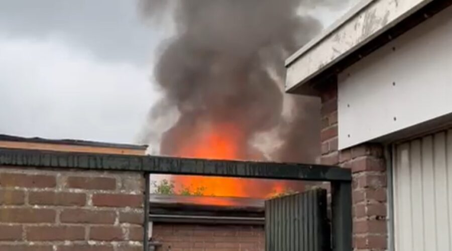 Een ambulance was ook aanwezig om één persoon te controleren, hoewel het nog niet duidelijk is of er sprake was van verwondingen. De brand brak rond kwart over twaalf ’s middags uit en werd binnen 4 minuten opgeschaald naar ‘middelbrand’. De brandweer is gealarmeerd, waarbij onder meer twee tankautospuiten en één hoogwerker zijn opgeroepen.