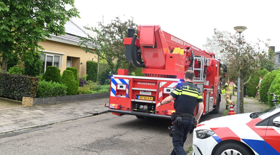 De hulpdiensten zijn zaterdagmorgen 1 juni ingeschakeld voor een brand op de Van Curlerstraat in Nijkerk. De bewoner wilde net van huis vertrekken toen een harde knal hoorbaar was. Daarna waren er donkere rookwolken. Gelijk is rond kwart voor negen de alarmcentrale gebeld. De brandweer was onder meer met twee wagens aanwezig. Foto en bron Kees van den Heuvel