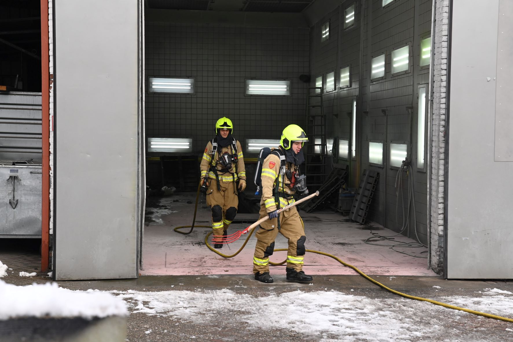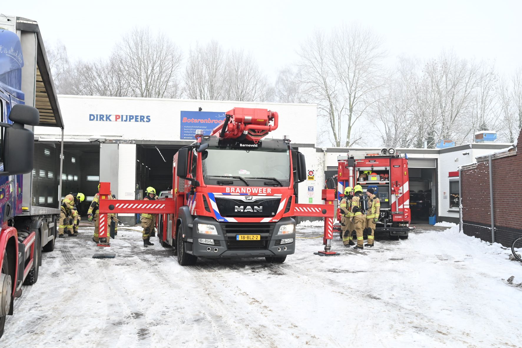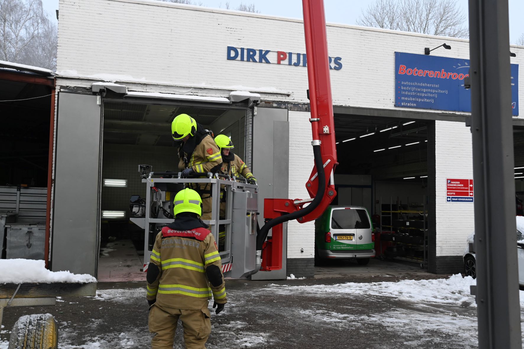 Aan de Bruins Slotlaan in Nijkerk is dinsdagochtend 6 januari een brandlucht bij een bedrijf gemeld. Het zou gaan om een verbrande filter. De brand brak ’s ochtends uit. De brandweer is gealarmeerd, waarbij onder meer één tankautospuit en als bijstand één hoogwerker uit Barneveld zijn opgeroepen. De hoogwerker heeft voor alle zekerheid het gehele dak onderzocht. Foto Kees van den Heuvel