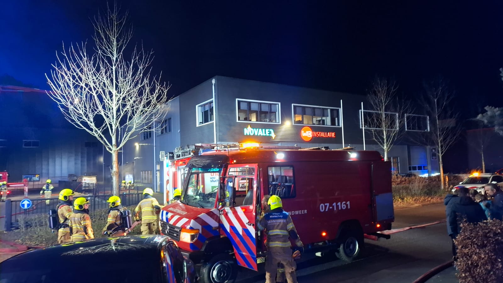 Het heeft donderdagavond 15 januari tegen middernacht kortstondig gebrand in een bedrijfshal aan de Riddererf in Nijkerk. Binnen stond een vuilcontainer in de brand en dat leidde tot een flinke rookontwikkeling. Er is opgeschaald tot grote brand in verband met een duidelijke rookverspreiding in meerdere bedrijfspanden. Uiteindelijk bleef de brand beperkt tot de container in een van de hallen waardoor de hulpdiensten snel brandmeester konden geven. Verder was er enkel materiƫle schade. Foto Kees van den Heuvel