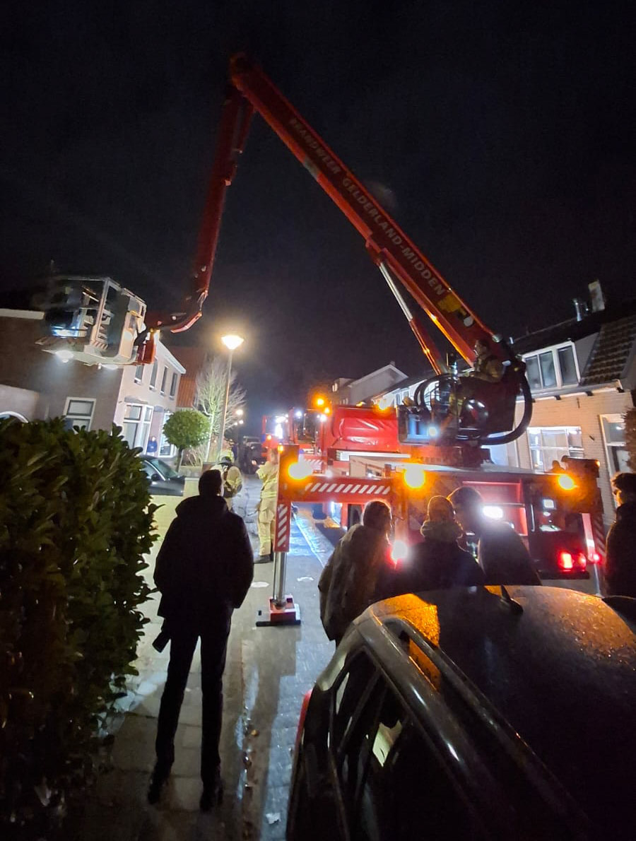 De brandweer van Nijkerk is zaterdagavond rond 23.00 uur uitgerukt naar de Groenestraat in Nijkerk na een melding van een schoorsteenbrand. Ter plaatse kwamen een tankautospuit en een hoogwerker om de situatie onder controle te krijgen. De brandweer heeft de woning gecontroleerd om uitbreiding en verdere risico’s uit te sluiten. Over de oorzaak van de schoorsteenbrand en eventuele schade is op dit moment nog niets bekend. Meer informatie volgt zodra deze beschikbaar is. Foto’s: Marcel Bakker.