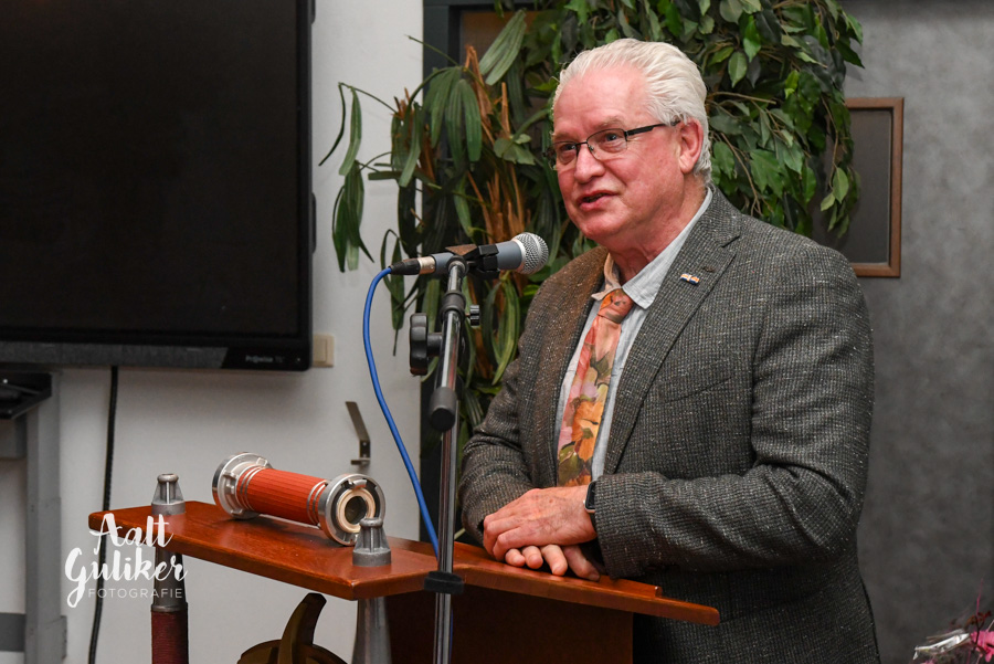Na 24,5 jaar is Bart gestopt als vrijwilliger bij de Brandweer Nijkerk. Hij gaat zijn focus richten op het korps in Amsterdam-Amstelland. Niet omdat hij dat zo graag wilde, maar de omstandigheden noopten daartoe. Toch kan Bart terugkijken op een mooie tijd met warme herinneringen en dierbare vriendschappen. Zo waren er tijdens de receptie vrijdagavond 23 januari toespraken van zijn maatje Gerrit Willem de Groot, Wim Wassink en Johan de Vries. Allemaal prezen ze de passie, toewijding, doorzettingsvermogen en betrokkenheid van Bart bij het brandweerwezen. Van de collega’s van Blusgroep 2 ontving Bart een glas-in-loodraam met het logo van de Nijkerkse brandweer. Het is nog niet helemaal klaar, maar krijgt vast een mooi plekje in de boerderij van Bart en Hennie. Ook Anton Slofstra, regionaal commandant was aanwezig en die reikte een oorkonde en penning uit aan de afscheid nemende Bart.