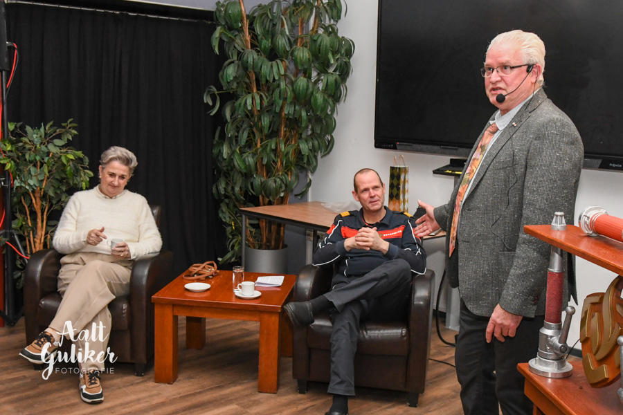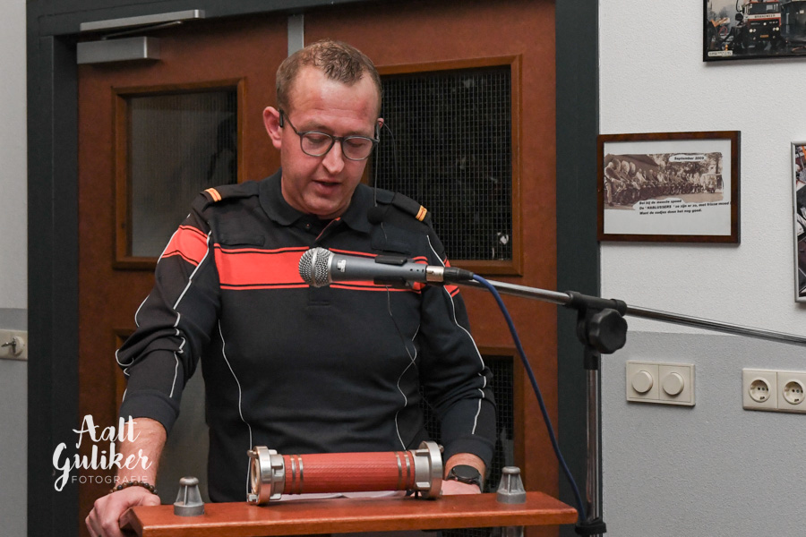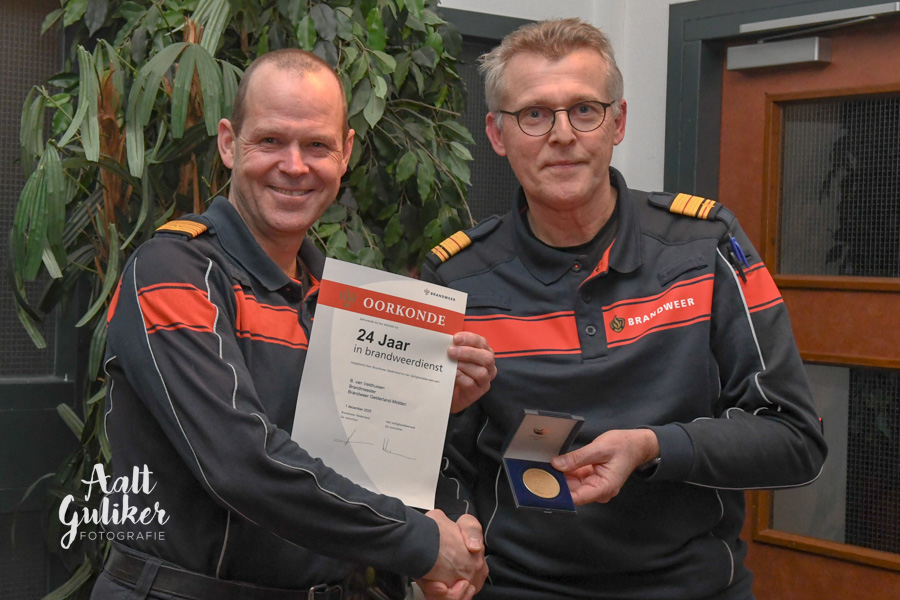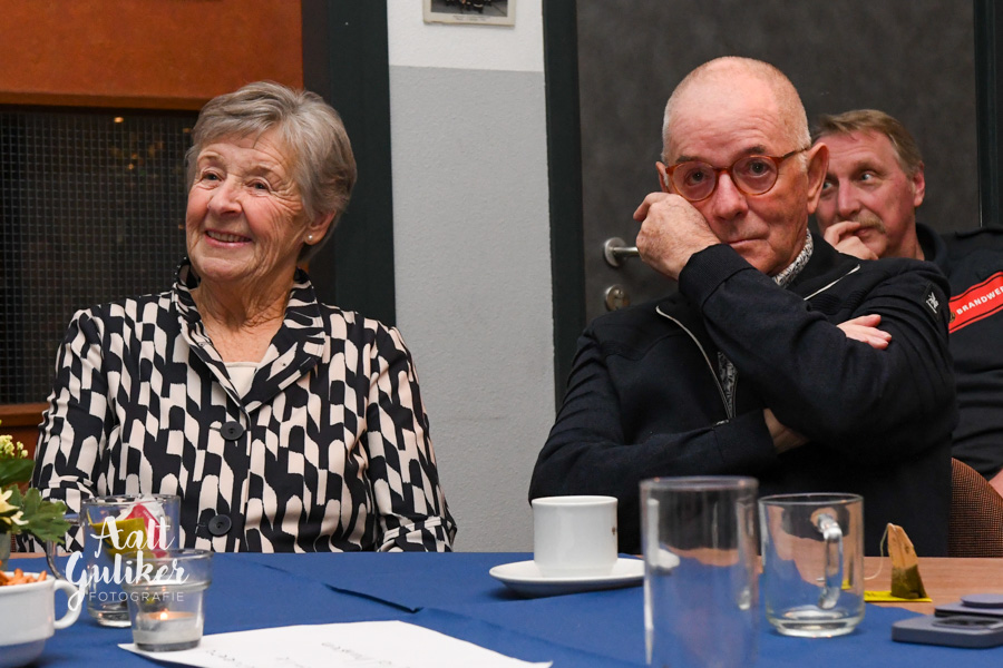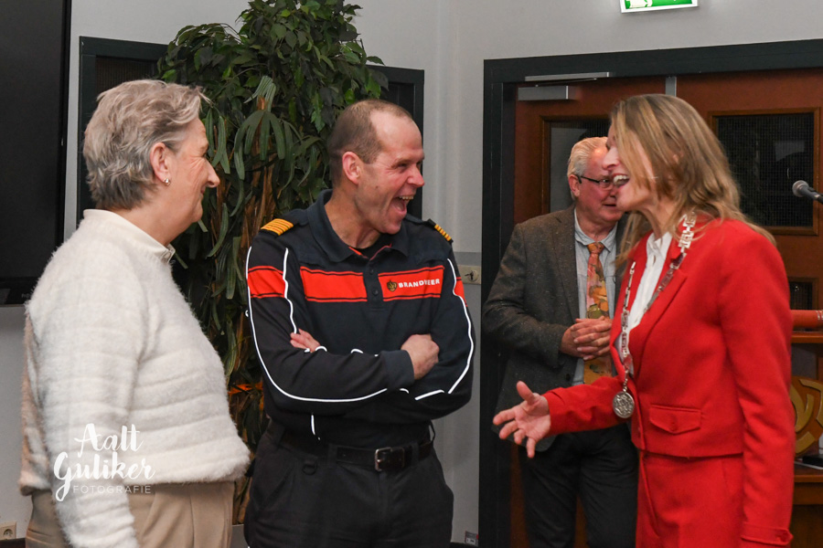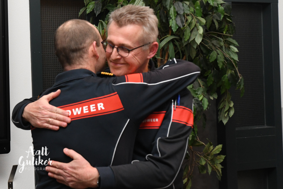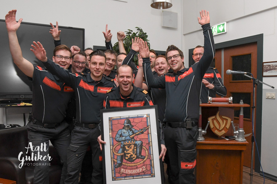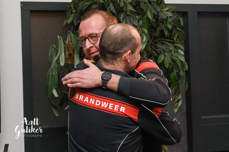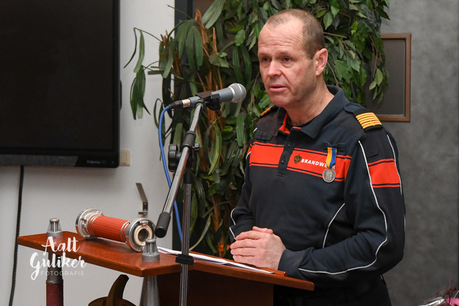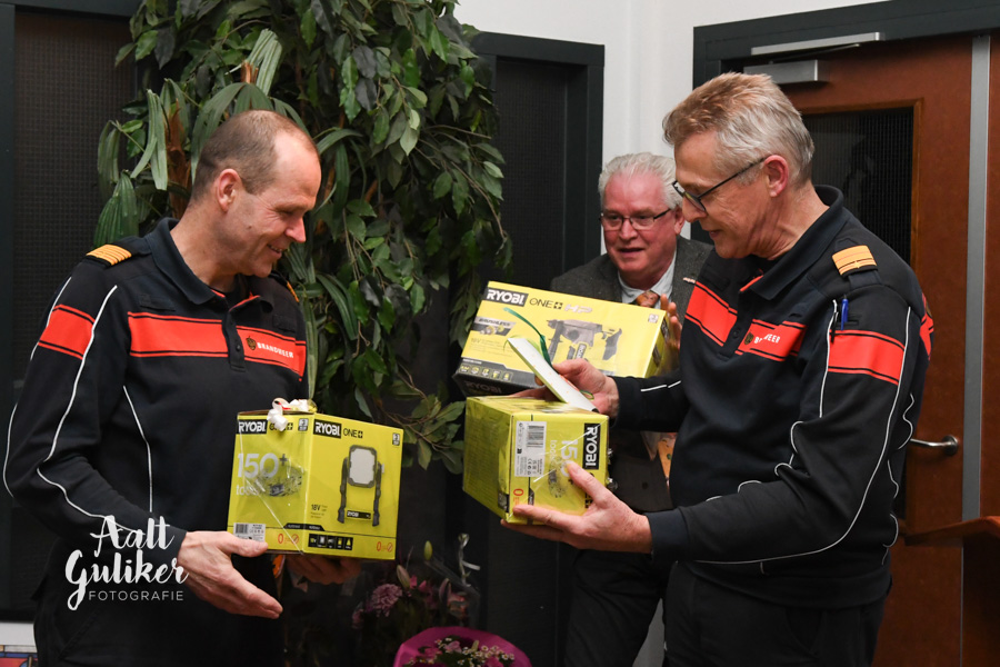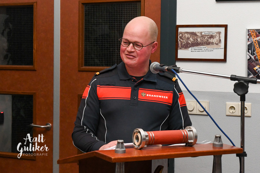 Na 24,5 jaar is Bart gestopt als vrijwilliger bij de Brandweer Nijkerk. Hij gaat zijn focus richten op het korps in Amsterdam-Amstelland. Niet omdat hij dat zo graag wilde, maar de omstandigheden noopten daartoe. Toch kan Bart terugkijken op een mooie tijd met warme herinneringen en dierbare vriendschappen. Zo waren er tijdens de receptie vrijdagavond 23 januari toespraken van zijn maatje Gerrit Willem de Groot, Wim Wassink en Johan de Vries. Allemaal prezen ze de passie, toewijding, doorzettingsvermogen en betrokkenheid van Bart bij het brandweerwezen. Van de collega’s van Blusgroep 2 ontving Bart een glas-in-loodraam met het logo van de Nijkerkse brandweer. Het is nog niet helemaal klaar, maar krijgt vast een mooi plekje in de boerderij van Bart en Hennie. Ook Anton Slofstra, regionaal commandant was aanwezig en die reikte een oorkonde en penning uit aan de afscheid nemende Bart.