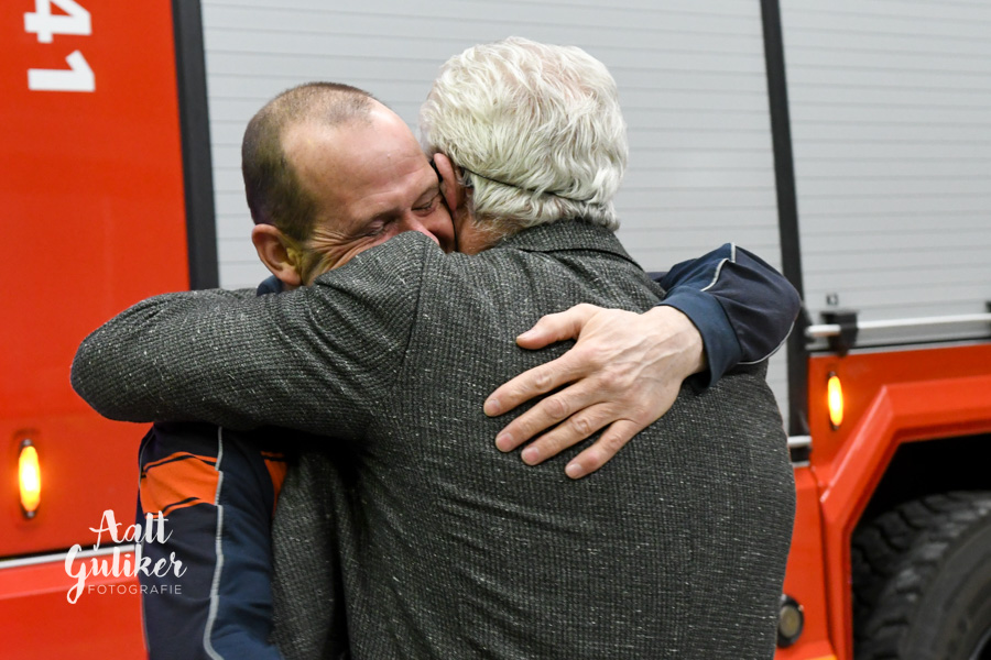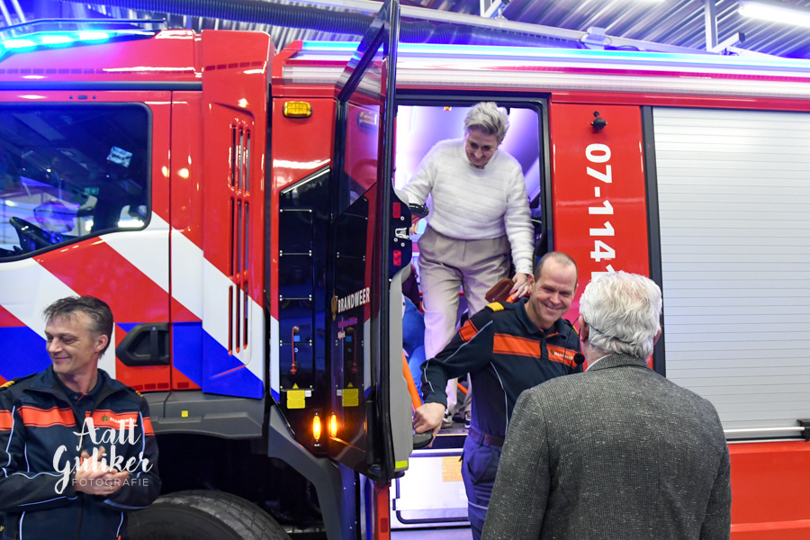 Het is een ritueel dat een beetje thuishoort op het moment dat een brandweerman afscheid neemt van zijn korps. Bij het afscheid van Bart van Veldhuisen en zijn vrouw Hennie van het Nijkerkse korps waren liefst vijf brandweervoertuigen betrokken. Bart en zijn gezin werden opgehaald vanuit zijn nieuwe woning aan de Bunschoterweg om vervolgens zijn afscheid te vieren met een receptie en toespraken in de brandweerkazerne van Nijkerk.