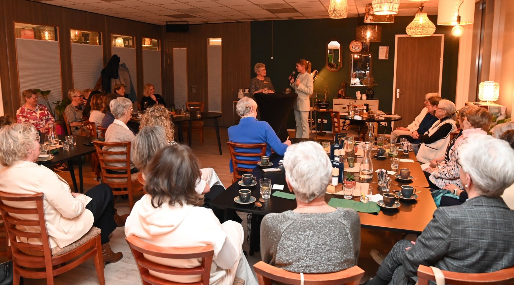 Burgemeester Tinet de Jonge heeft maandag 9 maart kennis gemaakt met de serviceclub InnerWheel Nijkerk. Dat vond plaats in het dorpshuis ’t Veense Hart in Nijkerkerveen. Via vragen die willekeurig konden worden gekozen, liet de burgemeester het achterste van haar tong zien. Inner Wheel Nijkerk is een lokale serviceclub voor vrouwen die zich inzet voor goede doelen, zowel in de regio als internationaal. De leden richten zich op maatschappelijke betrokkenheid, het werven van fondsen, vriendschap en het bevorderen van onderlinge verbondenheid. Foto Kees van den Heuvel