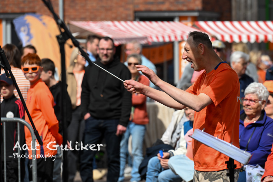 De burgemeester benadrukte dat Koningsdag veel meer is dan alleen oranje versieringen en vlaggen. “Het is een dag van de gemeenschap, een dag van samen zijn, van jong en oud,” aldus De Jonge. Ze wees op de zichtbare verbondenheid in het dorp, waar overal vlaggen wapperen en inwoners samen genieten van de festiviteiten. Ook prees zij de belangrijke rol van muziekvereniging Concordia, die volgens haar “de dag bij elkaar speelt” en daarmee zorgt voor extra sfeer en verbinding. Aansluitend nam het Zeemanskoor Nijkerks Welvaren het muzikale stokje over met meerdere optredens.