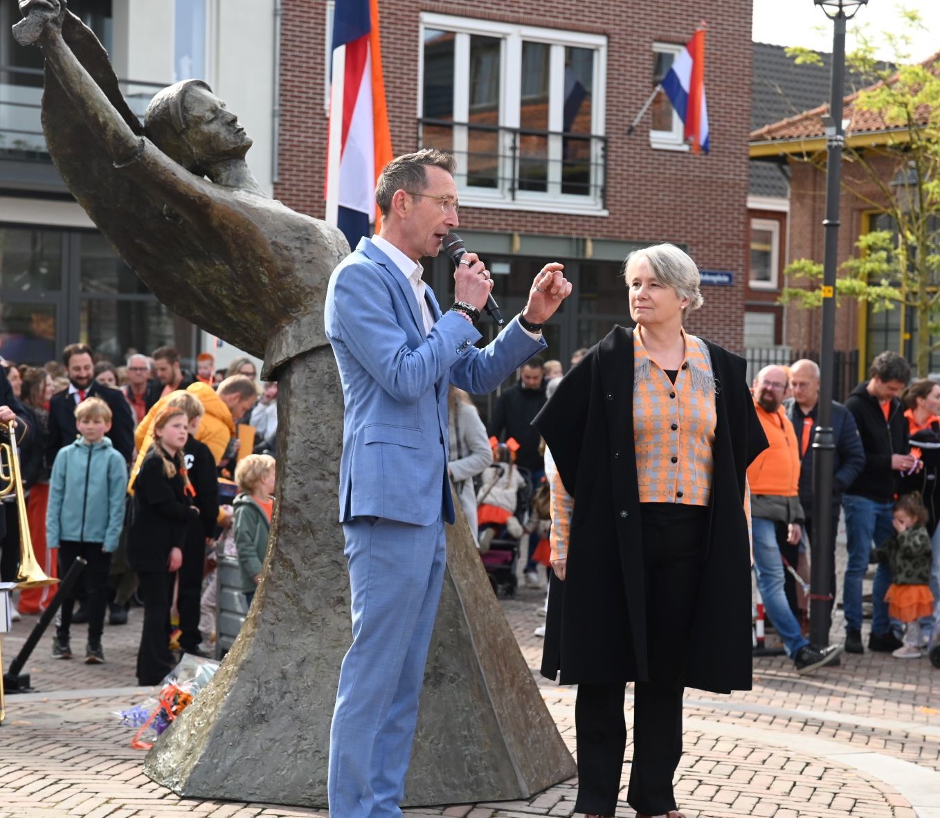 De Burgemeester Hoekstrastraat in Nijkerk is maandag 27 april winnaar geworden van de verkiezing Mooiste straat van Nijkerk op Koningsdag. De prijs werd uitgereikt tijdens de aubade door vertrekkend wethouder Marielle Broekman en voorzitter Marko van der Zwaag van de Oranjevereniging Nijkerk. De Martinus Zwetslootstraat, werd tweede. Er was een eervolle vermelding voor de Hoogstraat en de Bruins Slotlaan was ook erg mooi. In de Martinus Zwetslootstraat bleken de poppen van Koningin Maxima en Koning Willem-Alexander een voltreffer, maar de oranje gloed in de nachtelijke uren van de Burgemeester Hoekstrastraat en de rozetjes in de struiken gaven de doorslag. De bewoners van de Burgemeester Hoekstraat winnen een buurtbarbecue ter waarde van 450 euro van Keurslager Tim de Gier. Ook wordt nog een springkussen bijgeleverd. Foto Kees van den Heuvel