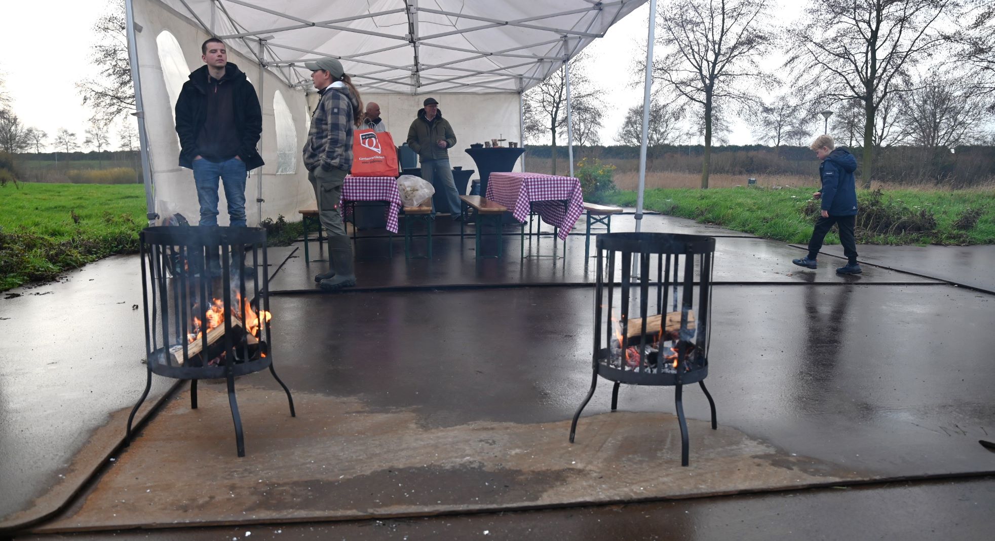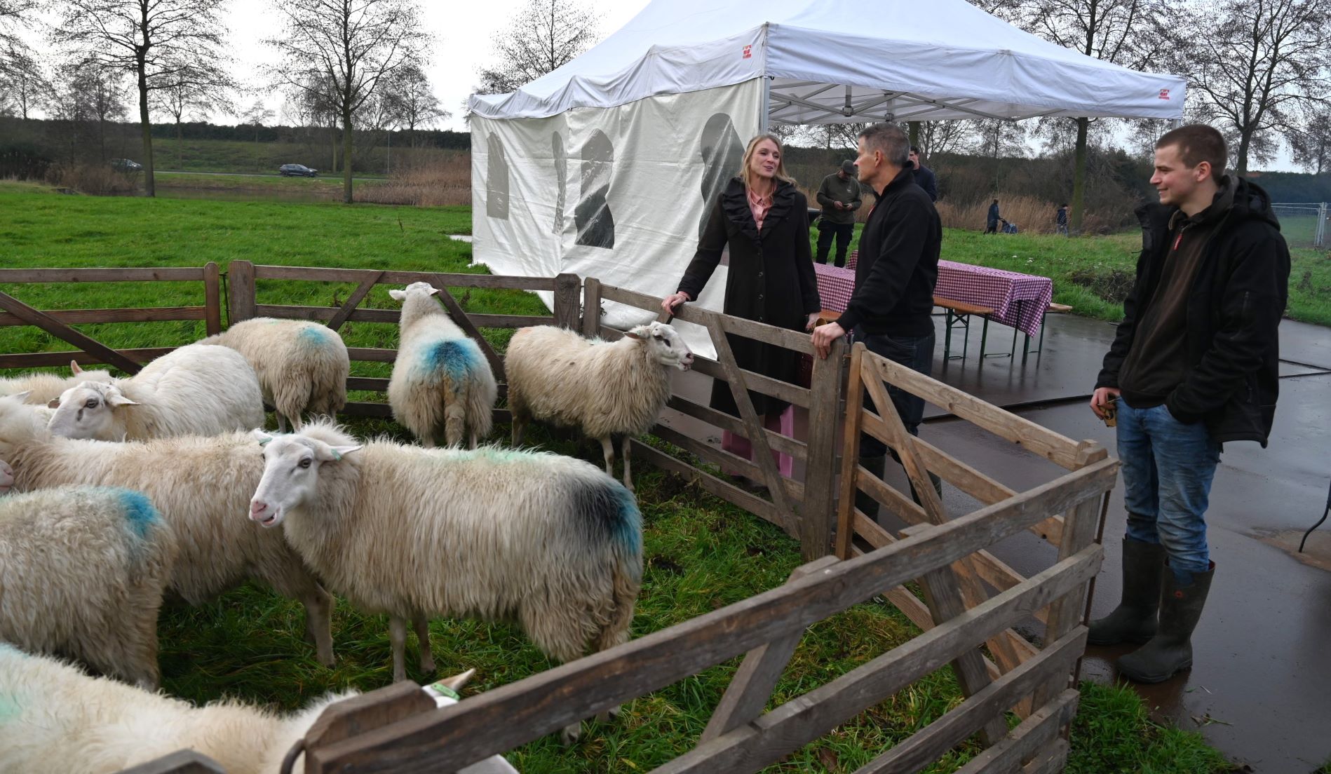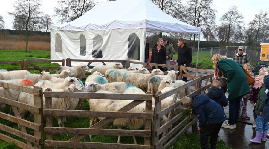 Het einde van het graasseizoen is in zicht en dat heeft gevolgen voor de schaapskudde in Nijkerk. Veel schapen bivakkeren al in de winterwei. Woensdag 17 december ging het groepje dat er nu nog liep, het laatste vak in, naast de nog te renoveren skatebaan in Groot-Corlaer. Omwonenden konden de schapen uitzwaaien. Ook burgemeester Tinet de Jonge was aanwezig. Voor de kinderen waren er marshmallows en er was chocomelk, koffie en thee voor de volwassenen. In het voorjaar worden de schapen weer verwelkomd. Foto Kees van den Heuvel