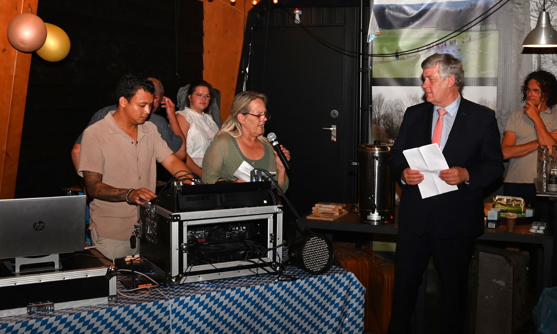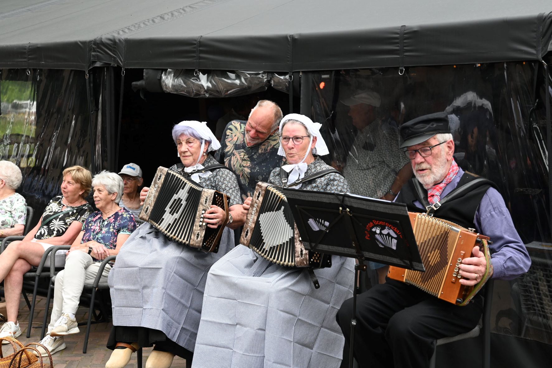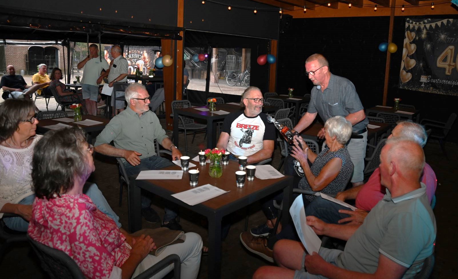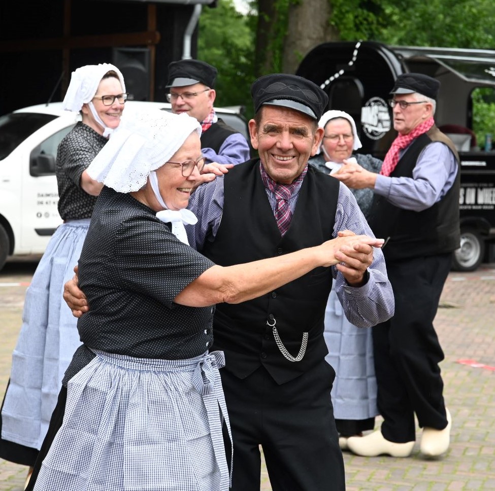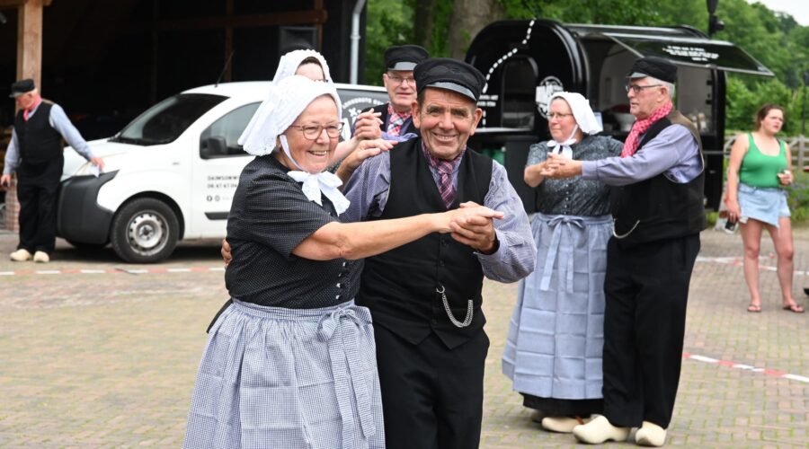 De Puttense buurtvereniging Diermen vierde zaterdag 14 juni nota bene in Nijkerk haar veertigjarige bestaan. De buurtschap ten noorden van Nijkerk had boerderij Groot Hennekeler op de Bloemendaalseweg uitgekozen om dit feest te vieren. Dat vond plaats in twee delen: ’s middags waren er spelletjes en een optreden van de Puttense boerendansers en ’s avonds was er een receptie en feest met een artiest en een deejay. Ook burgemeester Henk Lambooij, oud-wethouder van Nijkerk, kwam langs om de buurtvereniging te feliciteren, mede namens de Nijkerkse collega burgemeester Tinet de Jonge. Hij moest eerlijk gezegd toegeven dat hij niet eerder had gehoord van het bestaan van de buurtvereniging. De burgemeester zei dat de gemeenschapszin van Diermen vooral moest worden gekoesterd. Ter illustratie voerde hij aan dat de bewoners altijd meedoen met de landelijke opschoondag en de omgeving ‘proper’ houden. Het feest zelf werd aangevangen met het zingen van het eigen volkslied en het eren van de nazaten van de oprichters van de buurtvereniging. Foto Kees van den Heuvel