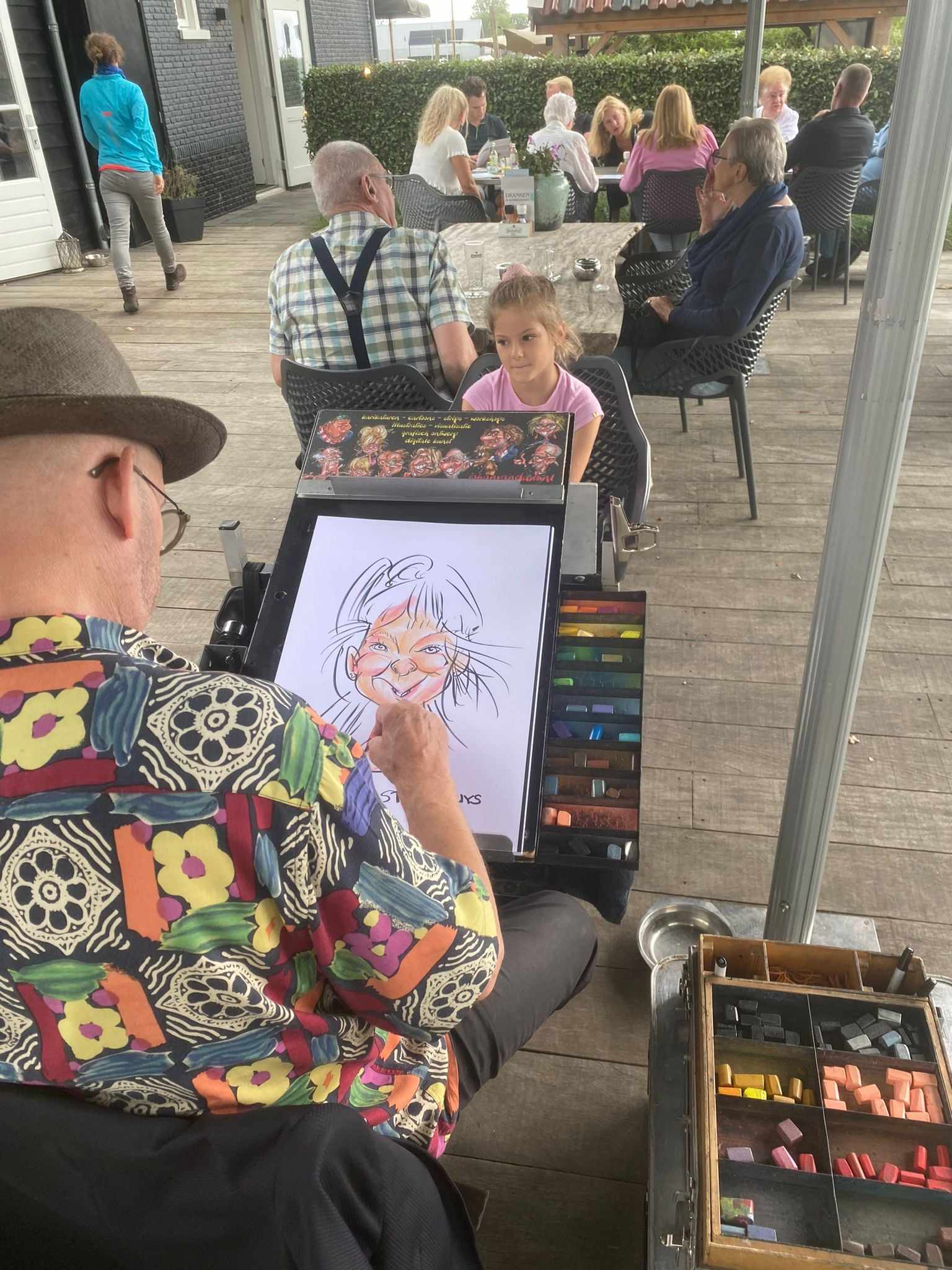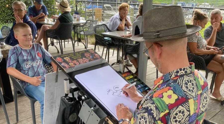 Wie zondagmiddag 13 augustus een hapje ging eten bij restaurant Het Strandhuijs aan de Nijkerkse Zeedijk, die wachtte naast een smaakvol menu ook een andere verrassing. Er was namelijk een cartoonist aanwezig, die alle gasten kosteloos vereeuwigde op het papier.