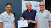 De op vrijdag 16 juni gehouden zangavond “Nijkerk Zingt” ten bate van de Nijkerkse voedselbank heeft het mooie bedrag van 740 euro opgebracht. Op de foto nemen Jan Brons (rechts) en Gerard van de Steege (midden) het bedrag symbolisch in ontvangst van Arno Lambregtse, een van de organisatoren van Nijkerk Zingt. Lambregtse: “we hebben veel [...] lees verder