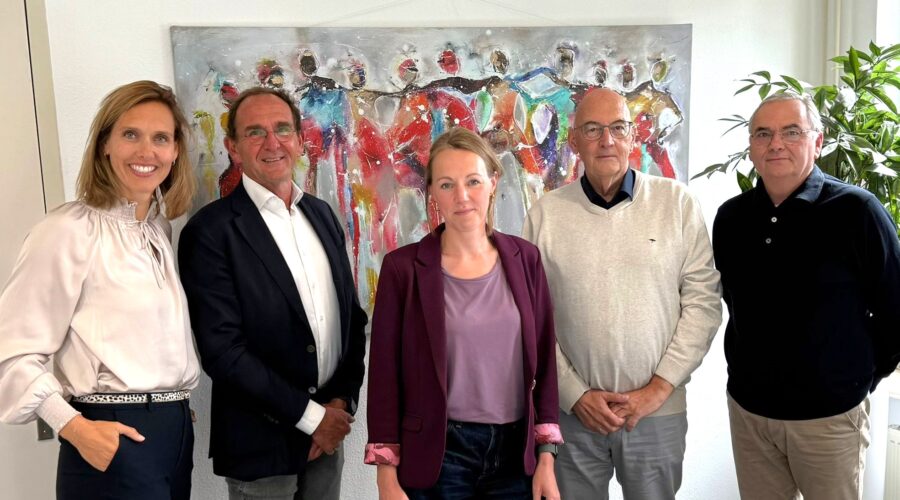 V.l.n.r. Evelien de Vries-Scholten, Arie Jongejan, Henk Luigjes en Harry van den Ham. In het midden Claudia Severs (Landelijk Coördinator Odensehuizen)