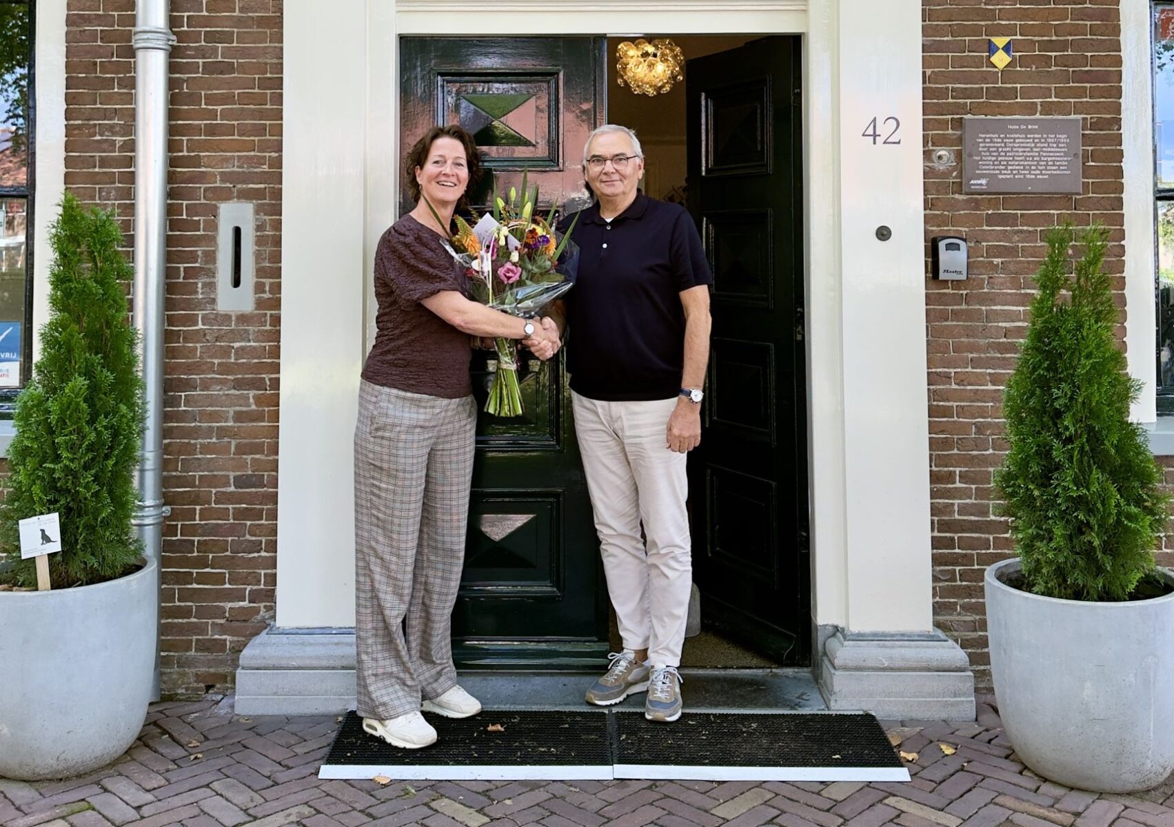 Deze week is Marloes Migchelsen gestart als coördinator van het Odensehuis Nijkerk. Zij werd op haar eerste werkdag hartelijk welkom geheten door Harry van den Ham die haar namens het bestuur van Stichting Odensehuis Nijkerk een bos bloemen aanbood. Vanaf 1 oktober is Nijkerk een nieuwe ontmoetingsplek rijker: het Odensehuis. Deze laagdrempelige locatie staat open voor mensen met geheugenklachten of beginnende dementie en – minstens zo belangrijk – mantelzorgers, familie en vrienden. Zij kunnen er zonder verwijzing of indicatie terecht. Het Odensehuis is een burgerinitiatief. Marloes zal als professionele kracht de bezoekers en vrijwilligers in de dagelijkse organisatie ondersteunen.