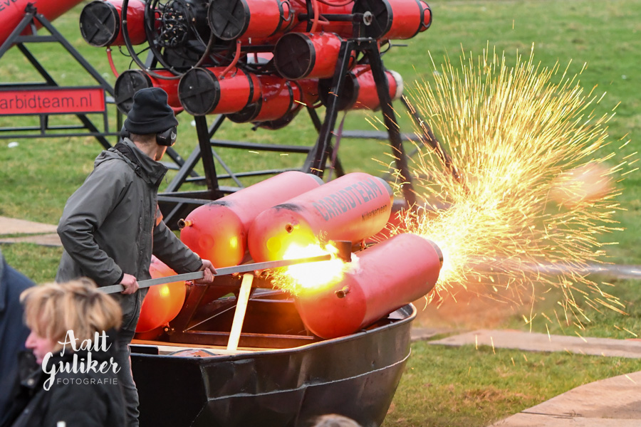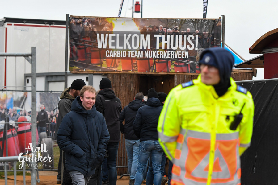 Er was bier, veel bier. Er was genoeg te eten. Er was enorme gezelligheid en… Er was Carbid!! IngrediĆ«nten genoeg om dinsdag 31 december een waar oudejaarsfeest te beleven in Nijkerkerveen. Vele duizenden mensen wisten de weg naar de schietarena bij de familie Landman op de Schoolstraat in het dorp te vinden. Ze genoten onder het genot van een hapje, een slokje en een goed stuk muziek van de oerknallen van Jonny Landman en zijn vrienden van het Carbidteam. Ze hadden het weer goed veur mekoar om in Veens dialect te blijven. Het feest werd afgesloten met een daverend optreden van de vijf koppige coverband Suit Up.