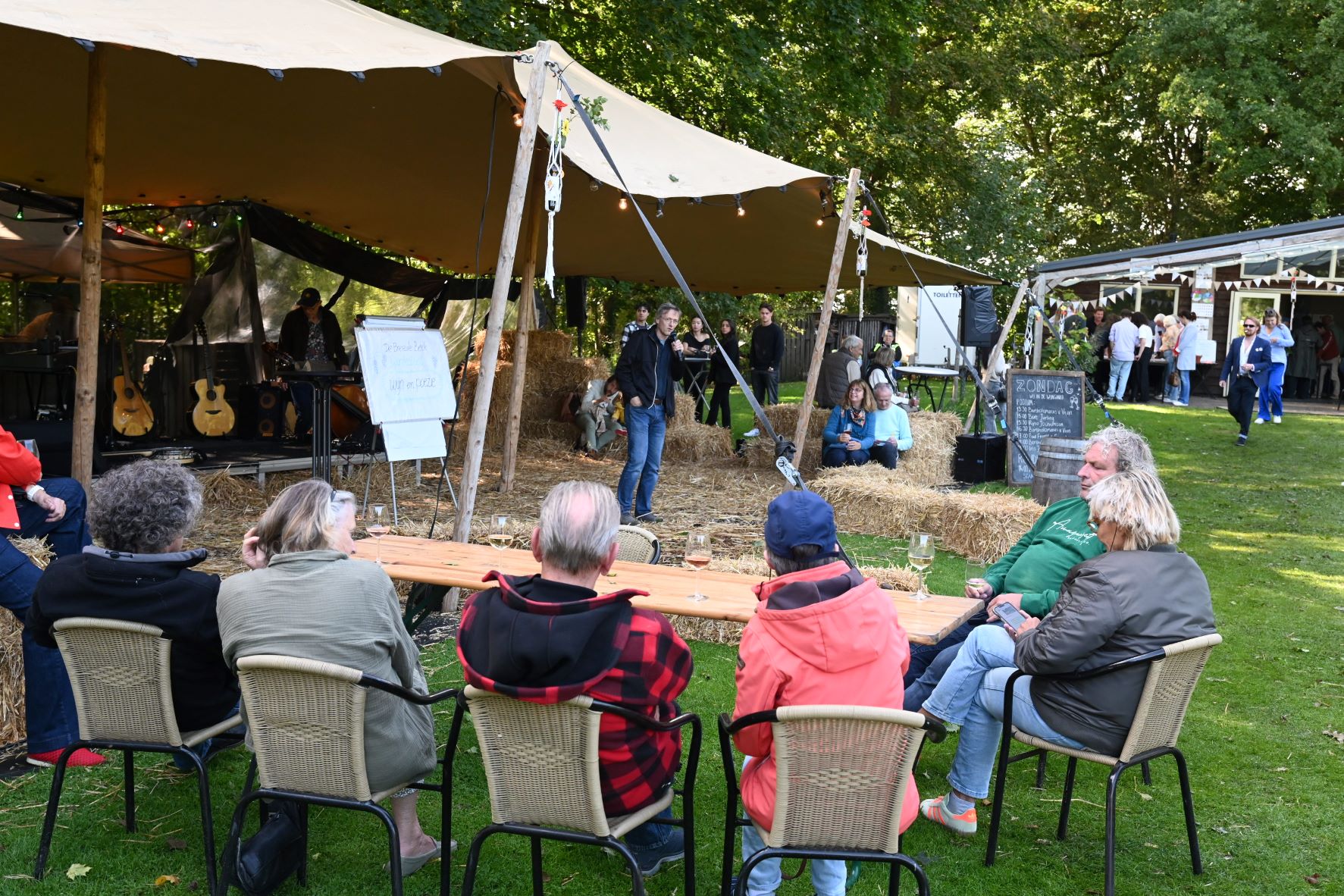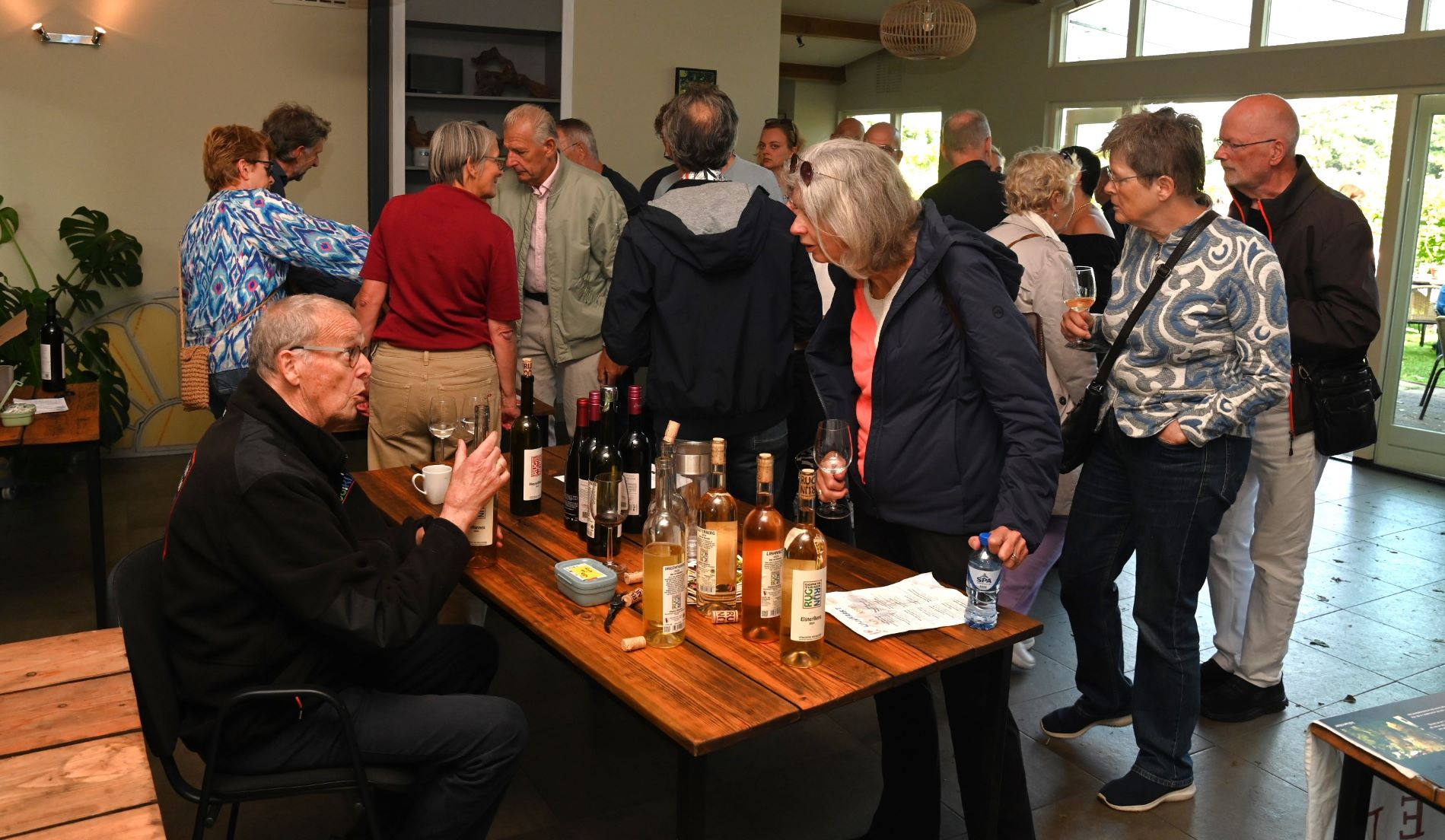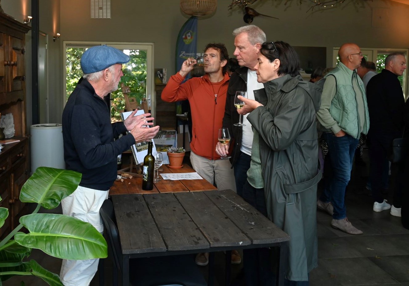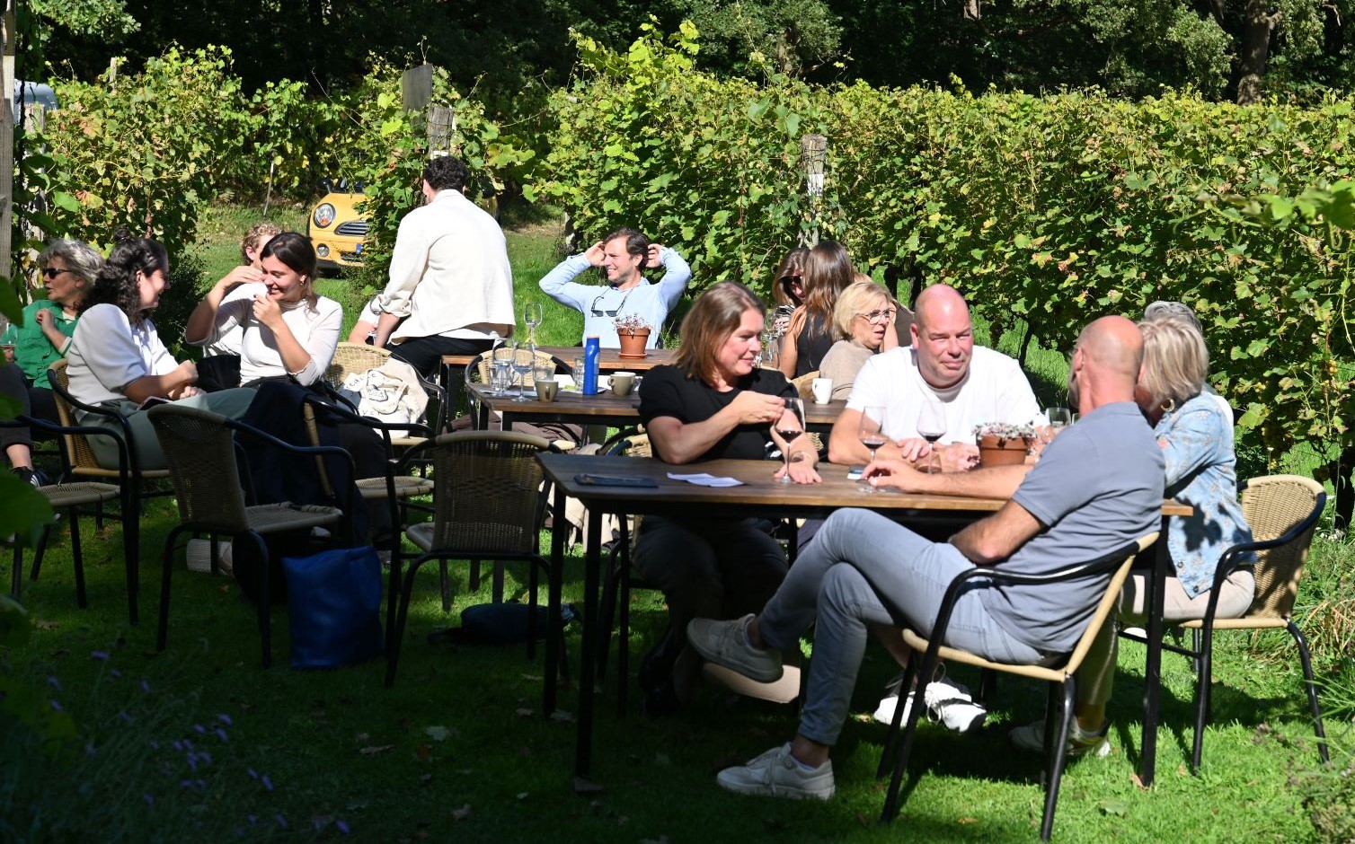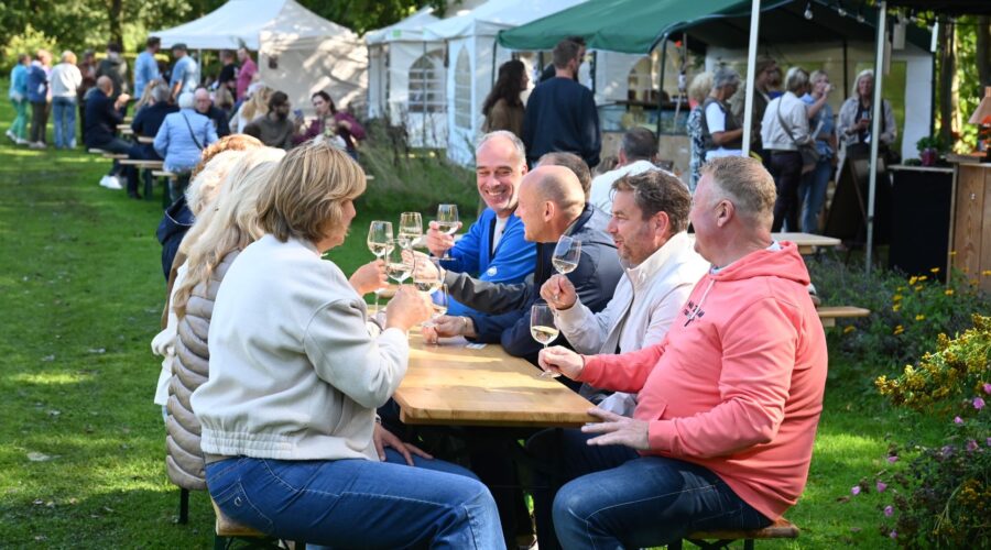 Zondag 14 september vond dag 2 plaats van het Wijnfestival ‘Wij in de wijngaard’ bij wijngaard Aam de Breede Beek in Nijkerk. In tegenstelling tot de zaterdageditie was het fantastisch zonnig weer. Tijdens het festival kon kennis worden gemaakt met wijnmakers uit de regio. De druiven zijn in september op hun mooist dus dat was extra genieten tussen de druivenranken. Daarom vond het wijnfestival dit weekend plaats. Er is verder plek om te genieten van een borrelplank en culinaire hapjes van eigen bodem. Ook was er live muziek, oud-stadsdichter Bert Jurling, een rondleiding door de wijngaard en wijnworkshops en -activiteiten. Foto Kees van den Heuvel