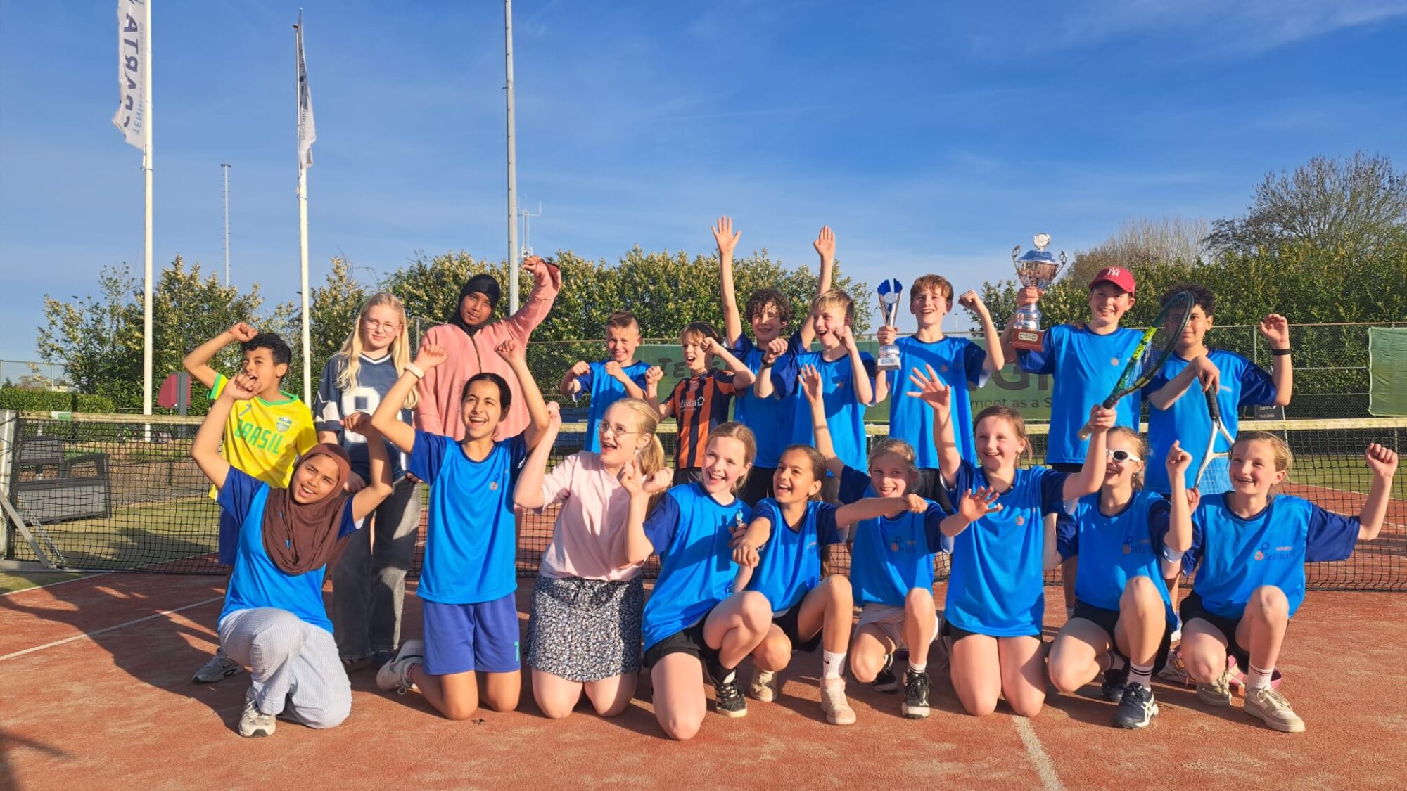 Op een stralende lentedag heeft Kindercentrum De IJsvogel de overwinning gepakt tijdens de 30e editie van het jaarlijkse schooltennistoernooi bij T.V. Sparta. De leerlingen mochten trots plaatsnemen op de hoogste trede van het podium. De tweede plaats ging naar de Koningslinde, terwijl de Ichthusschool beslag legde op de derde plek. Het toernooi, dat inmiddels een vaste traditie is geworden, trok dit jaar maar liefst 108 enthousiaste kinderen van zeven verschillende basisscholen. Gedurende de dag was duidelijk te zien hoe de jonge deelnemers zich wedstrijd na wedstrijd verbeterden, aangemoedigd door fanatieke supporters langs de banen. Op de tribunes en langs het park ontbrak het niet aan enthousiasme, met luid gejuich en kleurrijke spandoeken. Het tennispark van T.V. Sparta was de hele dag gevuld met sportiviteit, plezier en gezonde competitie. Iedere deelnemer gaf het beste van zichzelf in een sfeervolle en goed georganiseerde omgeving.
