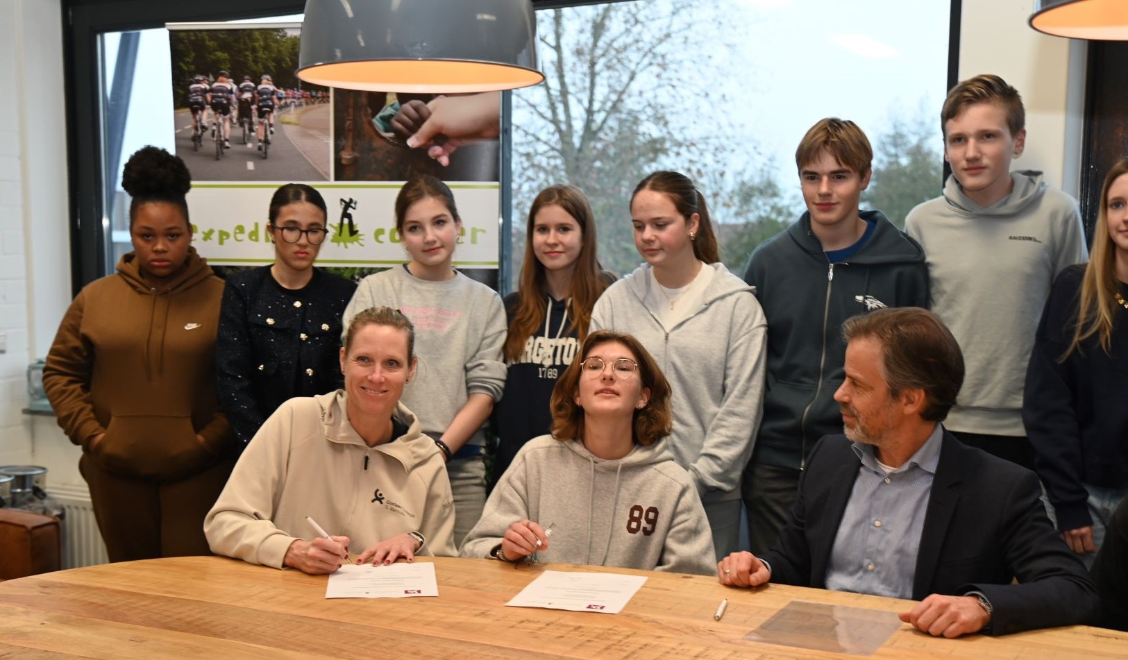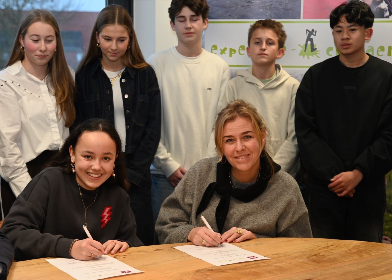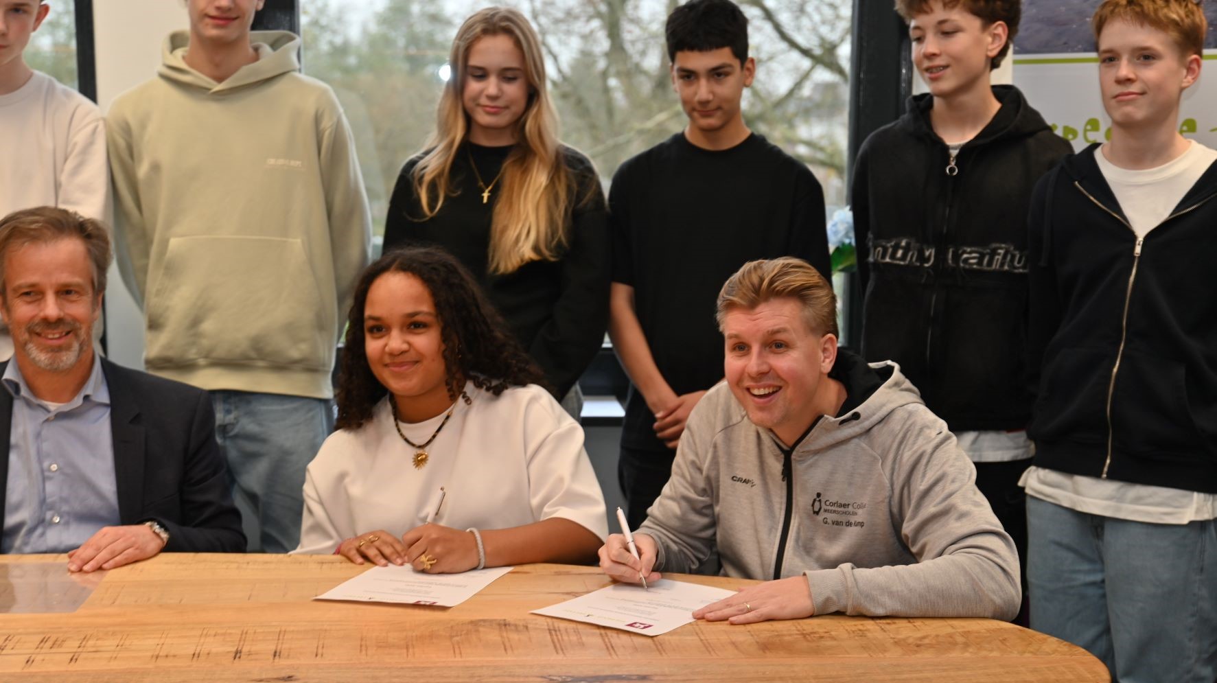 Voor de zestiende keer wordt in 2026 Expeditie Corlaer georganiseerd. Er zijn dit jaar zes expeditieteams, namelijk Expeditie Afrika (Tanzania), Expeditie Impact, Expeditie Europa (Albanie), Expeditie Dice4Life, Expeditie Oeganda en Corlaer Cycling (Italie). Vrijdag 5 december was de start van het project en ondertekenden de leerlingen hun contract in het bijzijn van plaatsvervangend rector Ronald Schaefer. Met het ondertekenen van het contract laten de derdejaarsleerlingen zien dat ze achter de plannen staan van hun expeditieteam en zich daar actief voor gaan inzetten. Bij Expeditie Corlaer zetten leerlingen hun talenten en vaardigheden in voor een ander. Ze doen dit samen met hun expeditieteam met leerlingen uit het vmbo, havo en atheneum. De teams halen geld op voor een goed doel. Foto Kees van den Heuvel