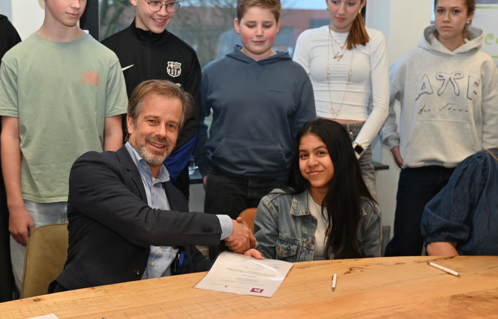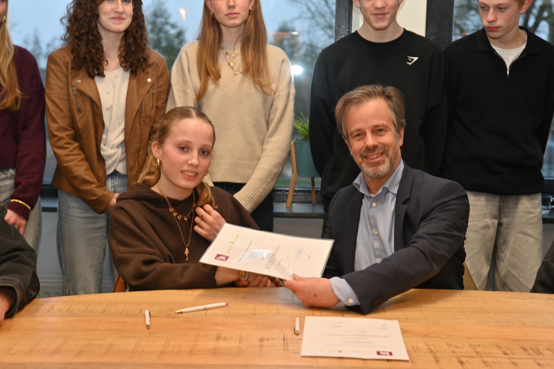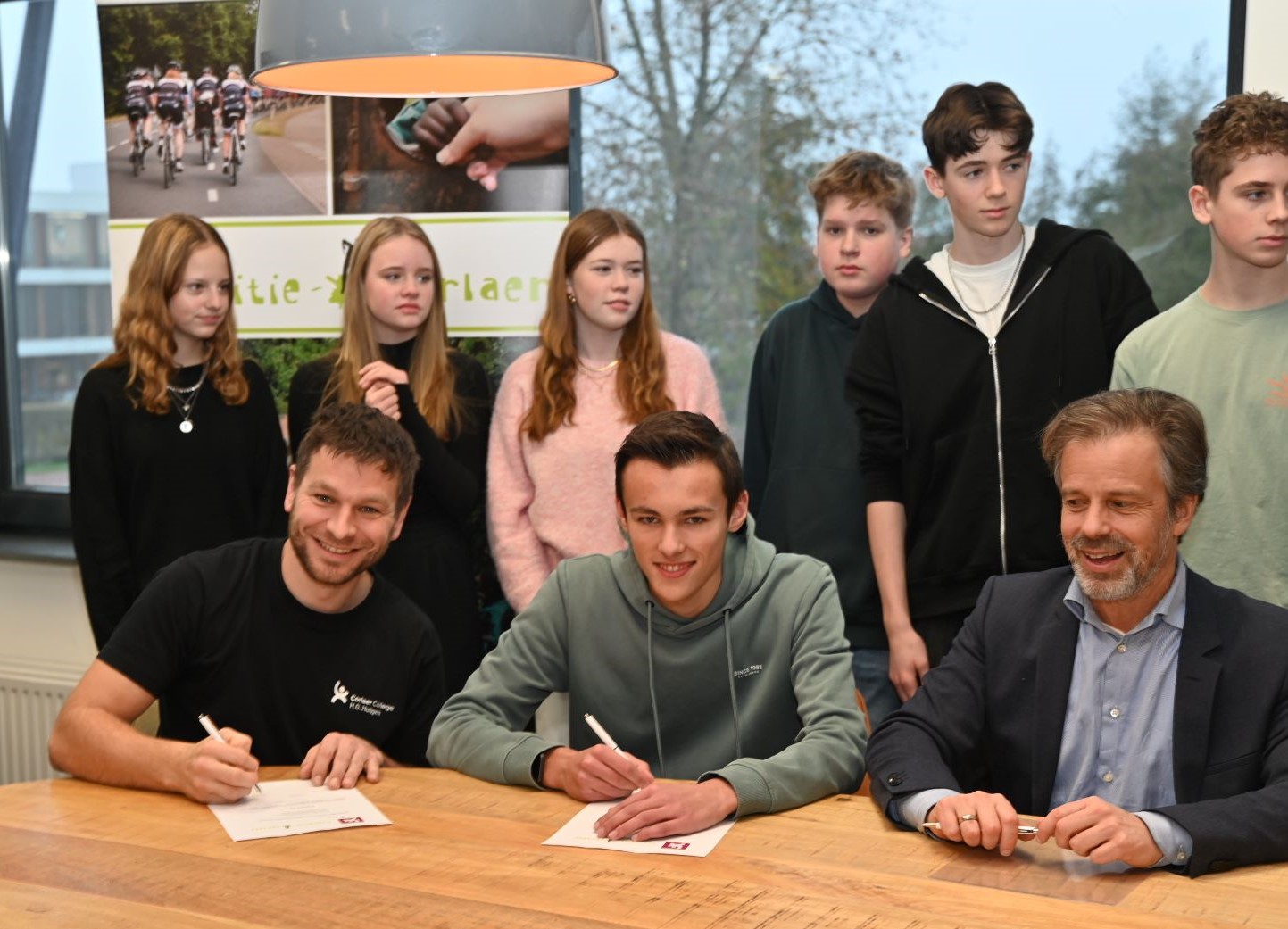 Voor de zestiende keer wordt in 2026 Expeditie Corlaer georganiseerd. Er zijn dit jaar zes expeditieteams, namelijk Expeditie Afrika (Tanzania), Expeditie Impact, Expeditie Europa (Albanie), Expeditie Dice4Life, Expeditie Oeganda en Corlaer Cycling (Italie). Vrijdag 5 december was de start van het project en ondertekenden de leerlingen hun contract in het bijzijn van plaatsvervangend rector Ronald Schaefer. Met het ondertekenen van het contract laten de derdejaarsleerlingen zien dat ze achter de plannen staan van hun expeditieteam en zich daar actief voor gaan inzetten. Bij Expeditie Corlaer zetten leerlingen hun talenten en vaardigheden in voor een ander. Ze doen dit samen met hun expeditieteam met leerlingen uit het vmbo, havo en atheneum. De teams halen geld op voor een goed doel. Foto Kees van den Heuvel