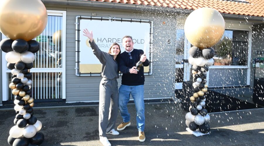 Een nieuwe mijlpaal voor Dennis en Corin van den Hoogen. Het horeca-echtpaar uit Nijkerk opende vrijdagmorgen 1 maart brasserie Harderwold door een fles champagne te ontkurken. Op het recreatiepark is naast de brasserie onder meer een golfbaan aanwezig, feest- en vergaderfaciliteiten en een villa resort. De brasserie is geheel nieuw ingericht. Het echtpaar wil op de evenementenlocatie een compleet pakket gaan aanbieden voor een onvergetelijke ervaring, waarbij feesten in stijl plaatsvinden, waar kan worden geproefd van culinaire gerechten en waar luxe kan worden overnacht. Foto Kees van den Heuvel