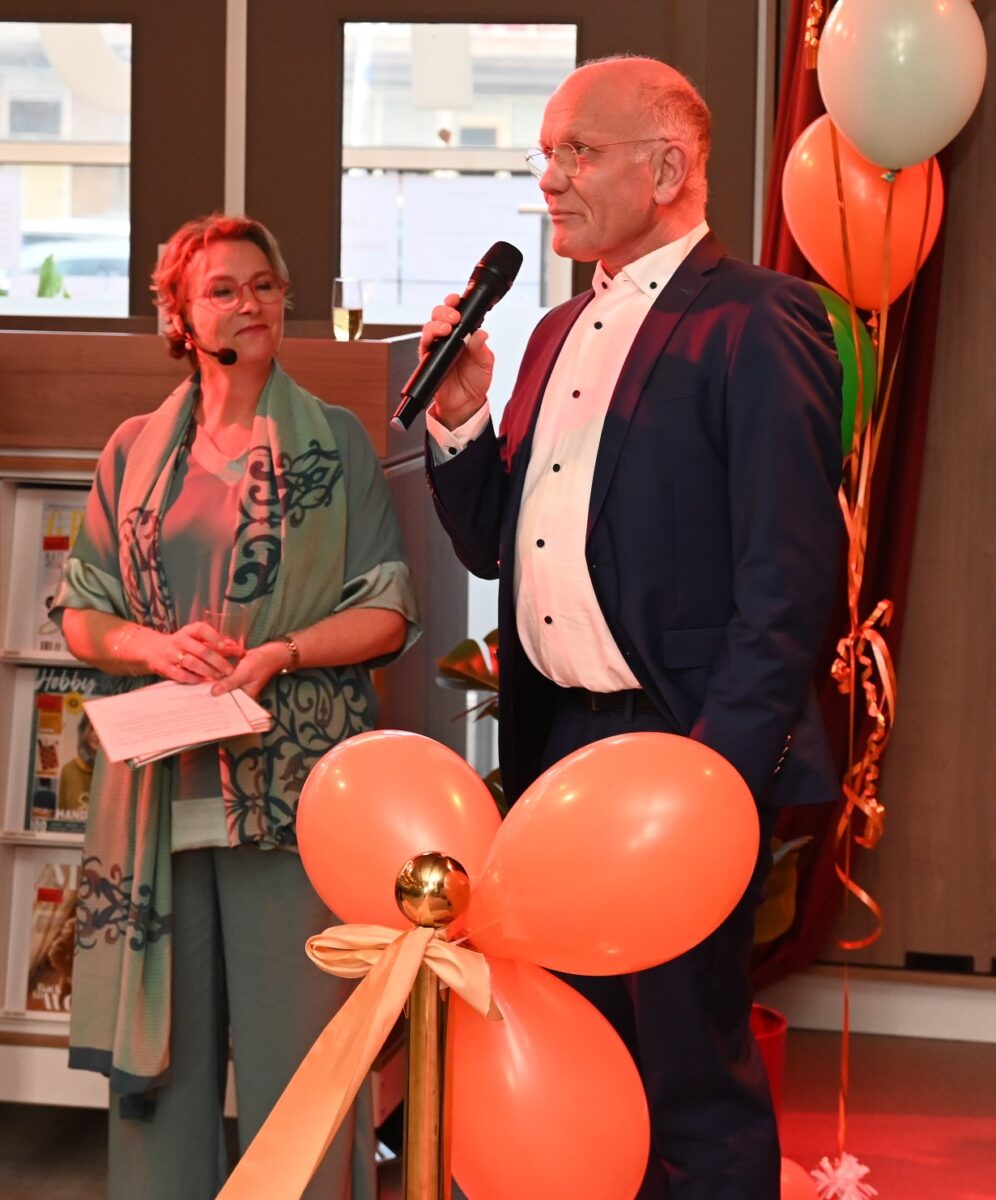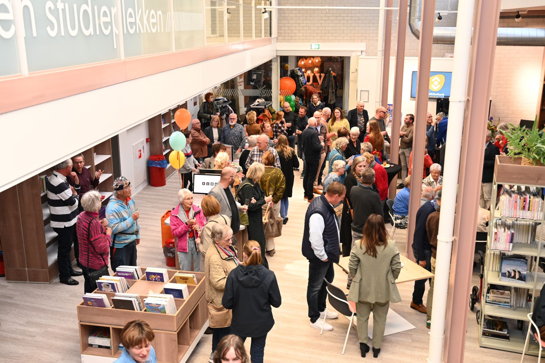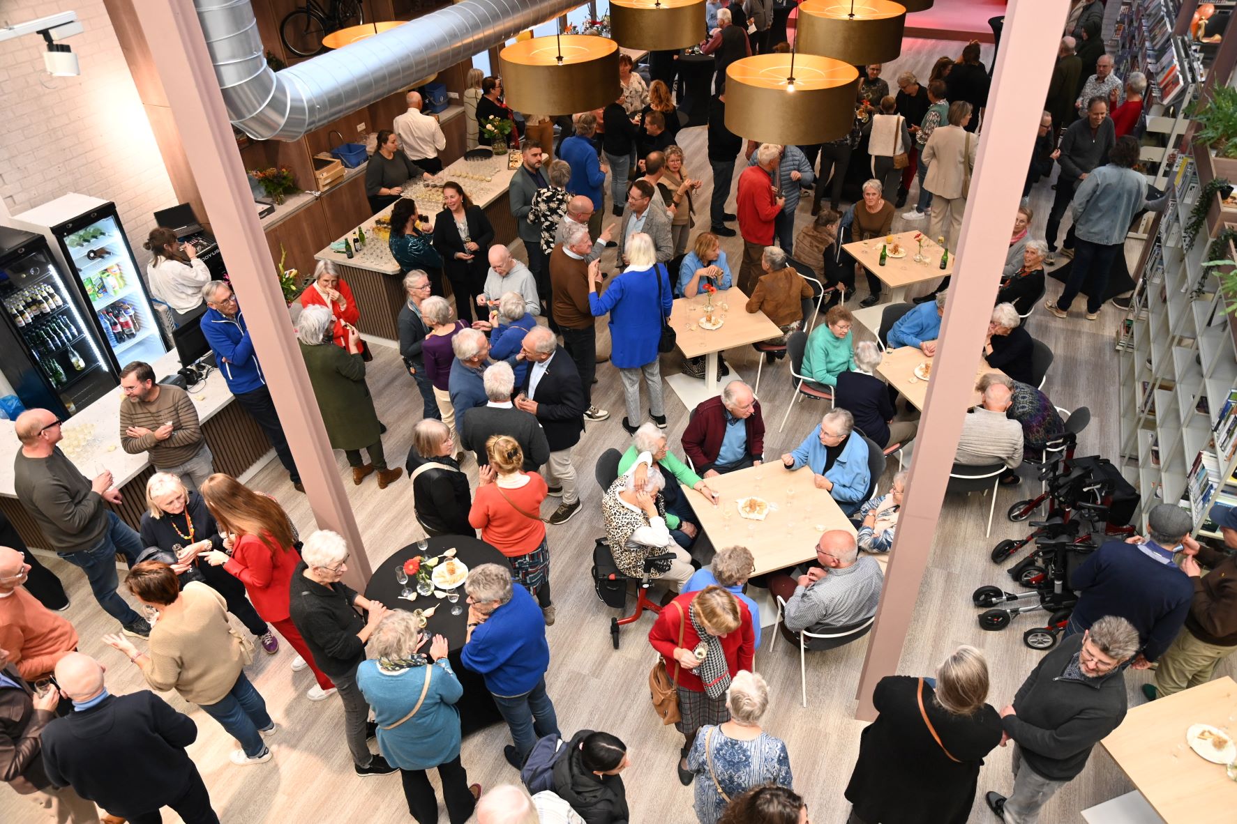 Met het doorknippen van een lintje door wethouder Audrey Rohen, stadsdichter Rene Speelman en vrijwilliger Peter van Est is donderdagmiddag 30 oktober de gerenoveerde bibliotheek heropend. Vele tientallen gasten waren aanwezig om het resultaat te aanschouwen. Geen plekje bleef onaangeroerd, aldus directeur Laura Koppenberg, die zich Rob Jetten waande, zo trots was ze op het resultaat. De bibliotheek omschreef ze als een third Space, een plek waar mensen spontaan kunnen samenkomen, los van commerciële druk of institutionele verplichtingen. Het concept van de ‘derde plek’ verwijst naar zulke informele, laagdrempelige omgevingen waar een gemeenschap ontstaat. Ook wethouder Rohen wees op de warme sfeer die is gerealiseerd en waarmee je je helemaal thuis voel. Een goed bestede culturele investering. En stadsdichter Rene Speelman las een gedicht voor. LATER MEER foto’s Kees van den Heuvel