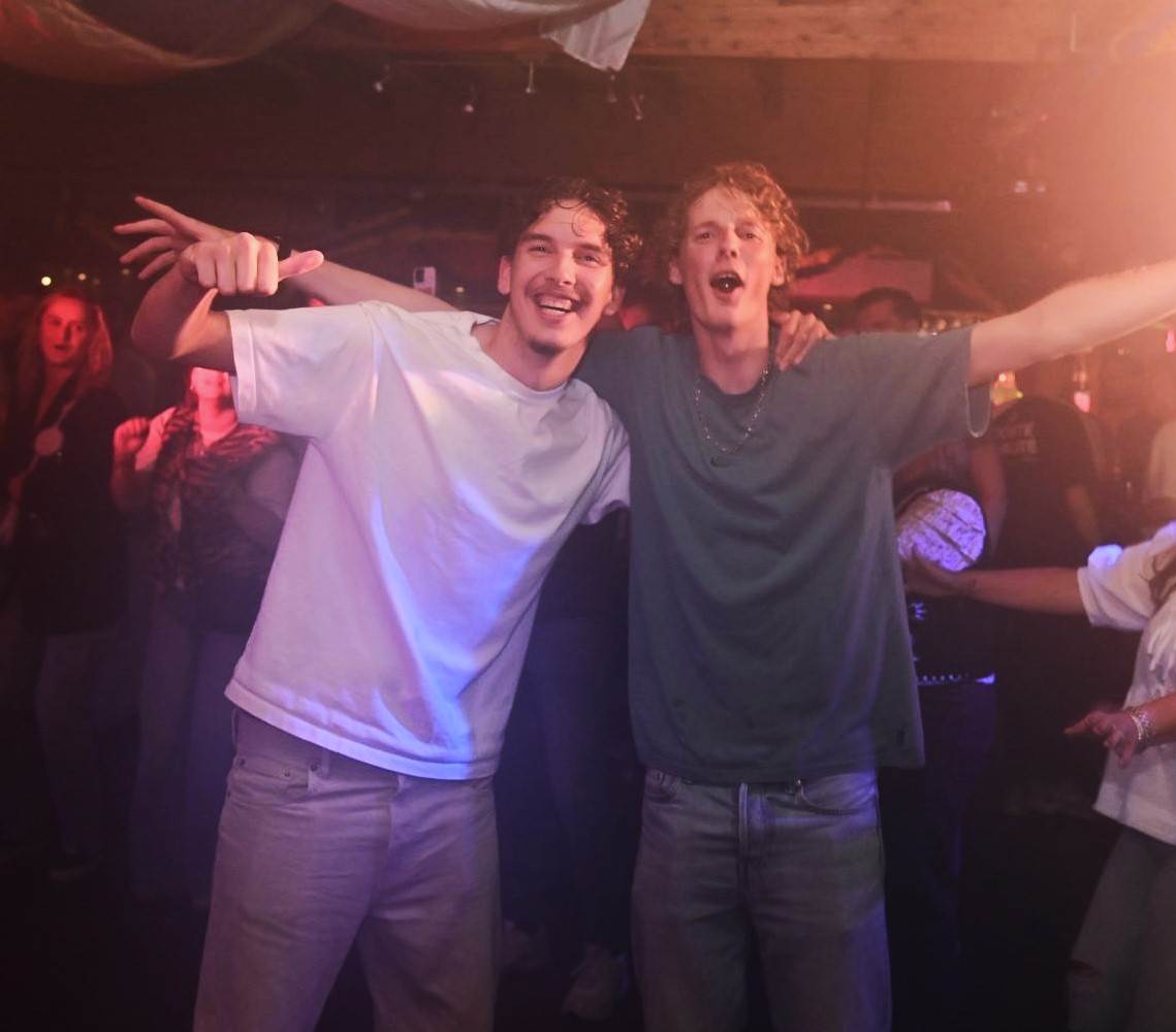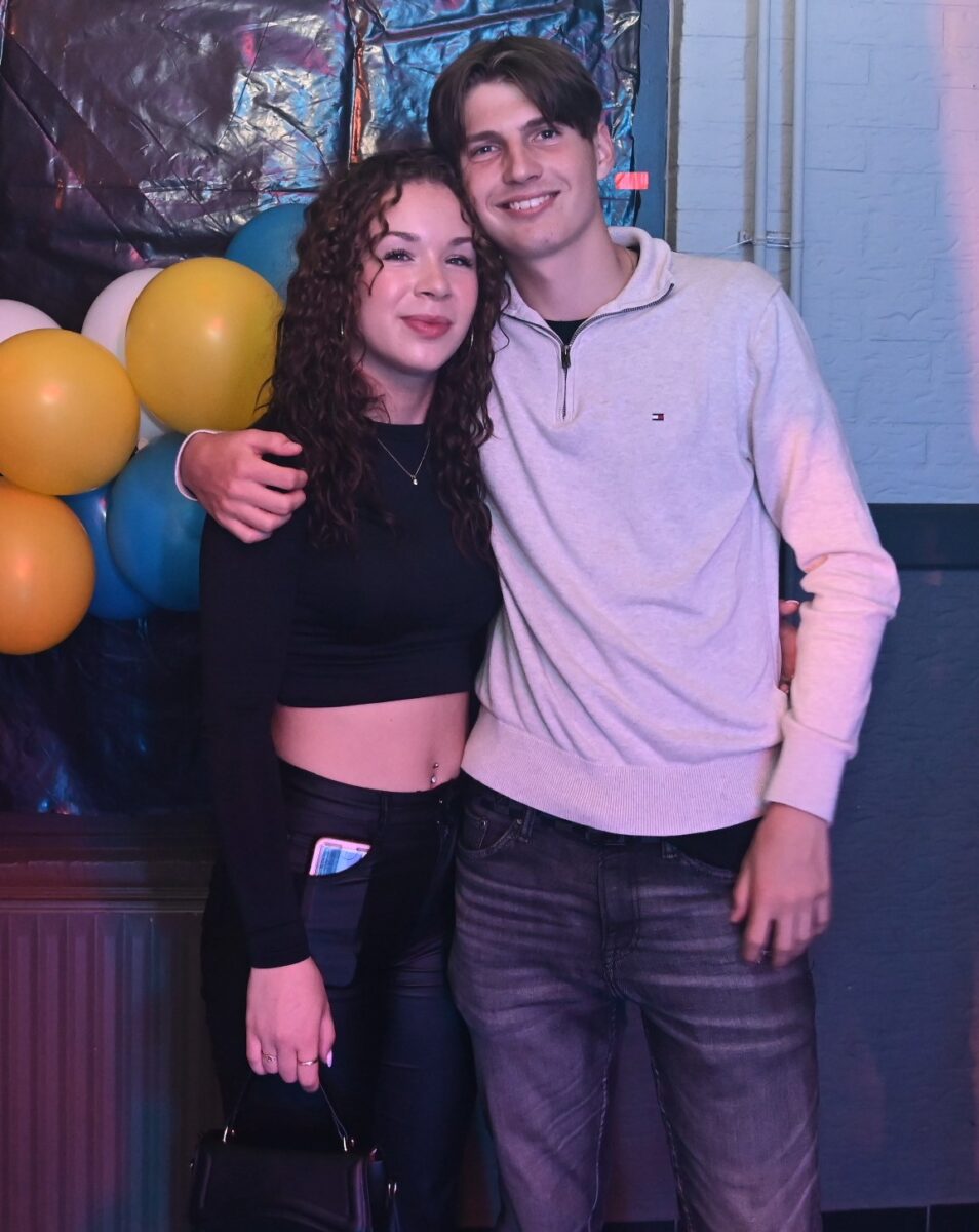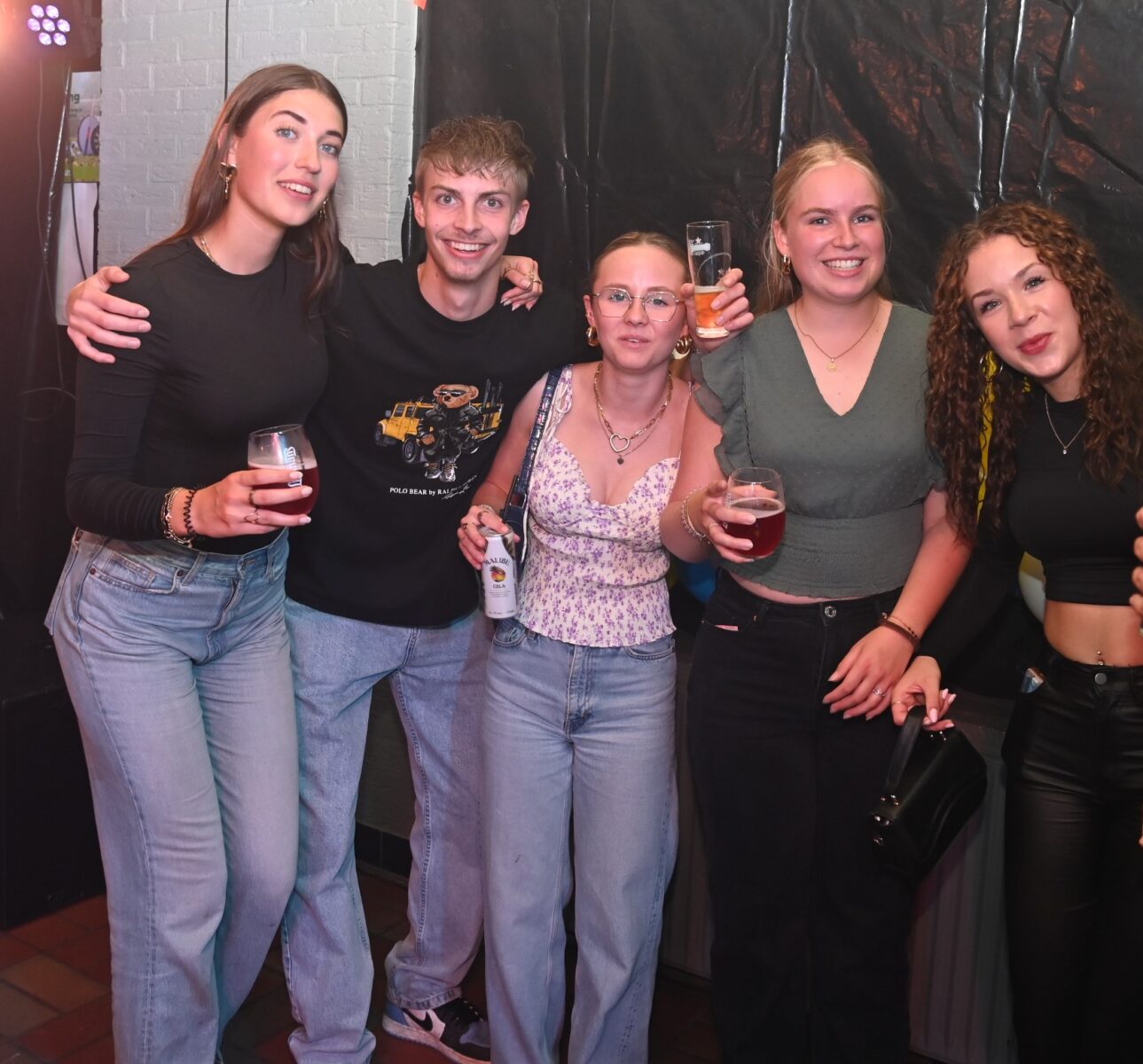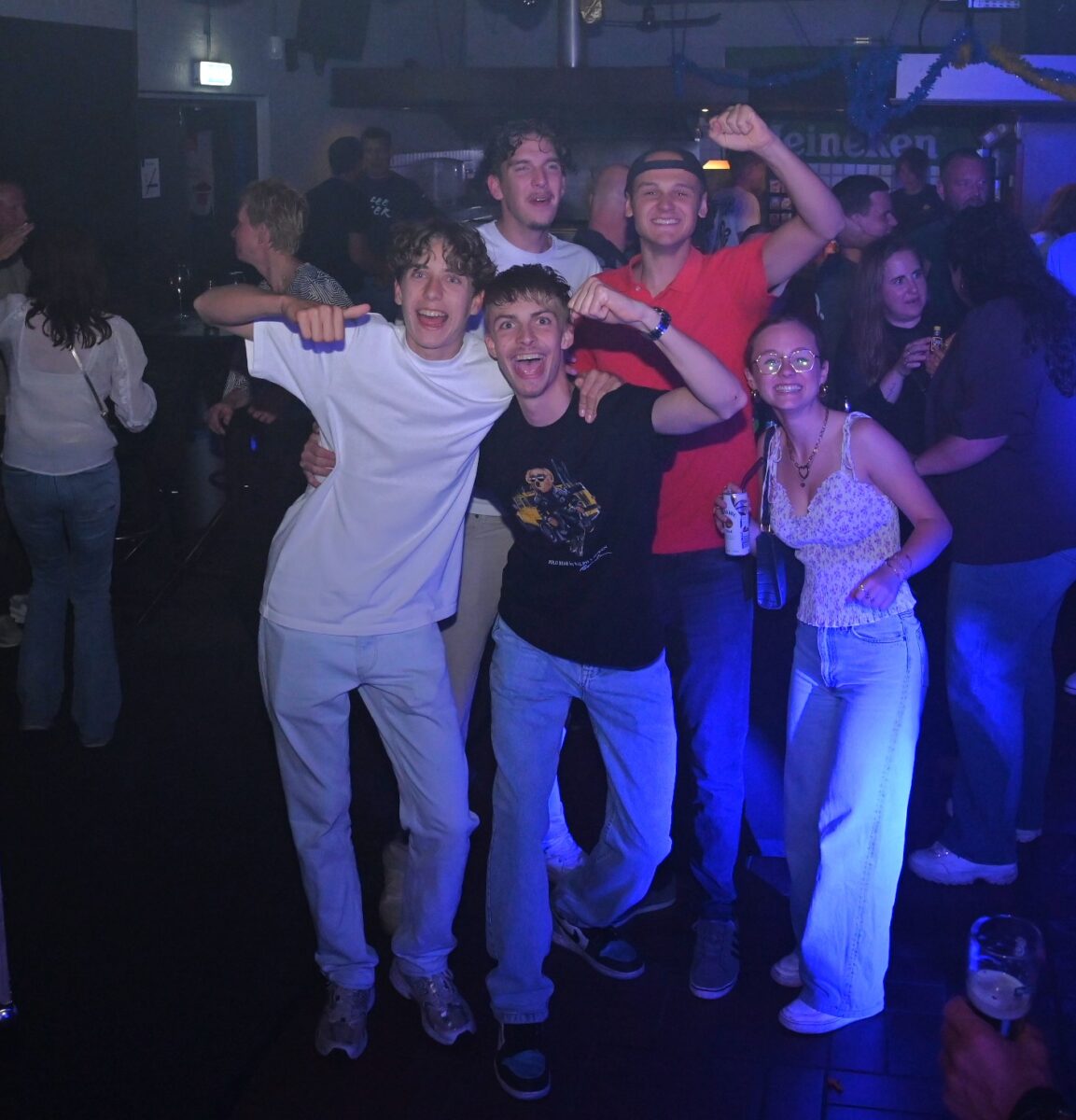 Je moet erbij zijn geweest om het te kunnen navertellen. Zaterdagavond 24 mei werd het sportieve seizoen bij voetbalvereniging NSC Nijkerk voorlopig afgesloten met een grote feestavond. Er was een karaokefeest, met onder meer een Dries Roelvink in gele zwembroek, maar ook het vertrekkende trainersduo Stephan Nuesink en Jari Vedder betraden het podium om het behoud van het eerste team in de tweede klasse te vieren. Het duo zong het lied van Twee motten. Foto Kees van den Heuvel