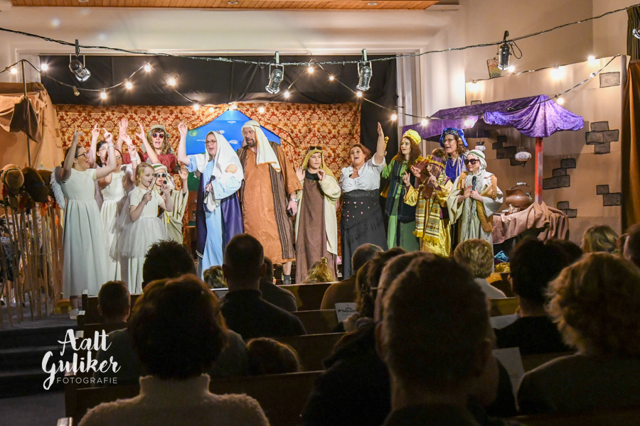 Afgelopen woensdagavond vond de traditionele kerstmusical plaats in de Gereformeerde Kerk aan de Vrouwenweg in Nijkerkerveen. De twee voorstellingen om 18.00 uur en 20.00 uur trokken beide veel publiek en zorgden voor een warme en feestelijke kerstsfeer.